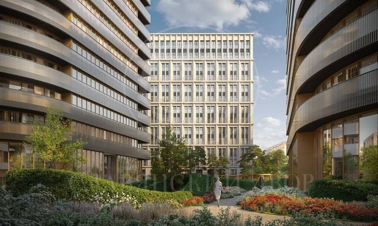 В малоэтажной части в стиле авангард представлены пятиэтажные дома, в каждом из которых всего 15-20 квартир, и двухэтажные виллы. Они расположены вокруг центрального парка, лаконичные снаружи и функциональные внутри, дарят ощущение привилегированной и спокойной загородной жизни. Владельцам самых крупных вилл доступна особая роскошь: собственное патио для утреннего отдыха с чашкой кофе и приватный бассейн — и всё это в самой престижной части мегаполиса.