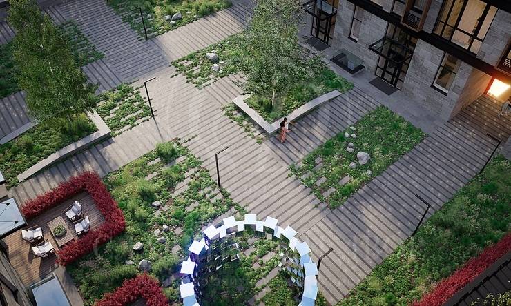 Внутренняя инфраструктура представлена такими объектами, как фитнес-клуб, детский досуговый центр, кафе с блюдами авторской кухни, а также современный игровой городок.