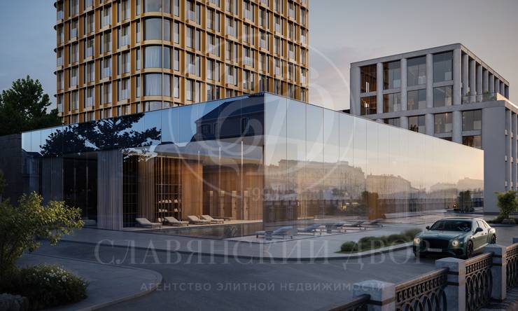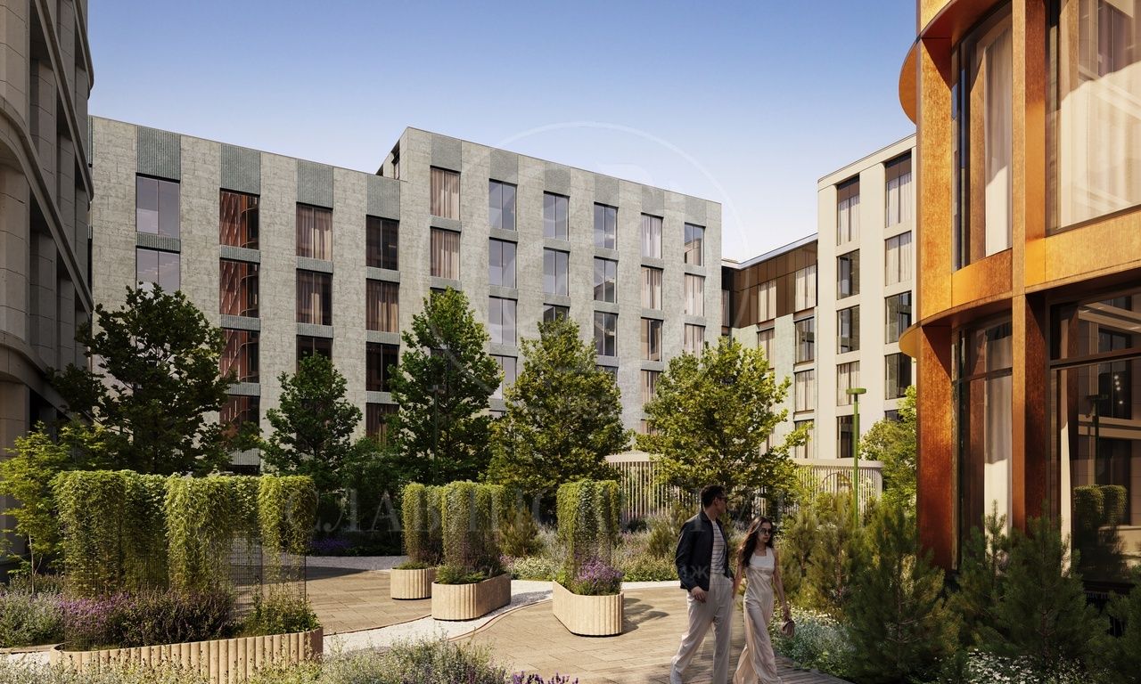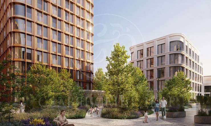4 клубных корпуса на 1 га приватной территории с закрытым зелёным сквером, дизайнерскими ландшафтами и видами на воду. Архитектура в стиле метамодернизма, фасады с медными акцентами, панорамное остекление и высокие потолки создают неповторимый облик квартала, гармонично вписывающийся в исторический ансамбль столицы.