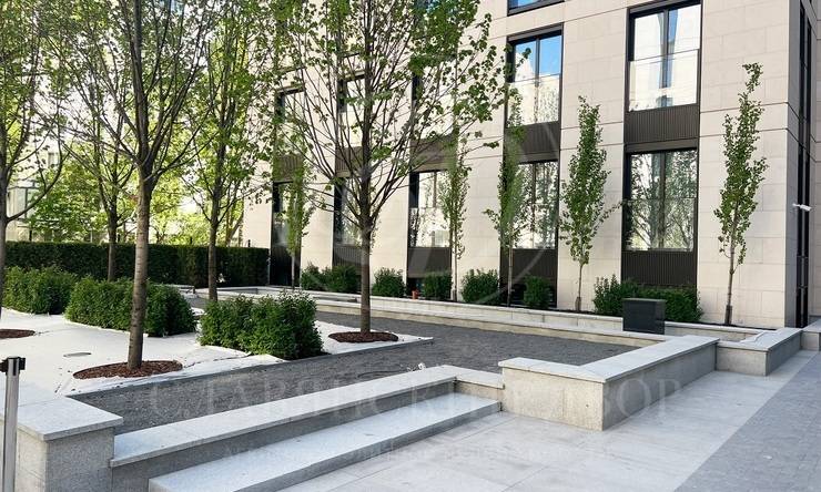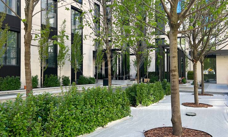 Внутренний двор-сад Клубного дома TURGENEV — оазис с зелеными лужайками, мощеными тропинками, водными каналами и зонами для отдыха. Сад идеально вписан в пространство внутреннего двора.