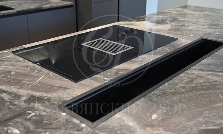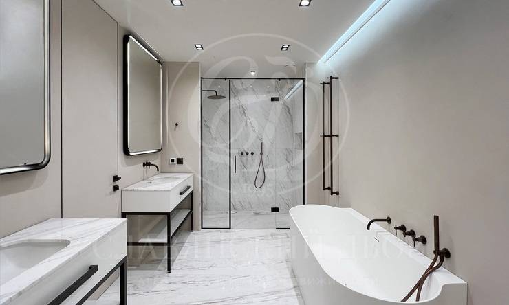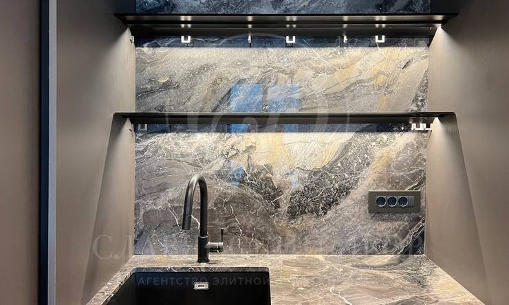 В каждой квартире установлены кухни от итальянского бренда Cesar со встроенной бытовой техникой премиальной линейки Smeg. Кухонный остров, столешница и фартук кухни выполнены из эксклюзивного итальянского мрамора Arabescato Grigio Orobico, одним из лучших видов мрамора на итальянском рынке натуральных отделочных камней.