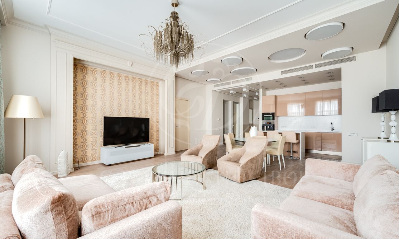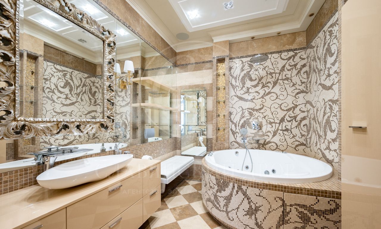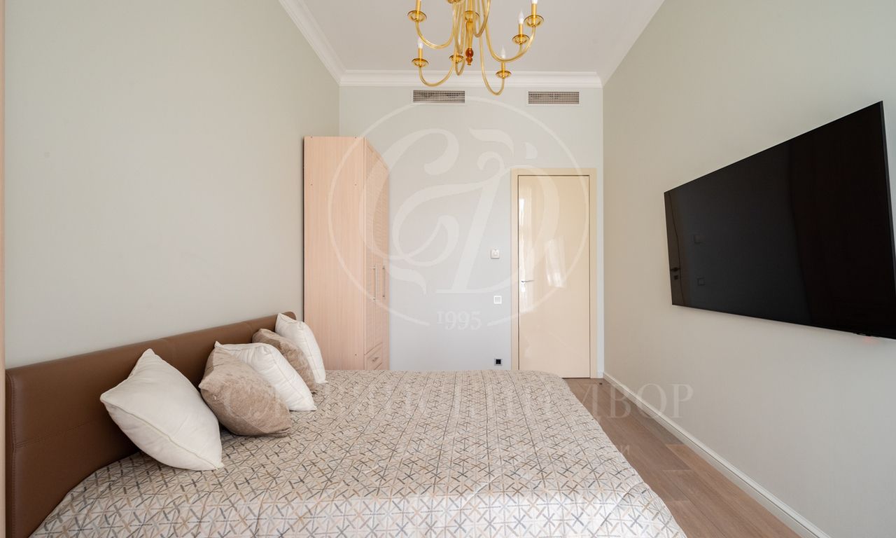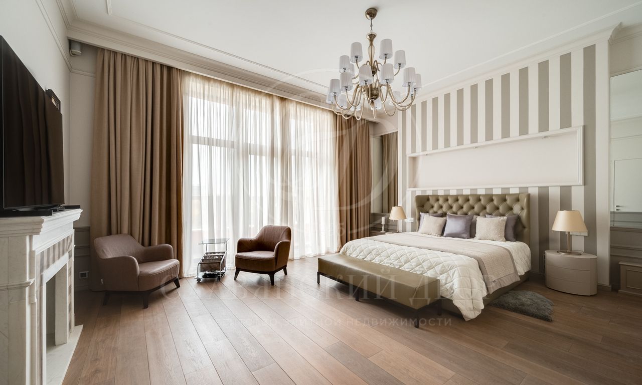 Планировка: 3 спальни, гостиная, кухня, 3 санузла, постирочная , 2 гардеробные комнаты.