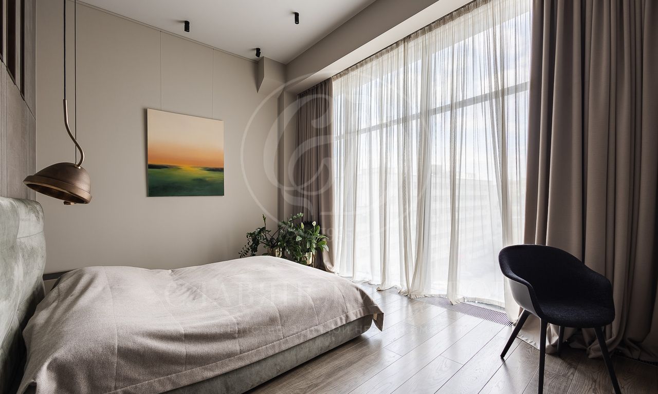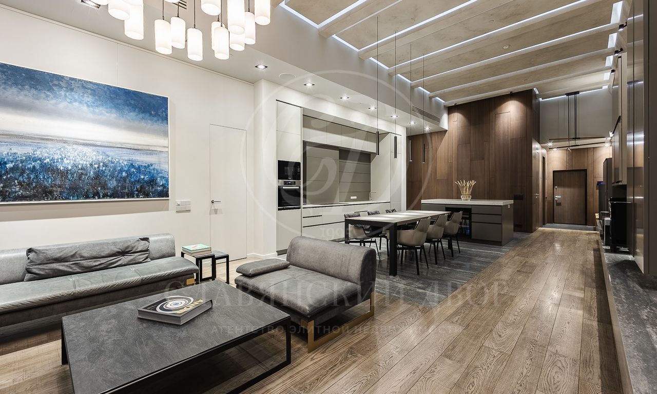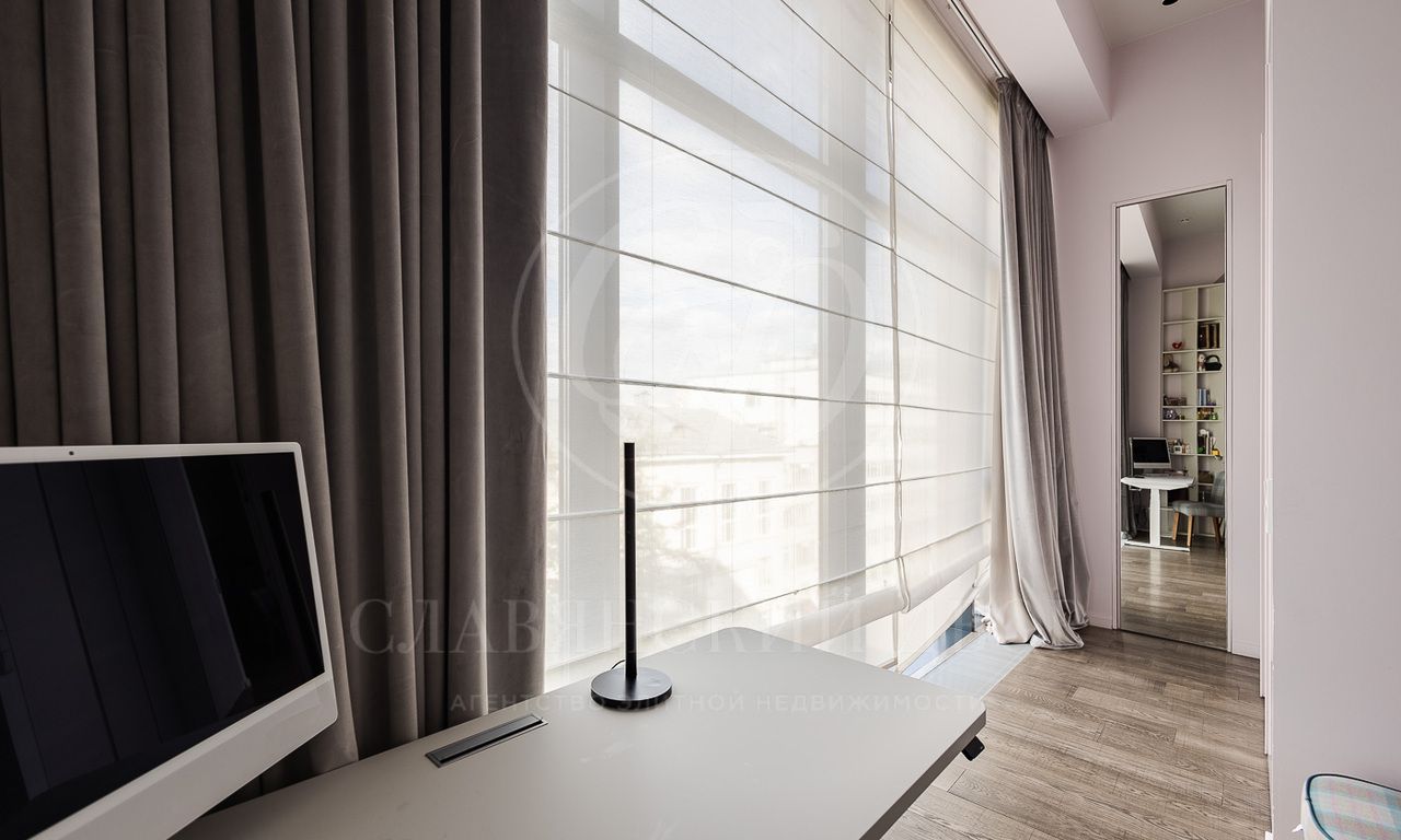 В апартаменте выполнен новый дизайнерский ремонт, с использованием дорогостоящих материалов. Квартира укомплектована всей необходимой мебелью и техникой премиальных брендов (кухня Modulnova, техника Miele, диван Baxter). Благодаря панорамным окнам и потолкам (5 метров) апартаменты наполнены светом и выглядят более просторно.