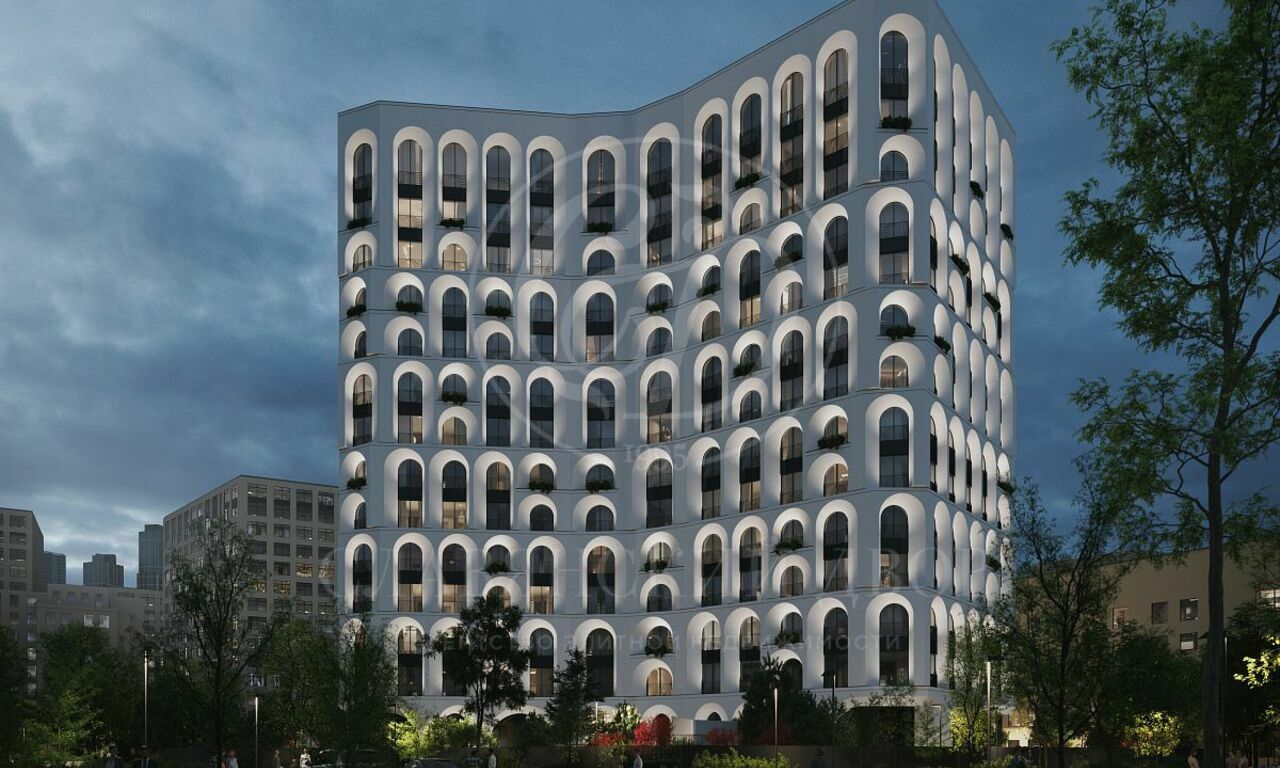 Здание клубного дома отличается изысканной архитектурой с фасадом из 343 воздушных белоснежных арок.