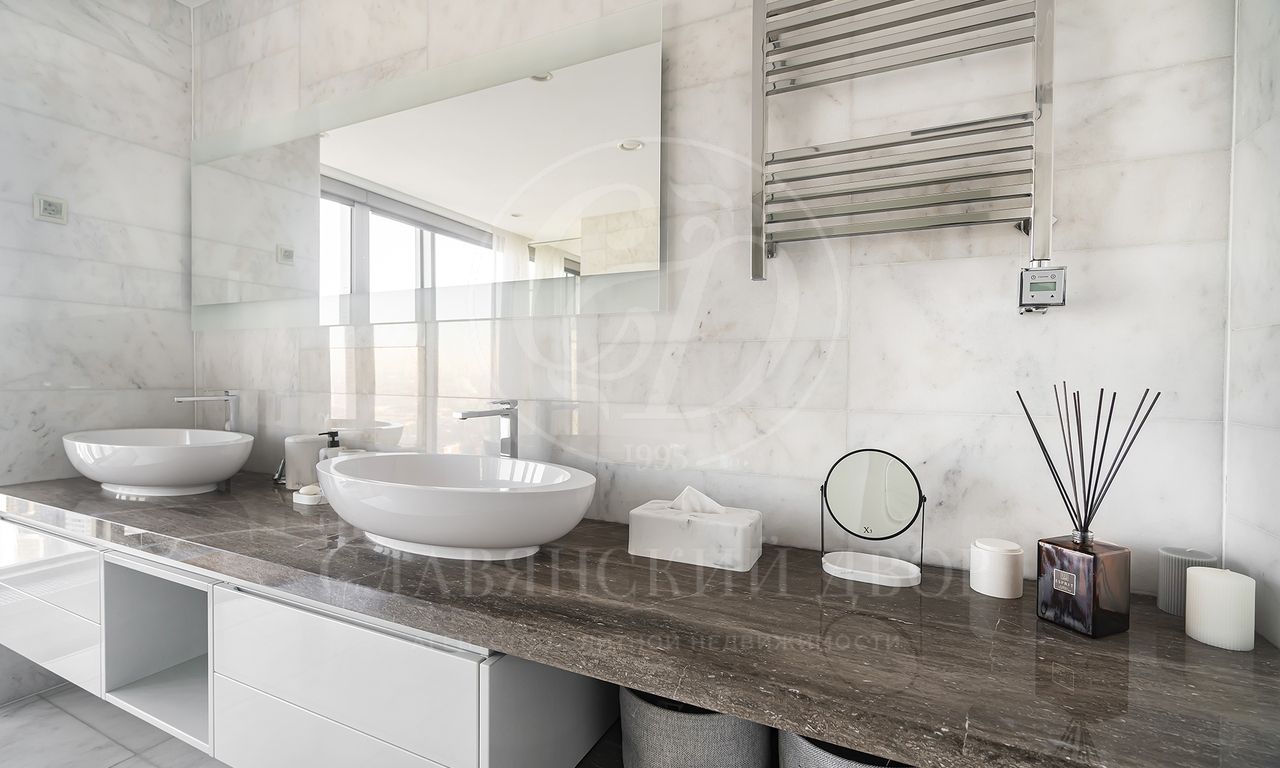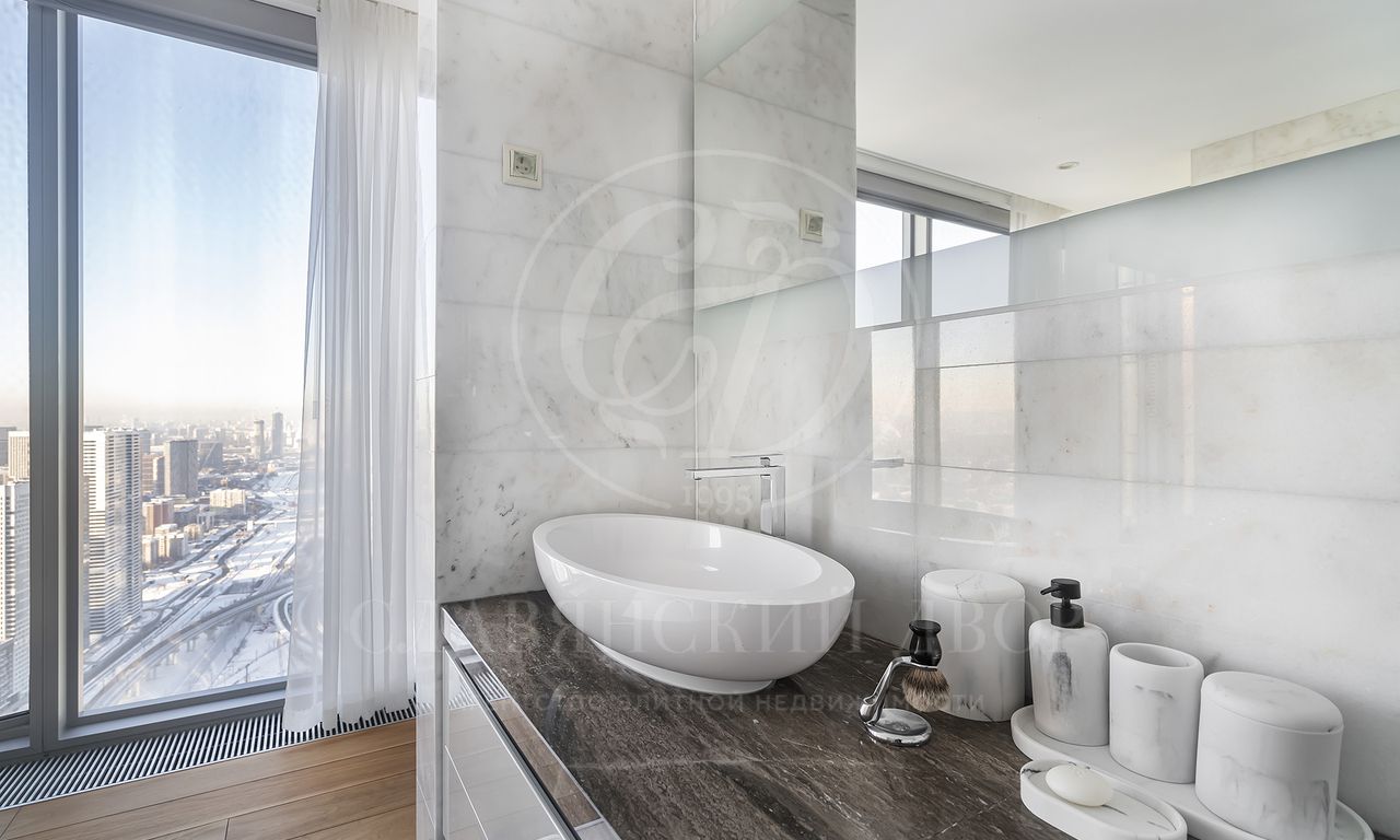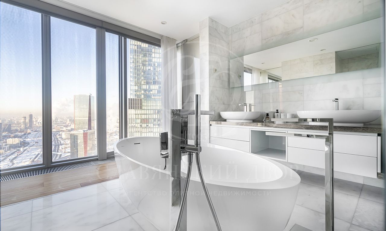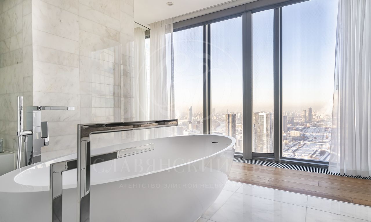 Из окон просторной гостиной открываются завораживающие виды на город. Главная спальная комната с просторной ванной комнатой и гардеробной, гостевая спальная комната с собственным санузлом, гостевой санузел.