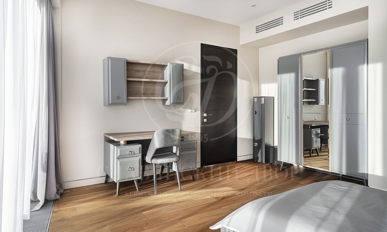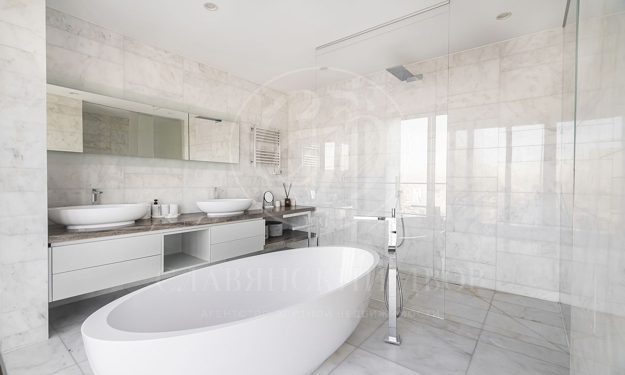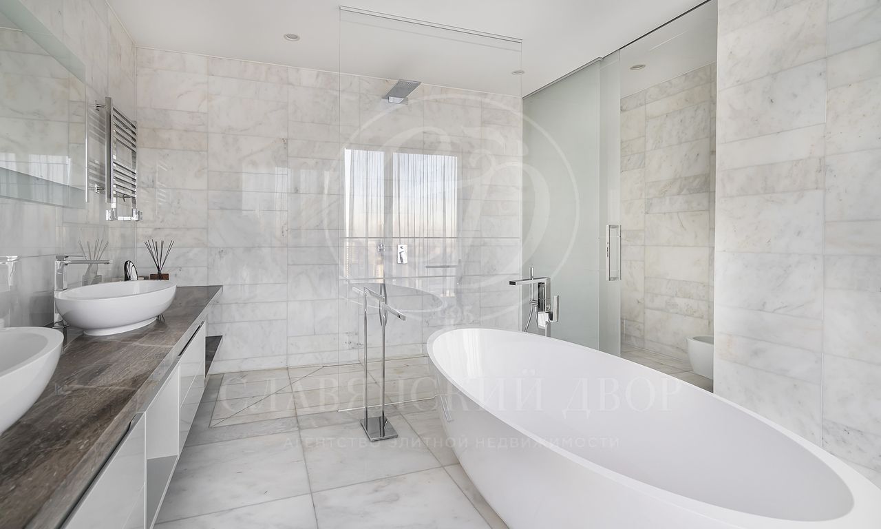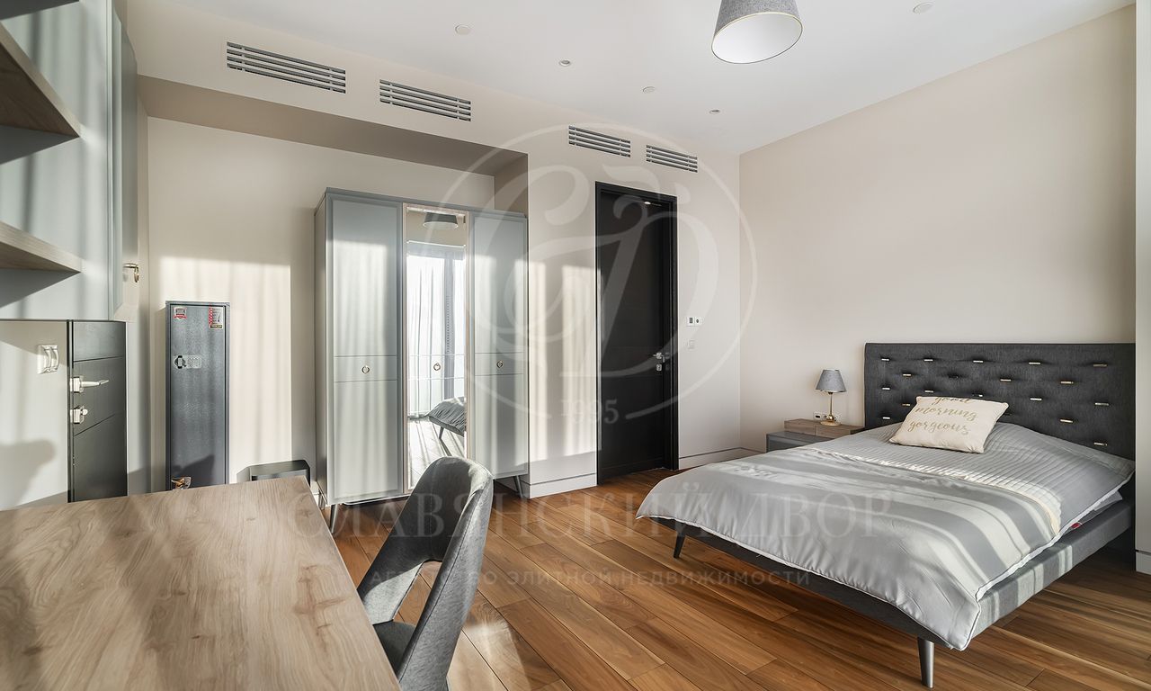 Из окон просторной гостиной открываются завораживающие виды на город. Главная спальная комната с просторной ванной комнатой и гардеробной, гостевая спальная комната с собственным санузлом, гостевой санузел.