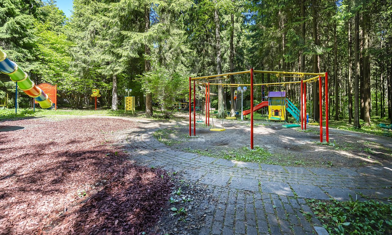 Участок правильной формы с соснами и елями, по периметру засажен взрослыми высокими туями. Расположен в хорошей части поселка. На участке есть возможность разместить дом с бассейном около 1000 кв. м., сохранив все деревья.