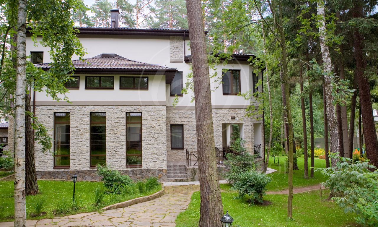 Красивый дом на лесном участке с соснами. Авторский дизайн интерьера. Грамотная планировка.