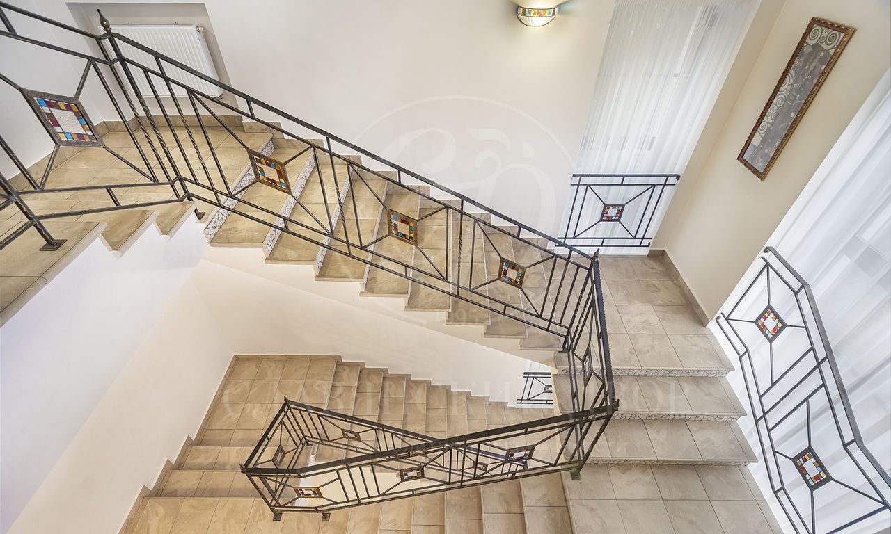 1 этаж: прихожая, кухня столовая, каминный зал, выход на просторную террасу, гостевой с/у ; блок для персонала с технической кухней, спальня со своим с/у.