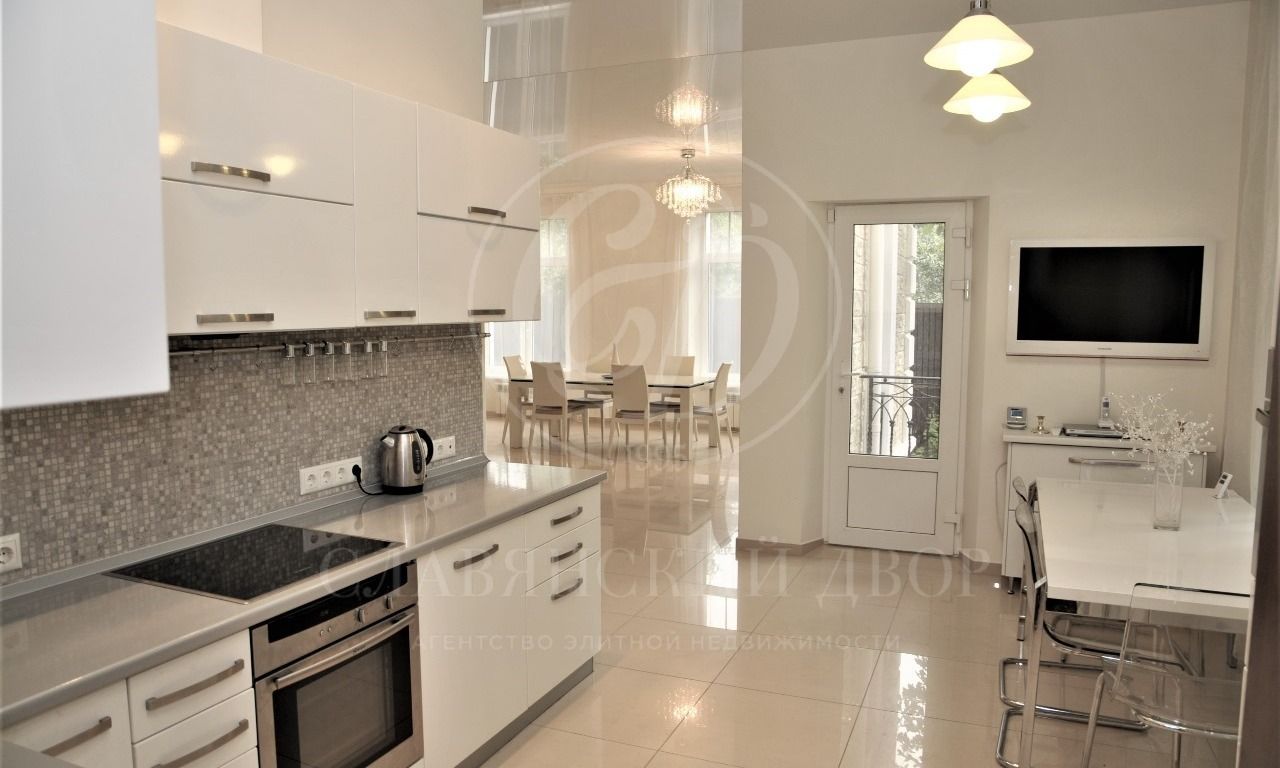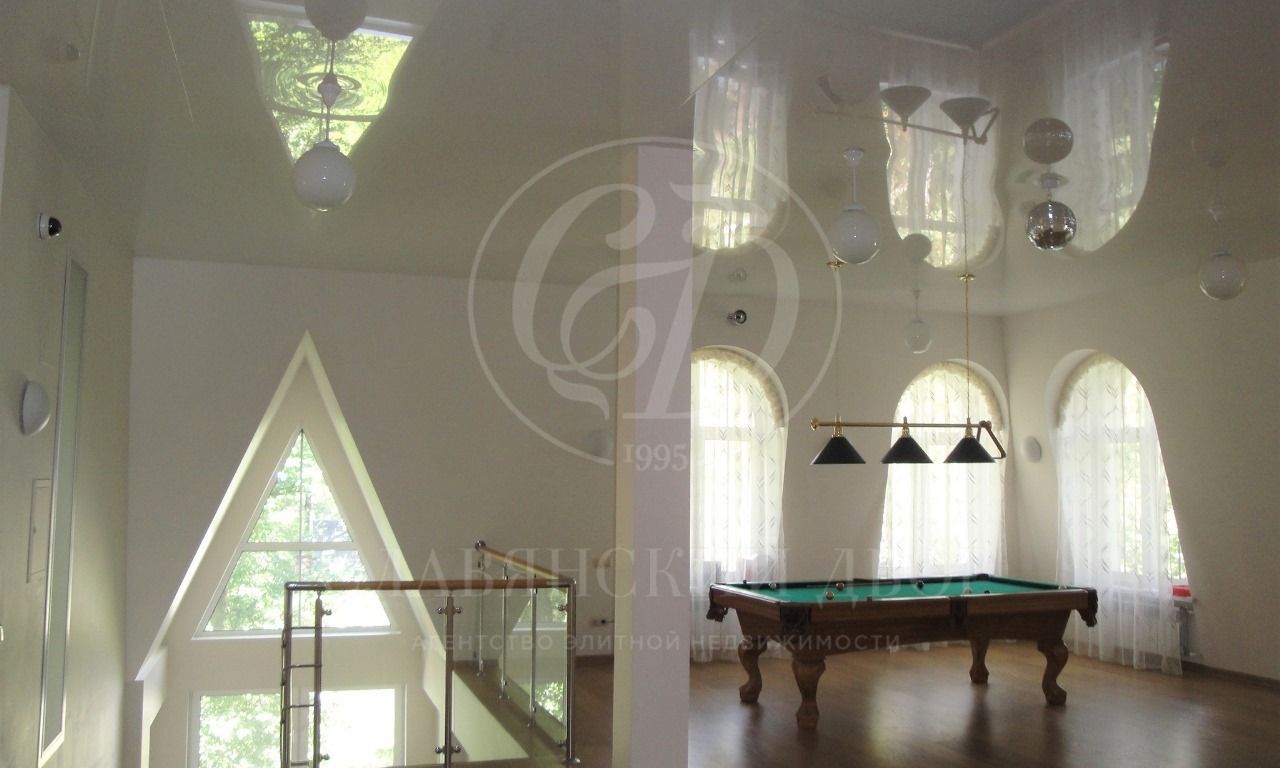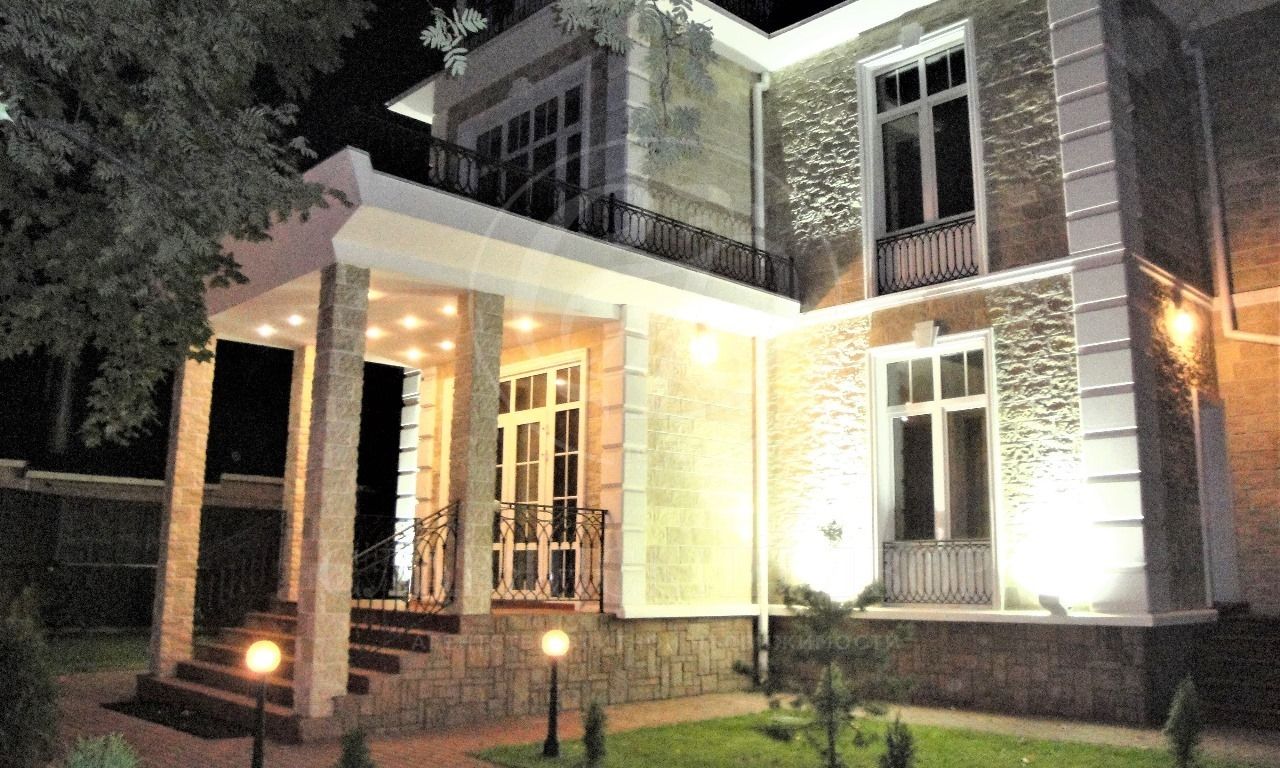 Основной дом – солидный, 3-х этажный, авторский проект в европейском стиле. Конструкция — монолит. Современный дизайн. Высокие натяжные потолки (3,1м — в чистоте), большие окна, тёплые полы, кондиционеры. Всего 7 спален.