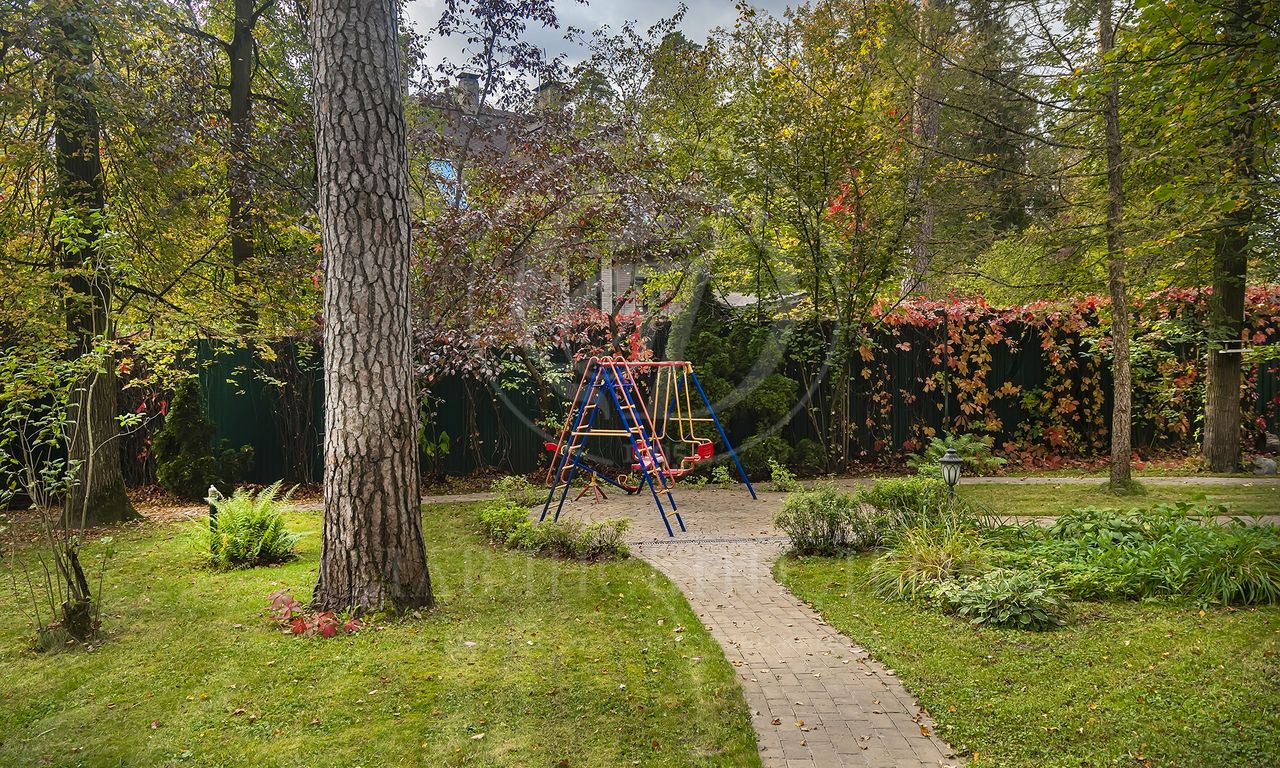 Дополнительные постройки включают детскую площадку и отдельный гараж на 3 автомобиля и 2 просторные квартиры для персонала.
