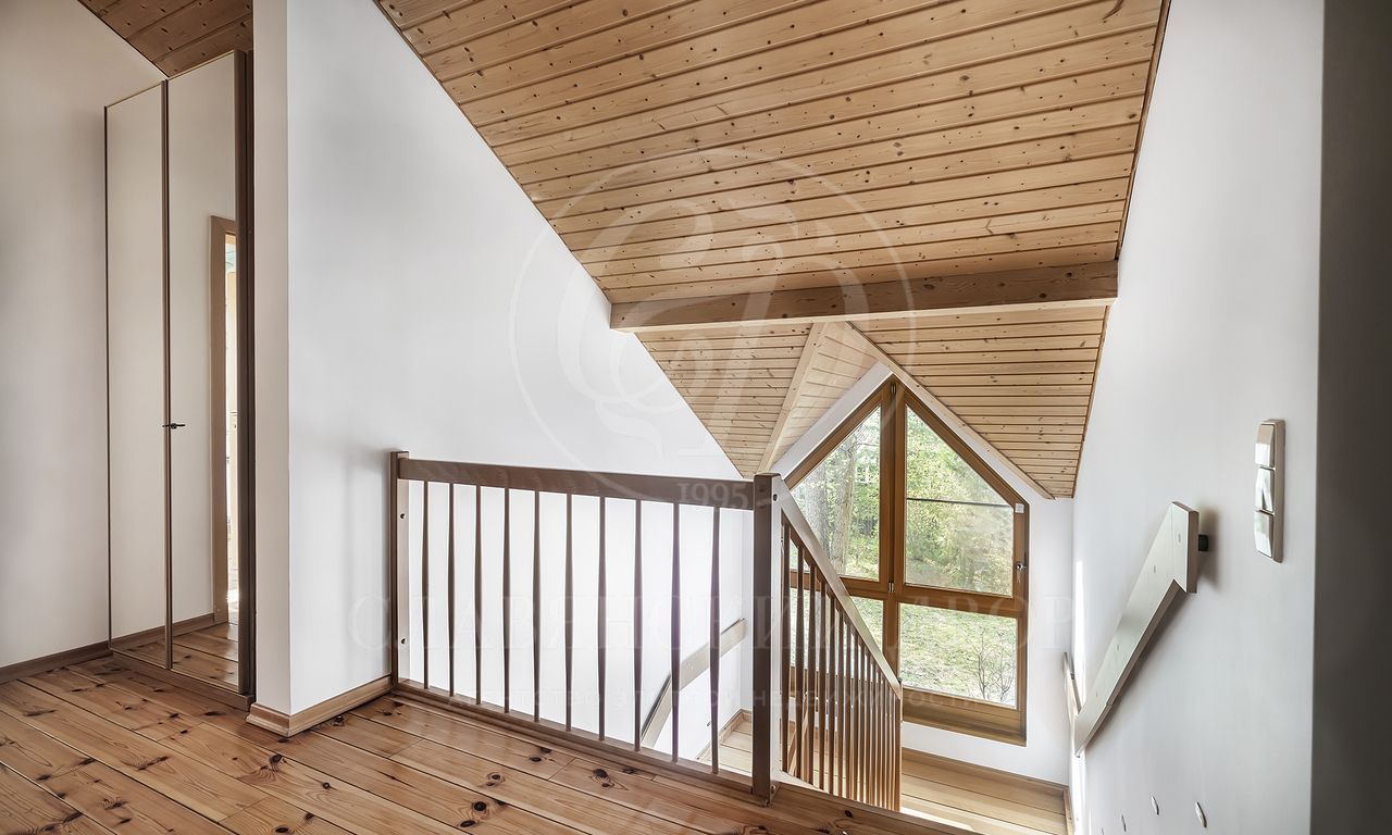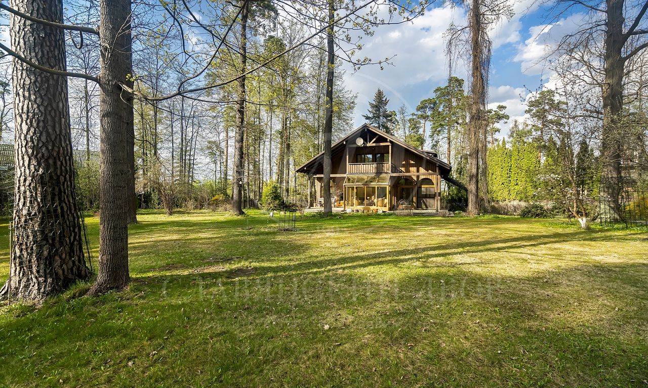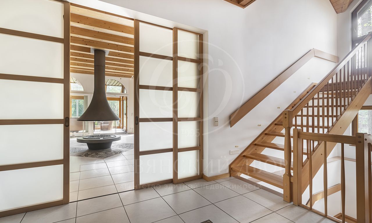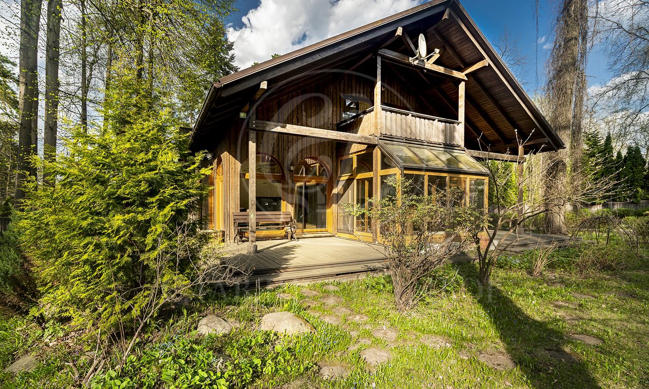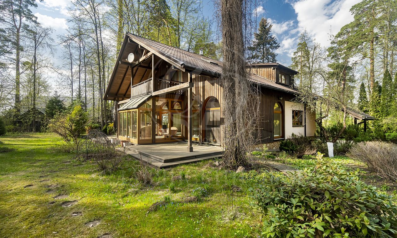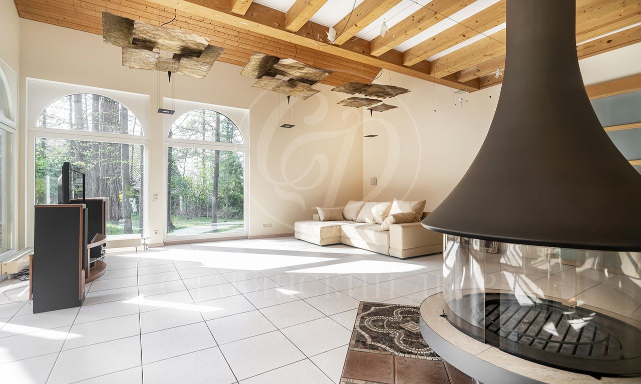 Дом уникален по своей архитектуре, с огромными панорамными окнами, через которые открывается потрясающий вид на лес.