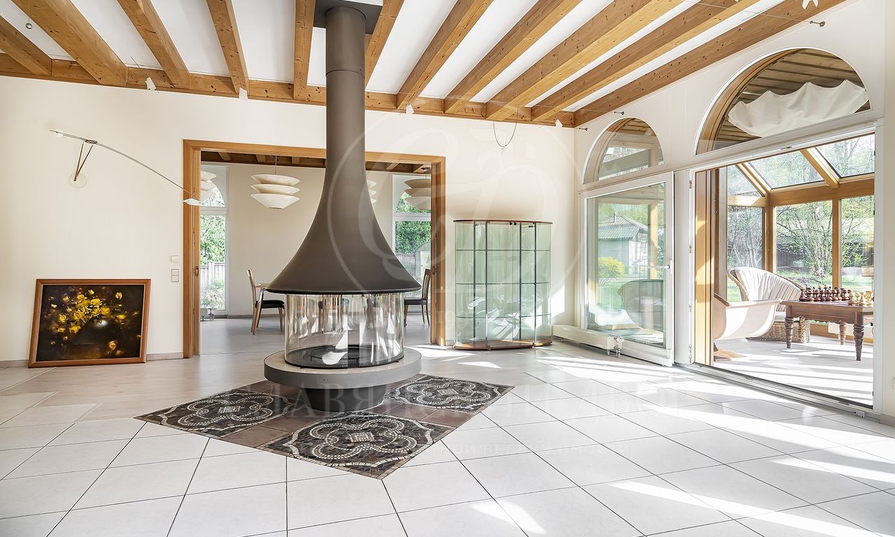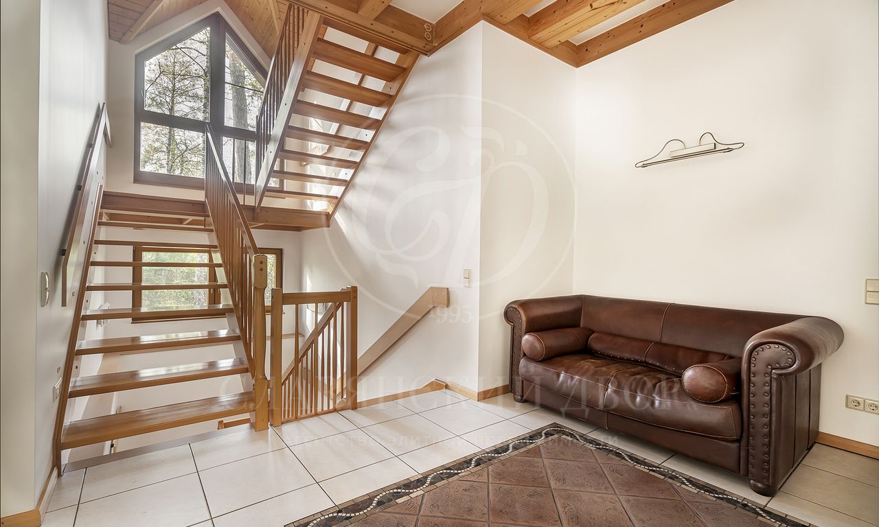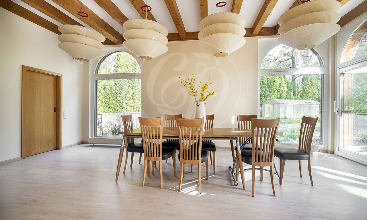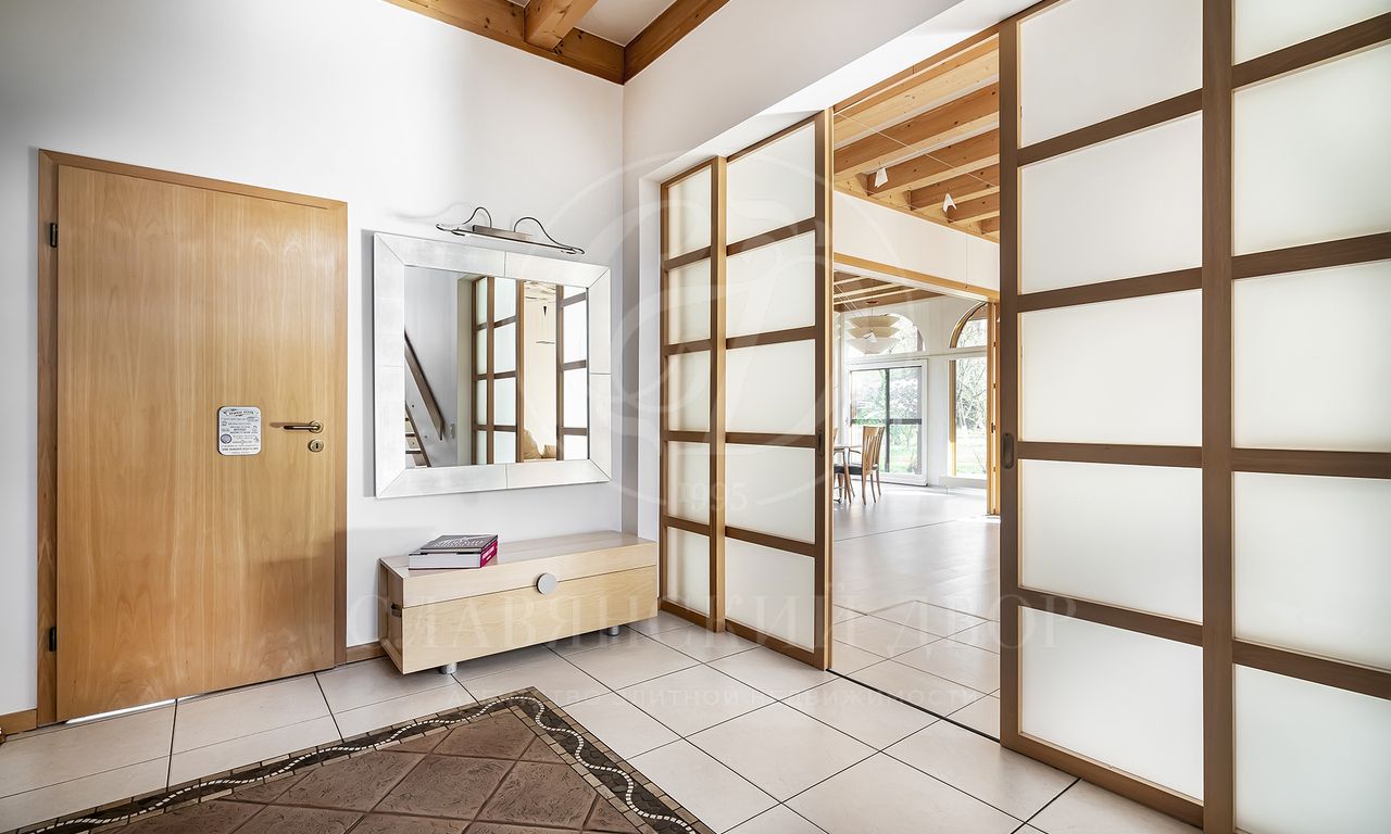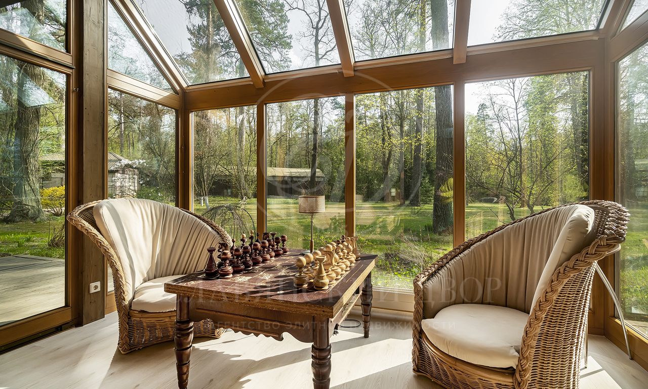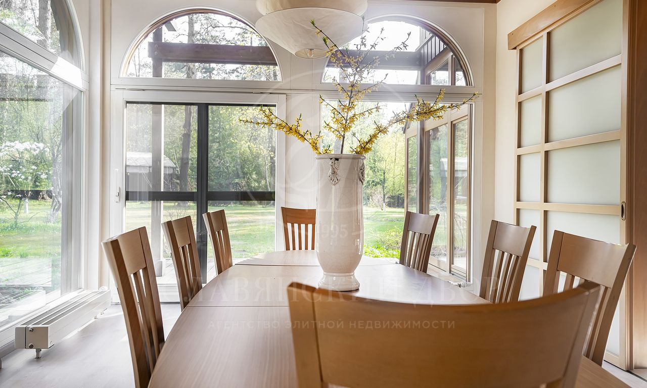 Дом уникален по своей архитектуре, с огромными панорамными окнами, через которые открывается потрясающий вид на лес.