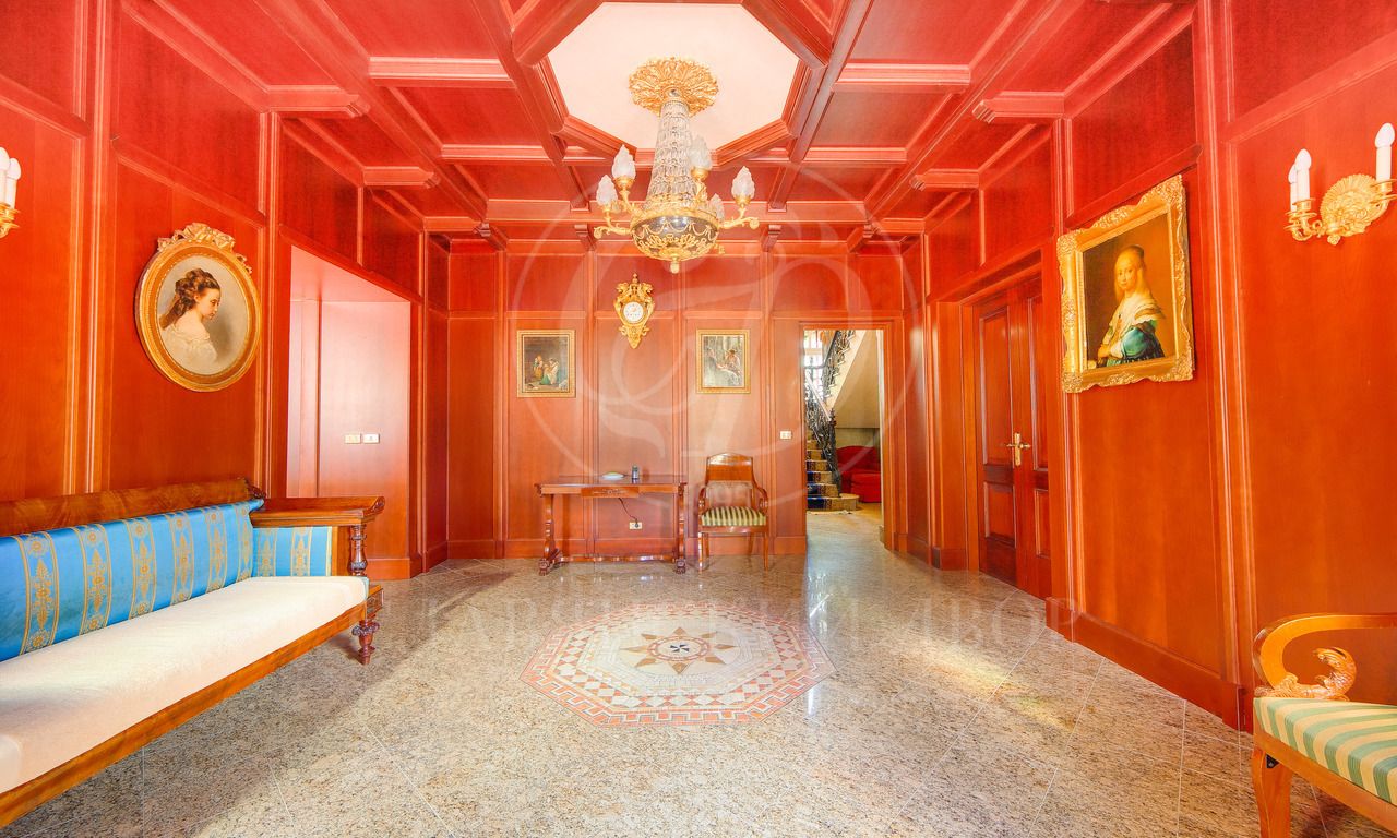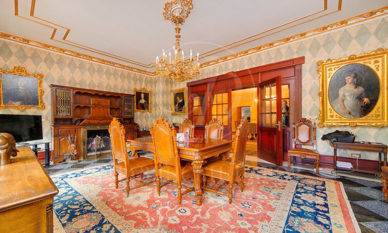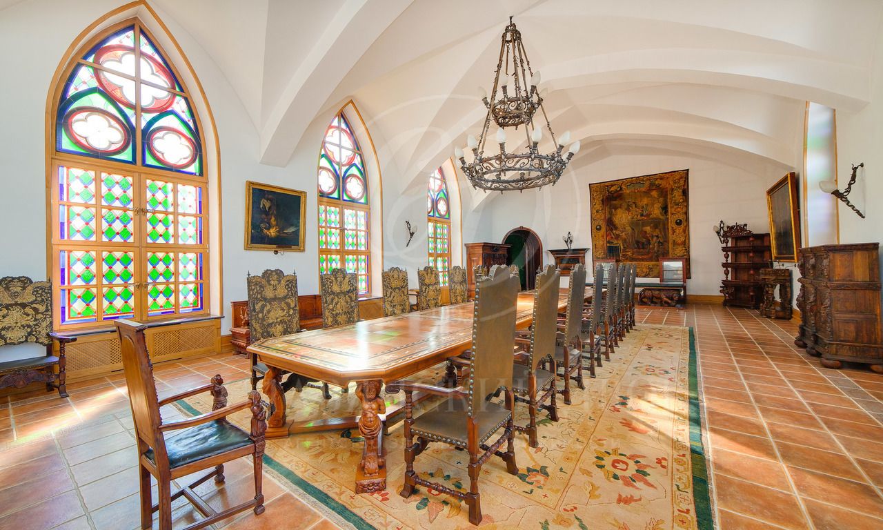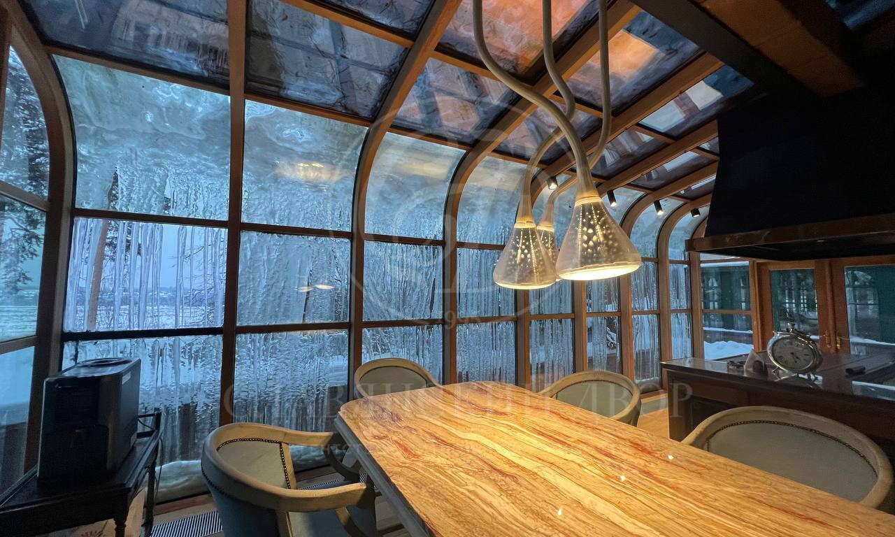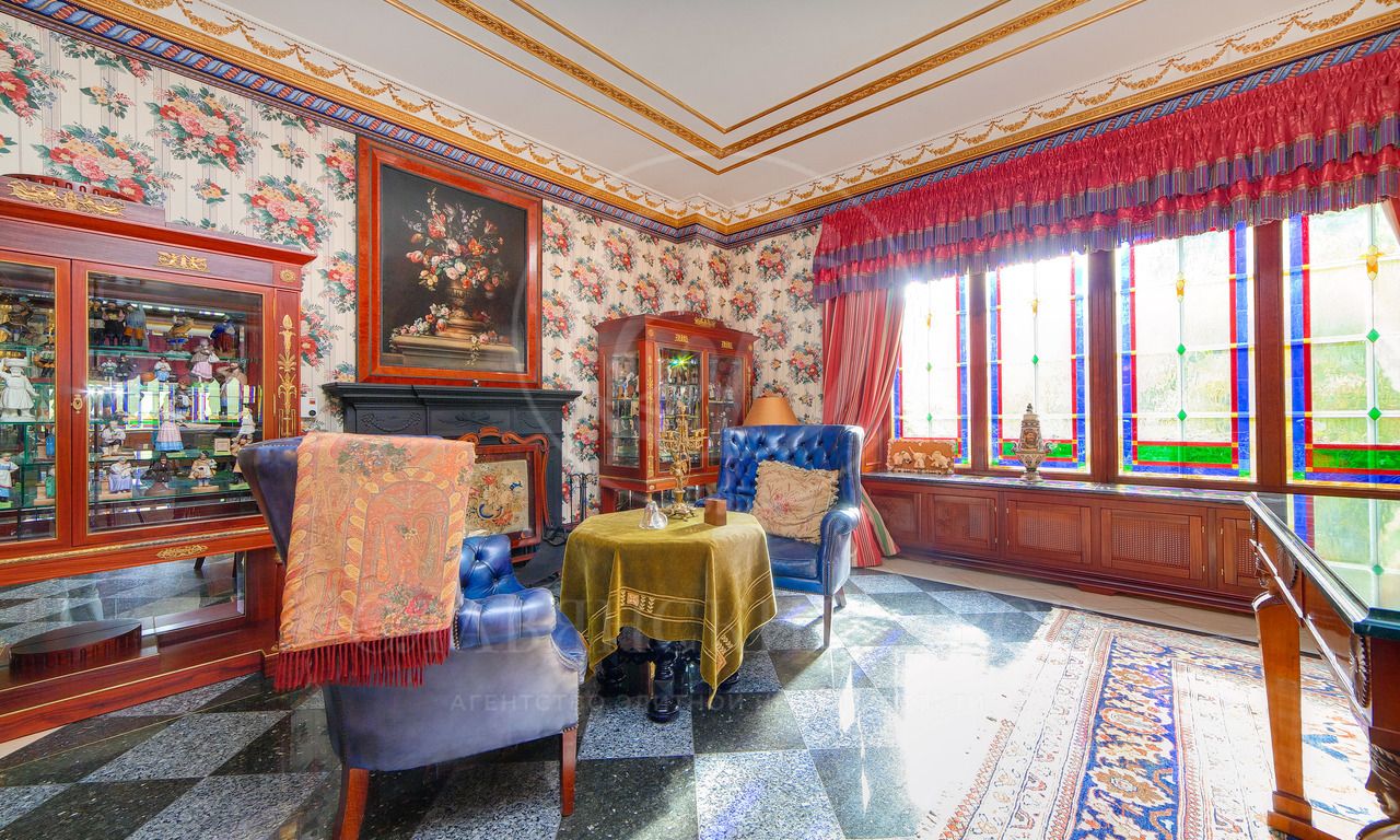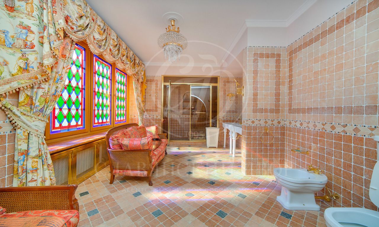 Основной дом: 3 гостиных , столовые, 3 кухни, 3 спальни со своими ванными и гардеробными комнатами и каминами: (хозяйская спальня занимает отдельное крыло дома), зоны отдыха: библиотека, домашний кинотеатр, бильярдная, зал для приемов и многое другое.