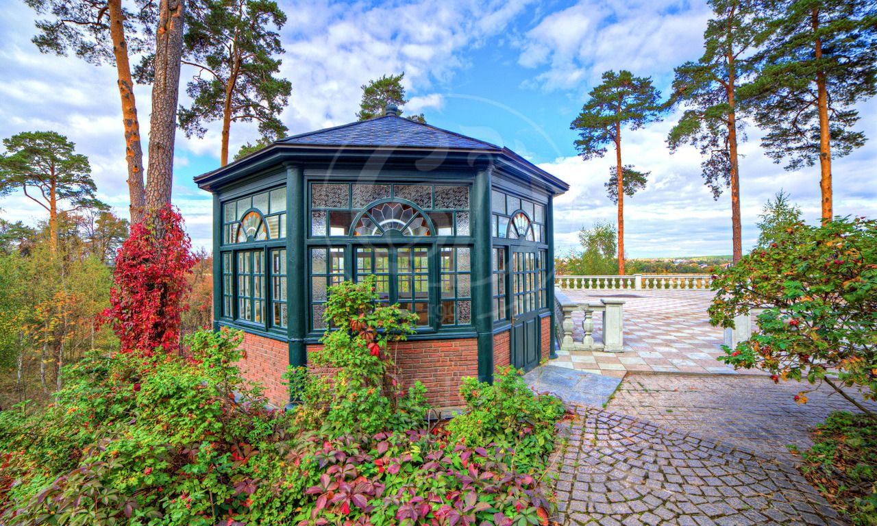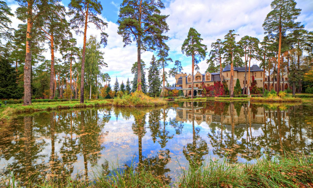 На участке: большое озеро, крытый теннисный корт со спорт. залом и сауной, чайный домик, смотровая площадка с живописным видом на реку.