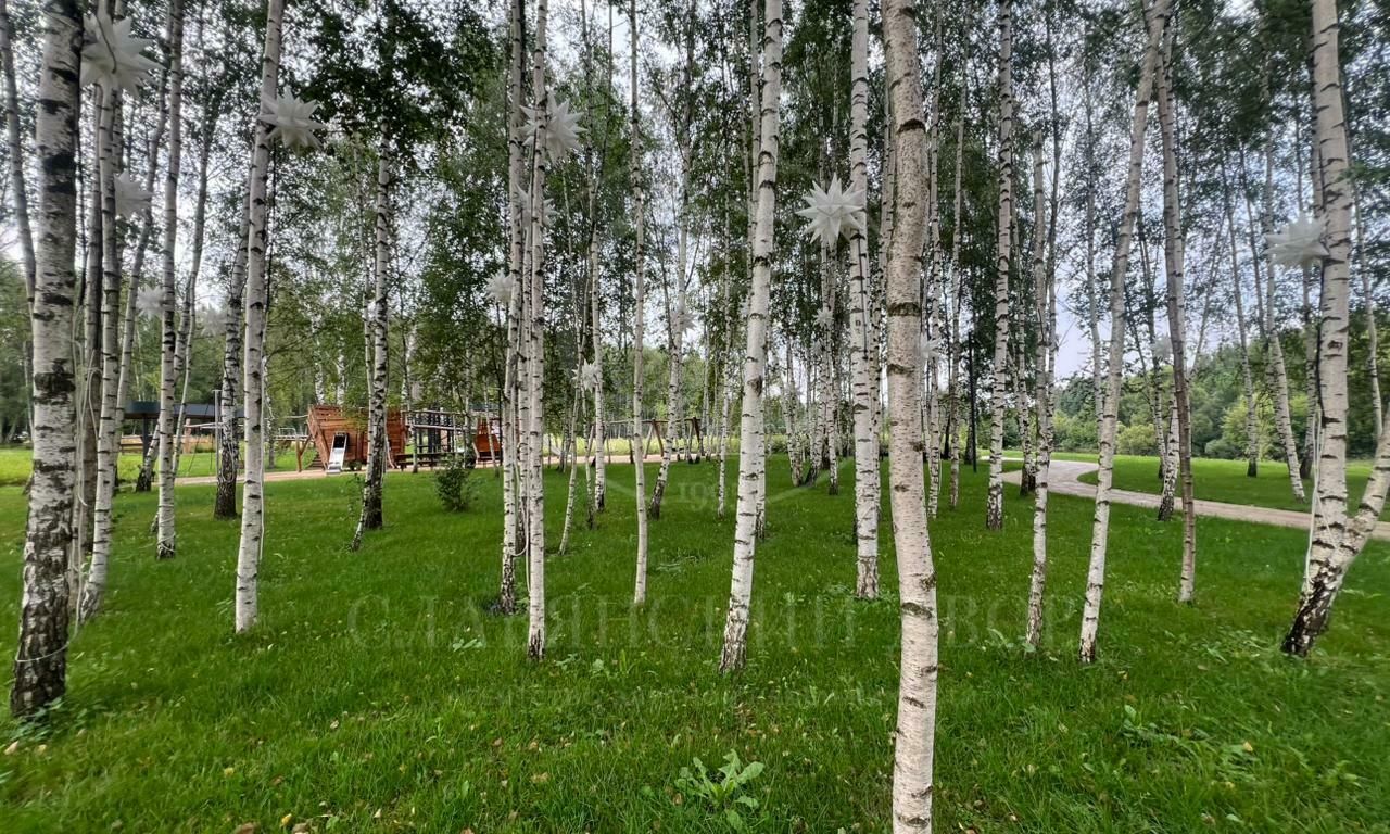 просторная гостиная с камином. Квартира для персонала. На участке выполнен ландшафтный дизайн, озеленение (туи, сосны, ели, клёны), освещение, система автоматического полива, открытый бассейн с подогревом, большая беседка.