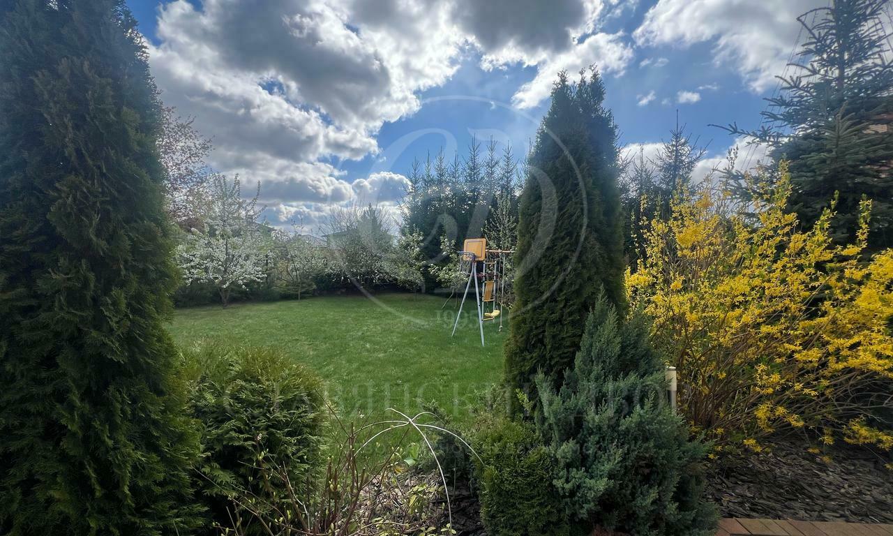 В садовой части расположен барбекю-комплекс с открытой террасой, включает печь для плова, шашлычницу, печь чугунную для пирогов, тандыр и т.д. Есть большая лужайка с газоном для подвижных игр и спортивный комплекс с качелями и баскетбольной сеткой для детей и взрослых.