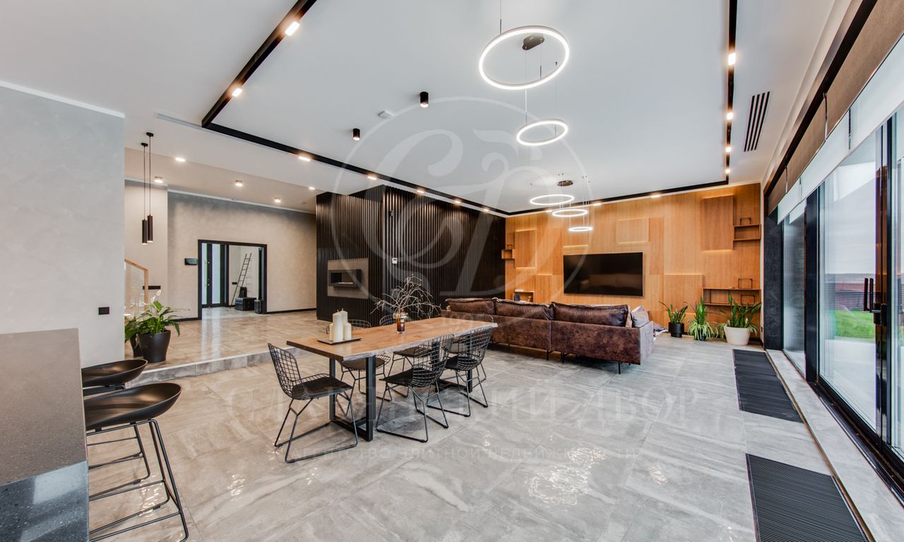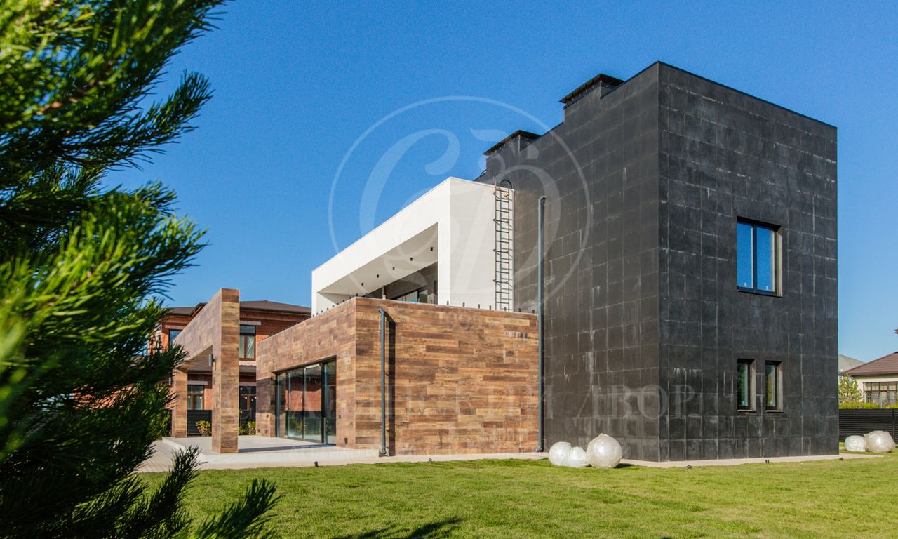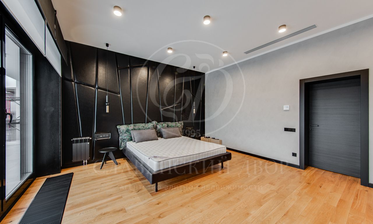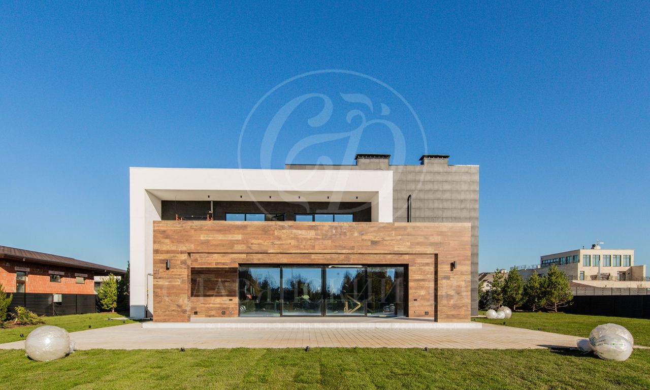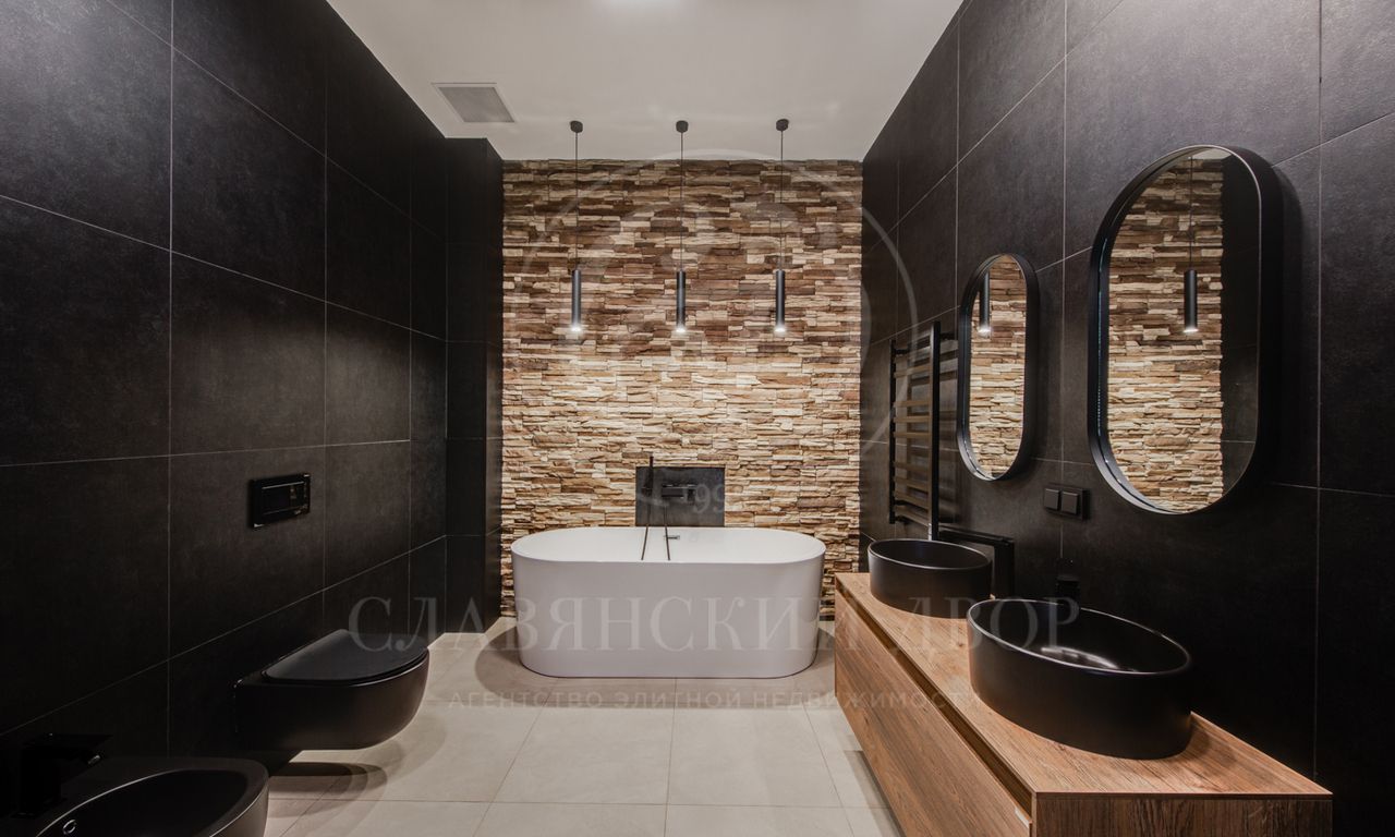В доме выполнен дизайнерский ремонт в стиле ар-деко. В отделке использованы натуральные материалы. Эксплуатируемая кровля, просторная терраса с роскошным видом на участок, высокие потолки.