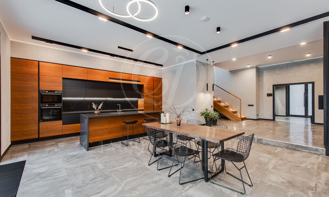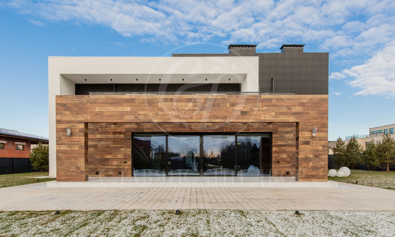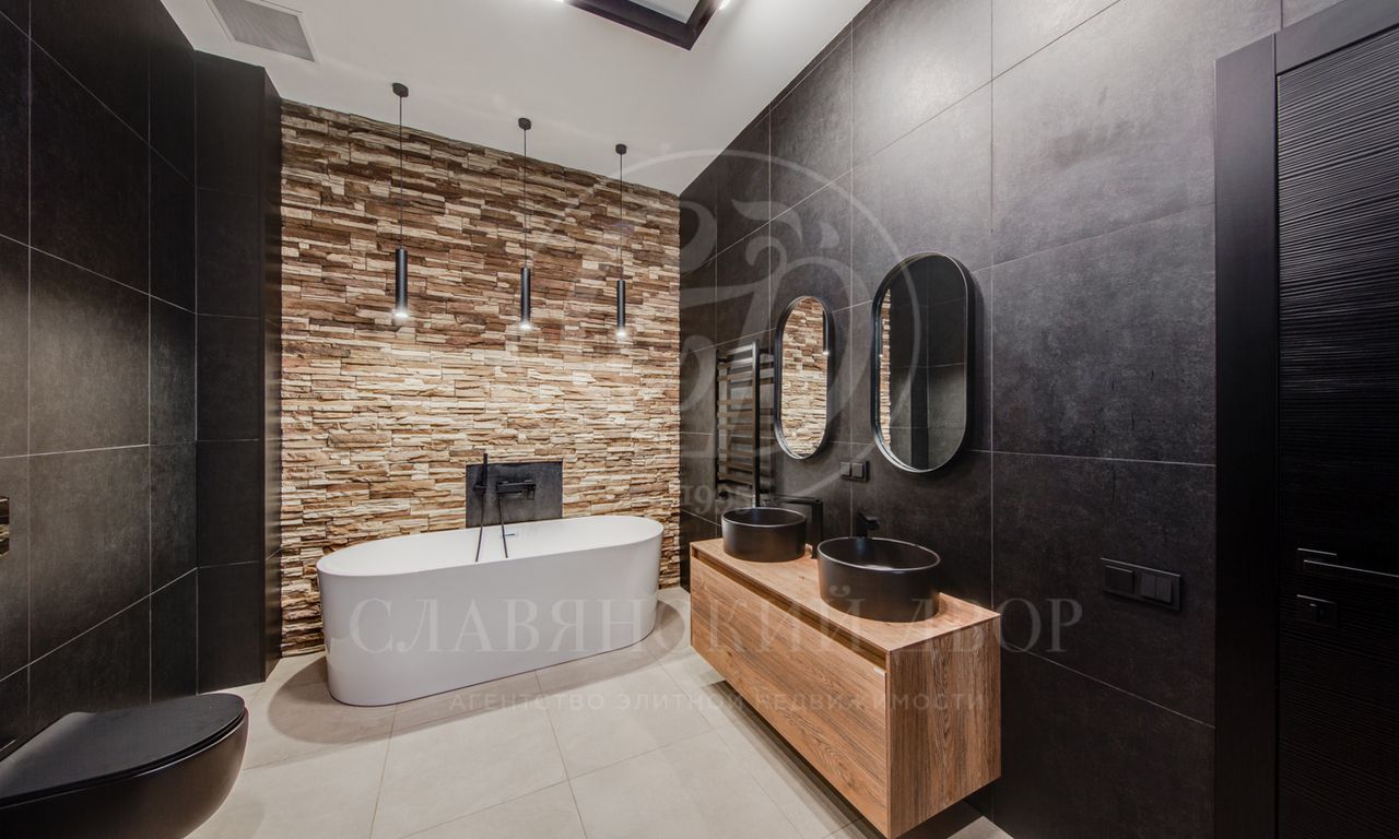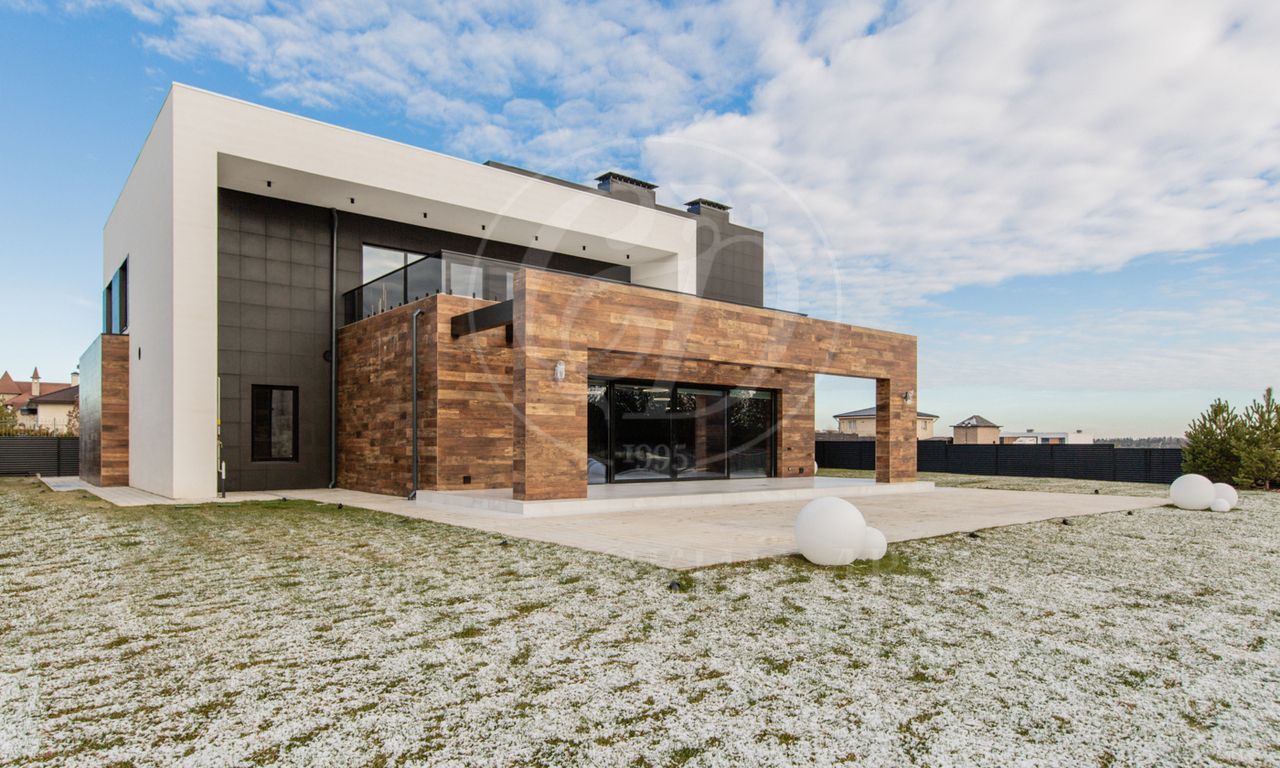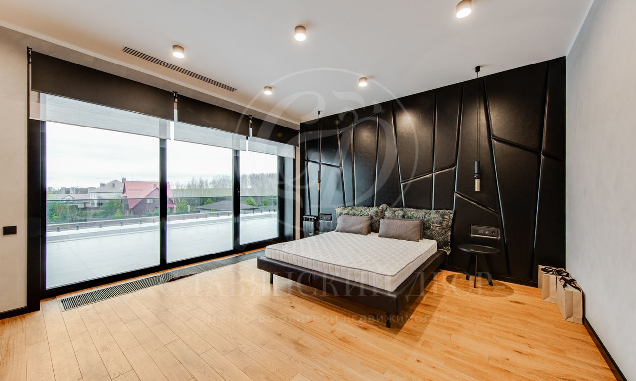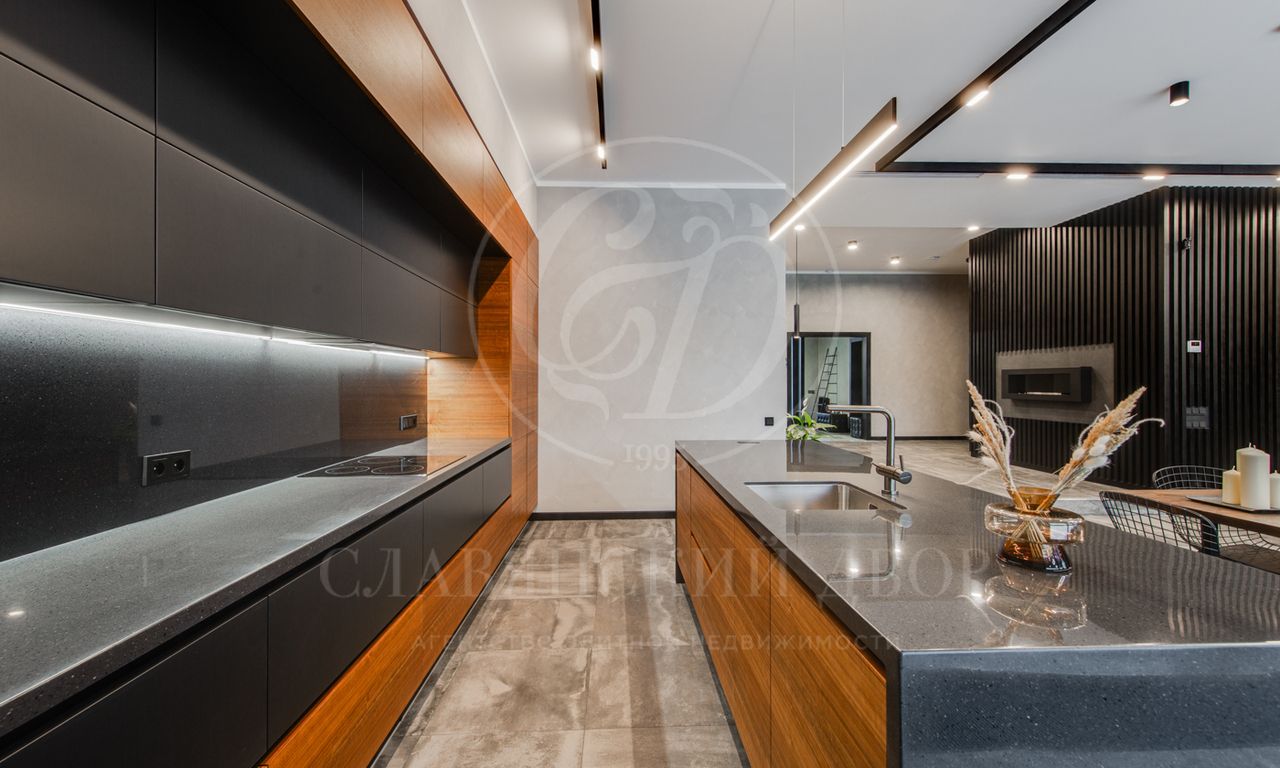 В доме выполнен дизайнерский ремонт в стиле ар-деко. В отделке использованы натуральные материалы. Эксплуатируемая кровля, просторная терраса с роскошным видом на участок, высокие потолки.