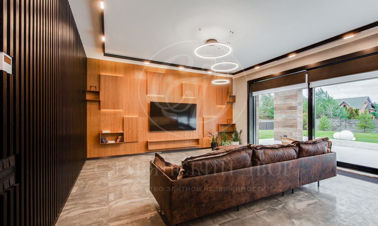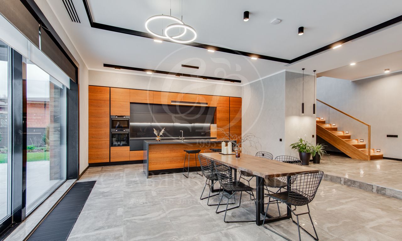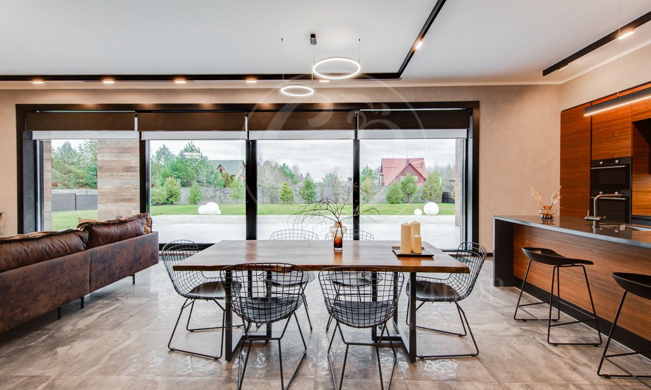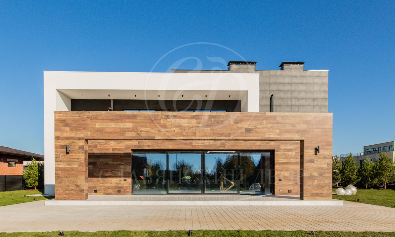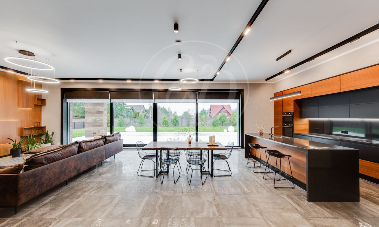 В доме выполнен дизайнерский ремонт в стиле ар-деко. В отделке использованы натуральные материалы. Эксплуатируемая кровля, просторная терраса с роскошным видом на участок, высокие потолки.