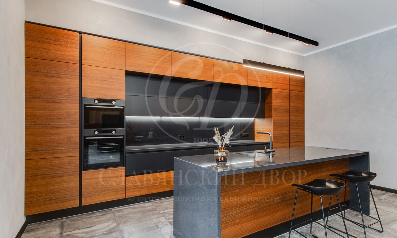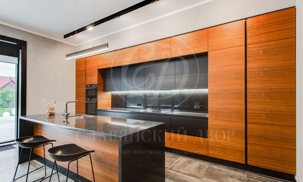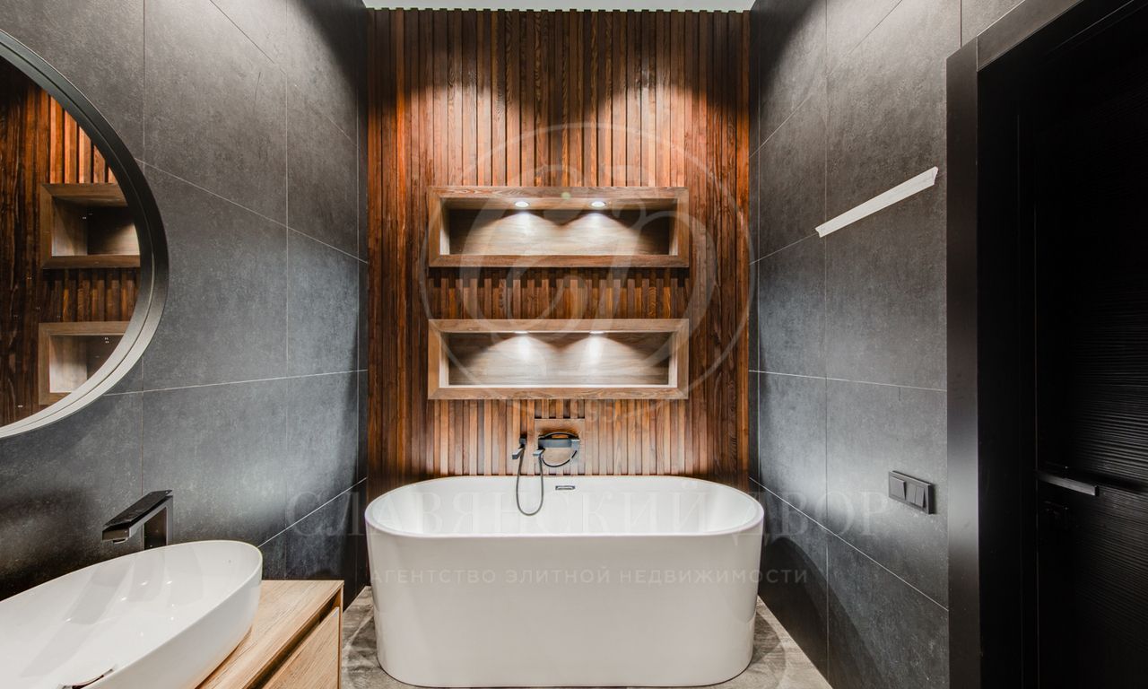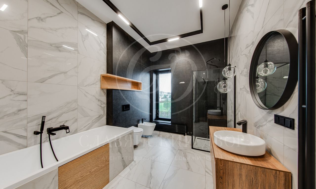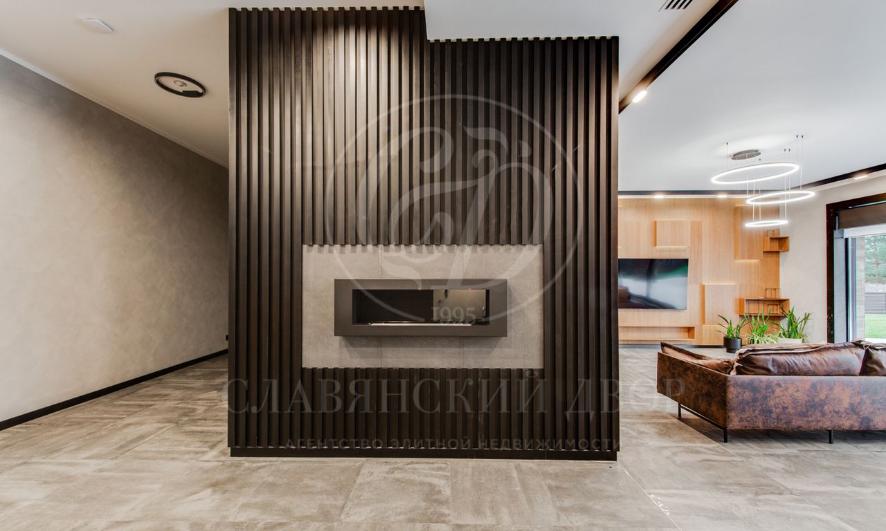 В доме выполнен дизайнерский ремонт в стиле ар-деко. В отделке использованы натуральные материалы. Эксплуатируемая кровля, просторная терраса с роскошным видом на участок, высокие потолки.