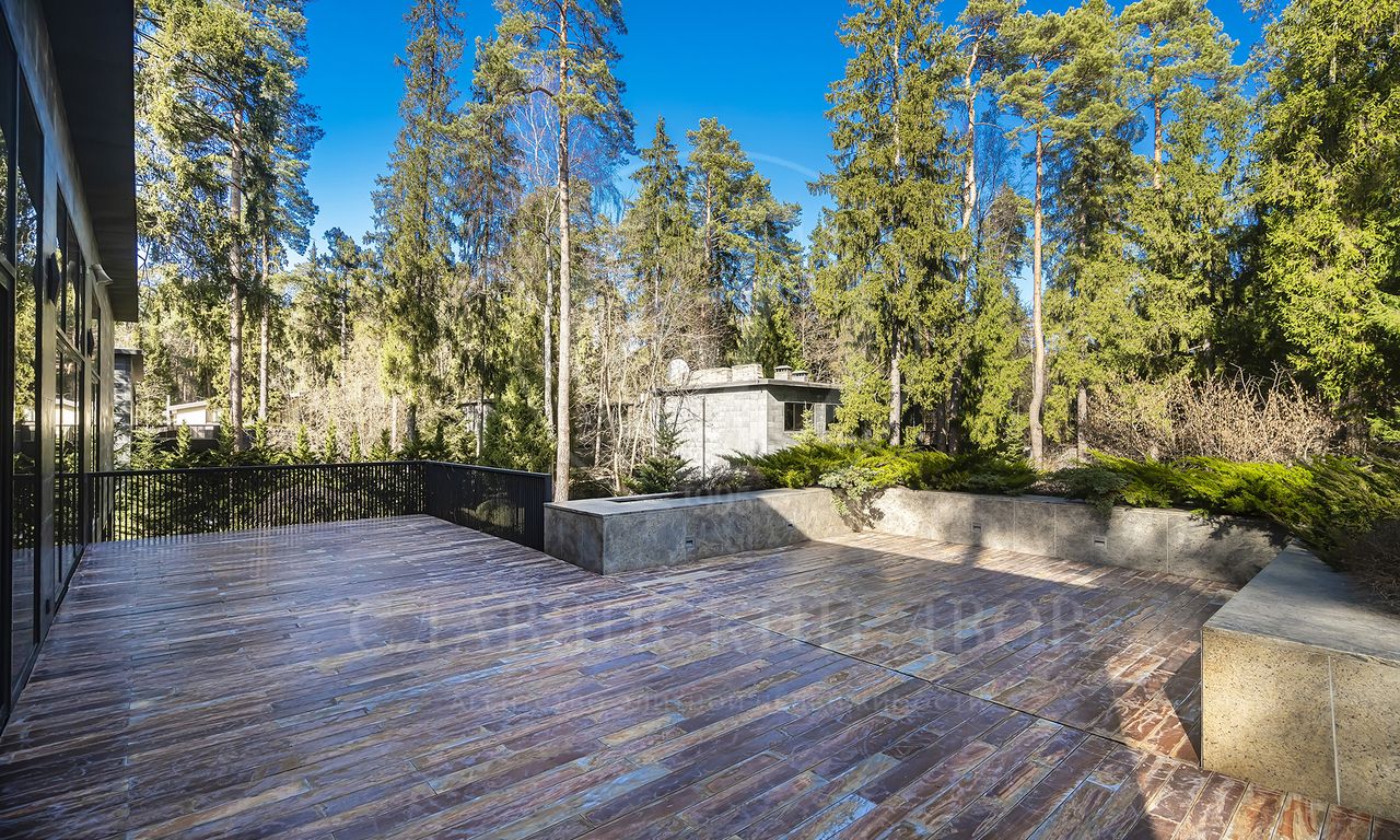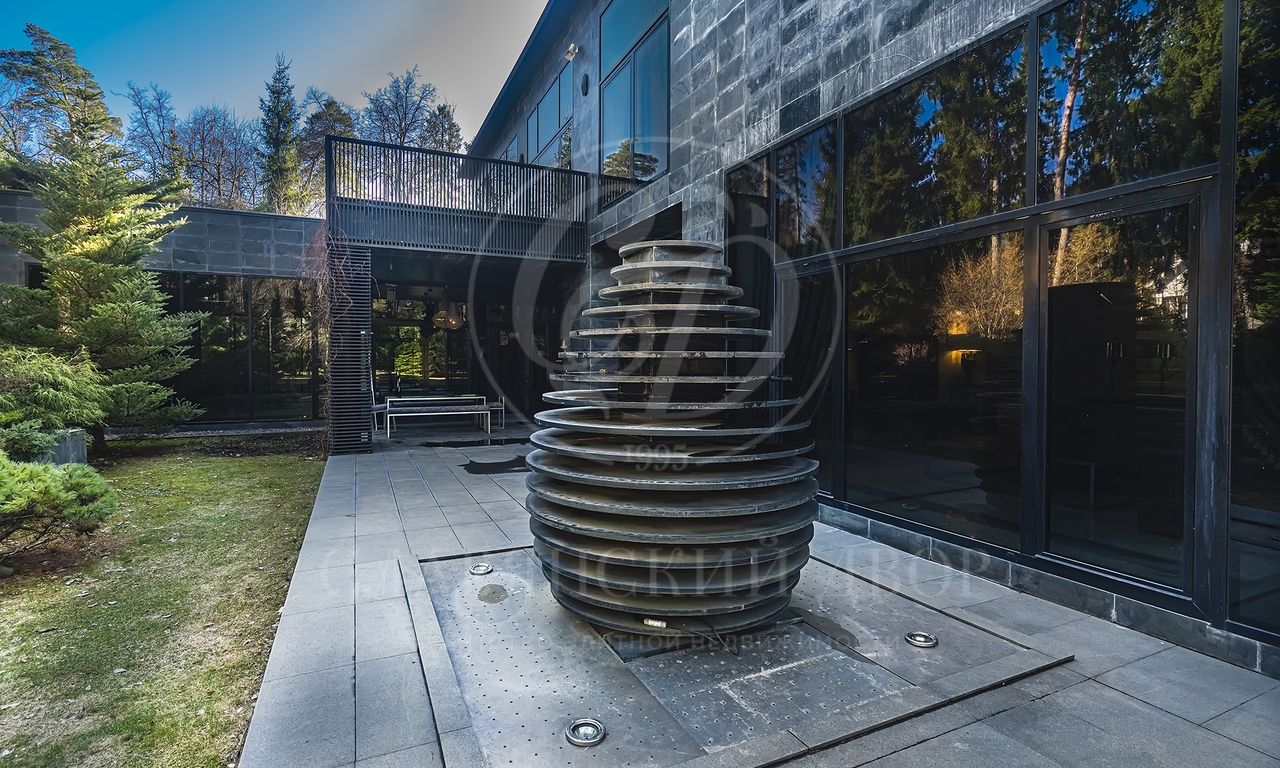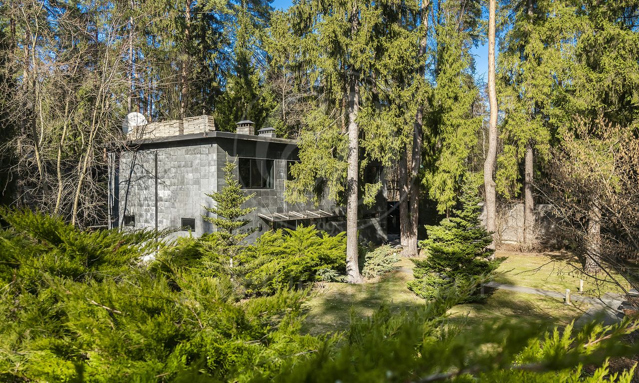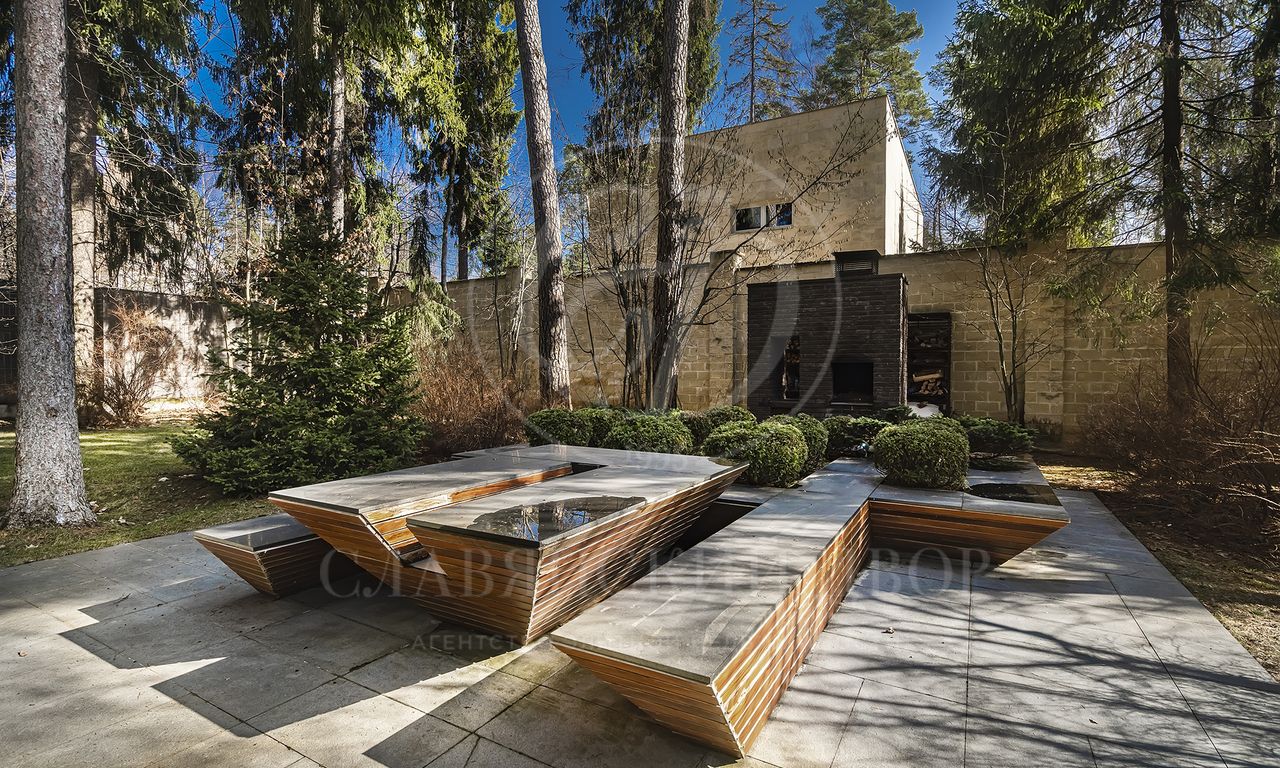 Участок прямоугольной формы с ландшафтным дизайном. На участке гостевой дом с гаражом общей площадью 227 кв. м. На первом этаже — кладовая, холл, котельная, гараж на 2 м/м, на втором этаже — холл, 2 спальни, ванная комната, гостиная-кухня.