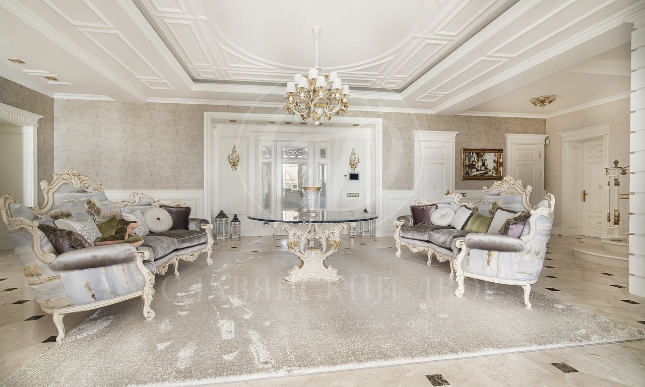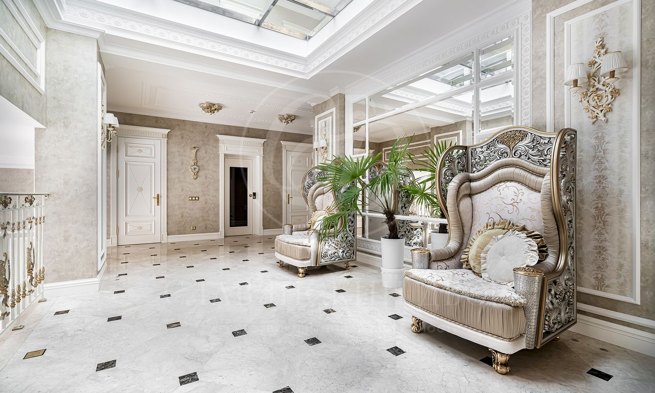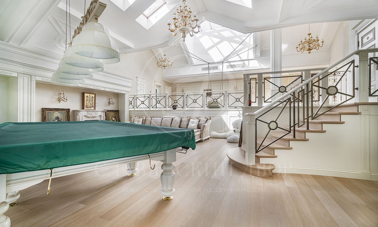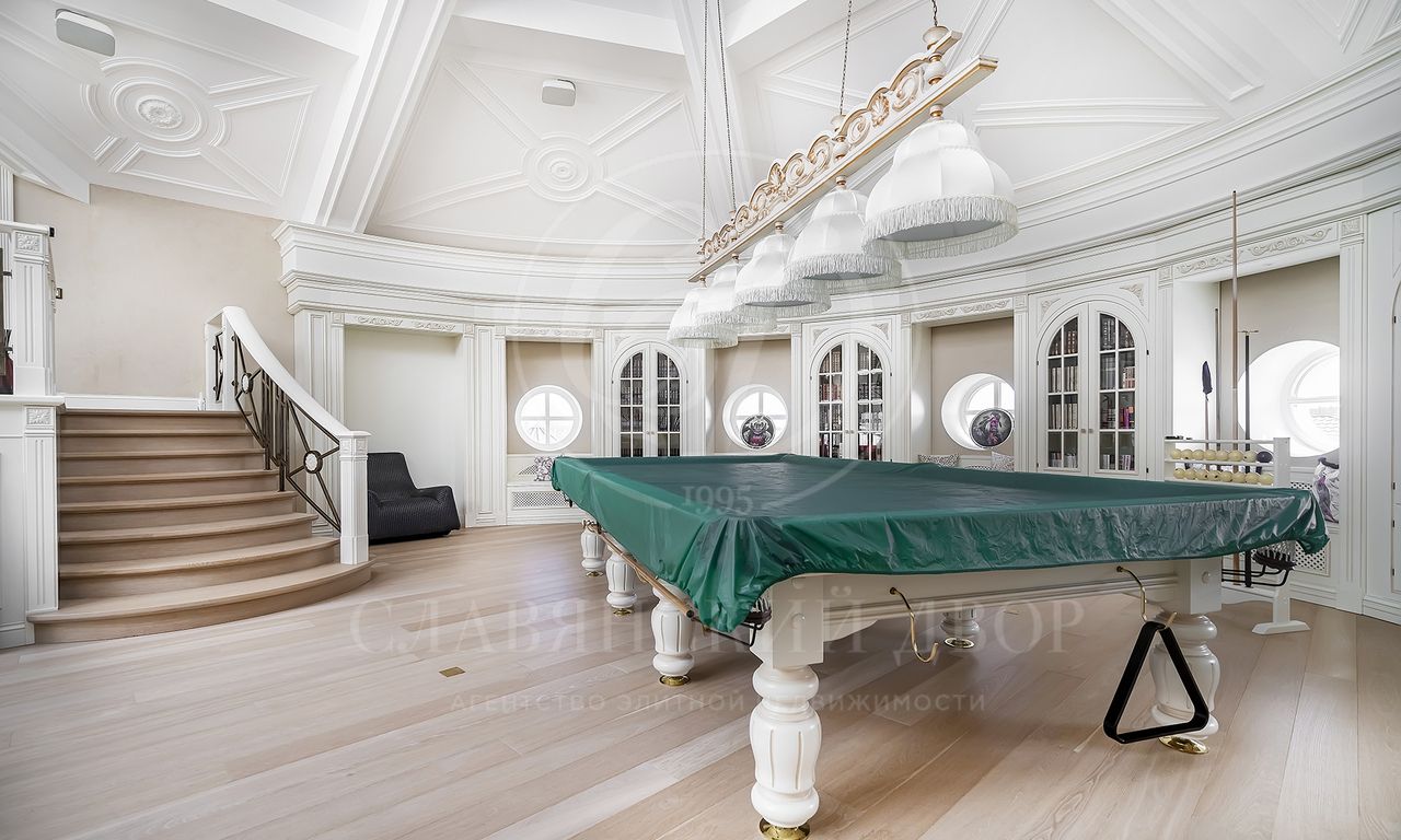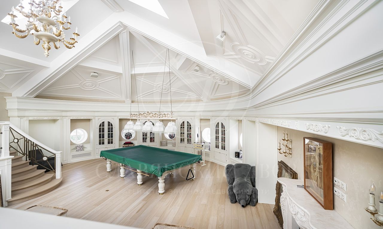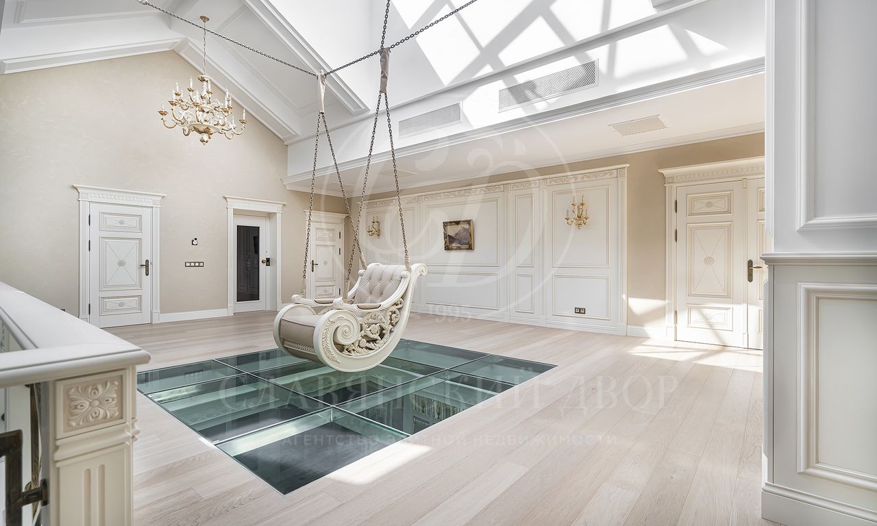 3 ЭТАЖ: холл с качелями под стеклянным куполом, зимняя гостиная с камином и русским бильярдом (бильярдный стол 12 футов), гостевая спальня №1 с с/у и душевой кабиной, гардеробной и огромным помещением для хранения, гостевая спальня №2 с гардеробной и с/у с душевой кабиной, спальня №3, комната для персонала, с/у, большой тренажерный зал (полностью оборудован).