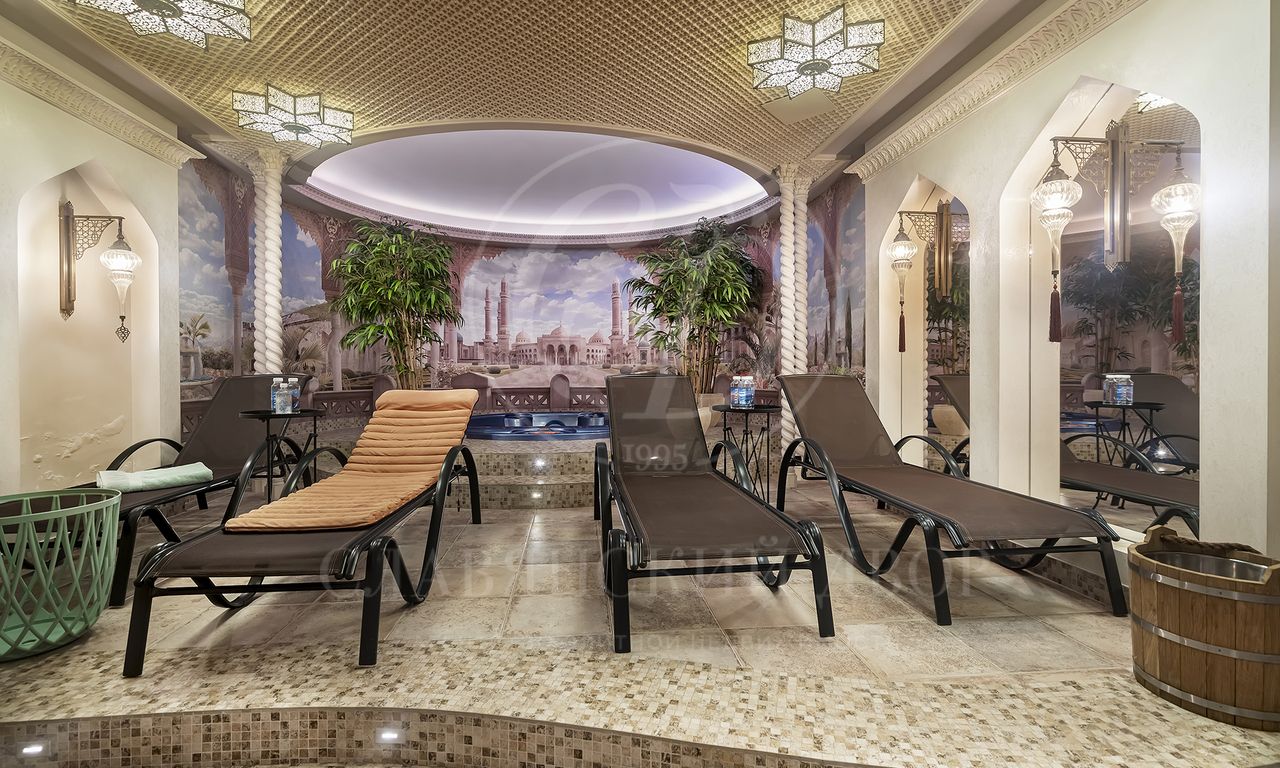 Зона SPA: джакузи бассейного типа, зона отдыха с лежаками, душ многофункциональный с хромотерапией и тропическим душем, раздевалка, зона отдыха (мини кухня, с/у, chill out).