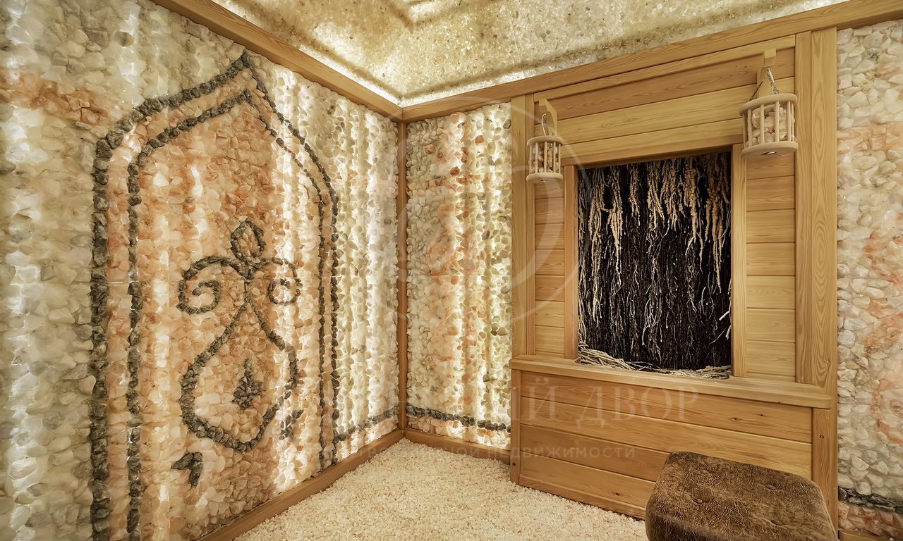 Банная зона: соляная баня на дровах создает уникальный микроклимат, банный камень жадеит, способствует укреплению иммунной системы и снятию стресса, купель, хамам, душ-2шт техническое помещение для хранения дров, матрасов, подсобное помещение.