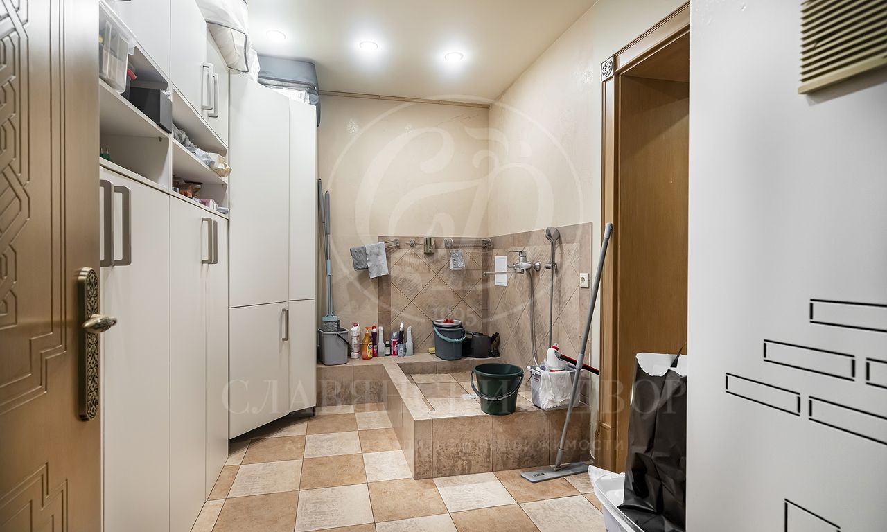 Хозяйственный блок: кухня (горячий и холодный цех) с подсобным помещением, лифт, техническое помещение для хранения, постирочная, стиральные машины 2х типов для элитной одежде, шкаф для придания свежести одежды, серверная, котельная.