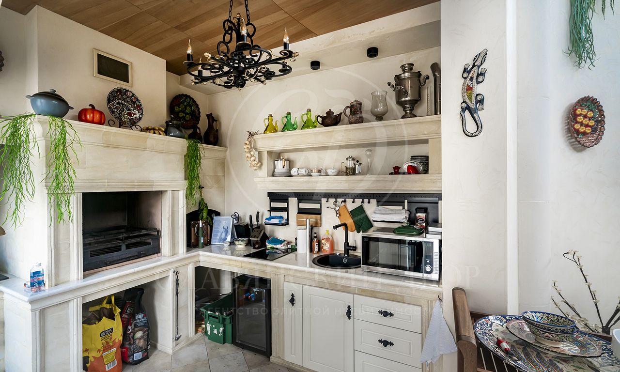 НА УЧАСТКЕ: беседка (мангал, круглый камин, зона отдыха, печь-пицца, казан, гриль, зона кухни), качели, летняя площадка для установки каркасного бассейна с лежаками, плодовый сад (вишня, яблоня, слива, малина; черная, красная и белая смородина, голубика, сирень), огород.