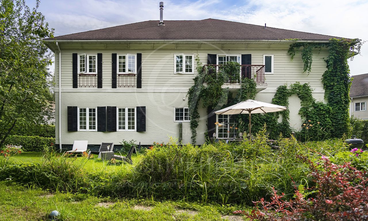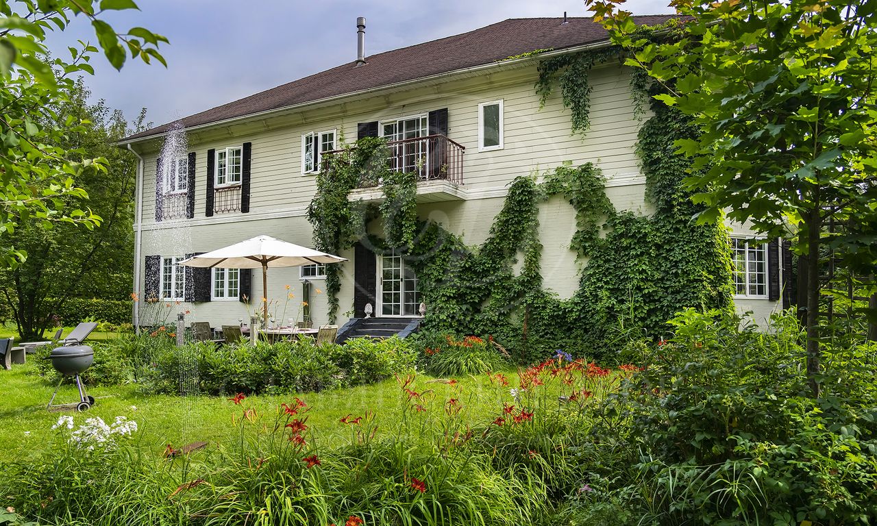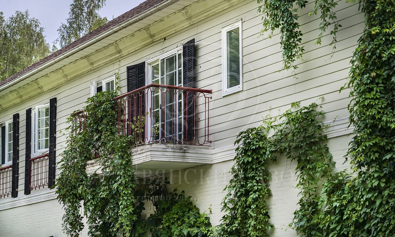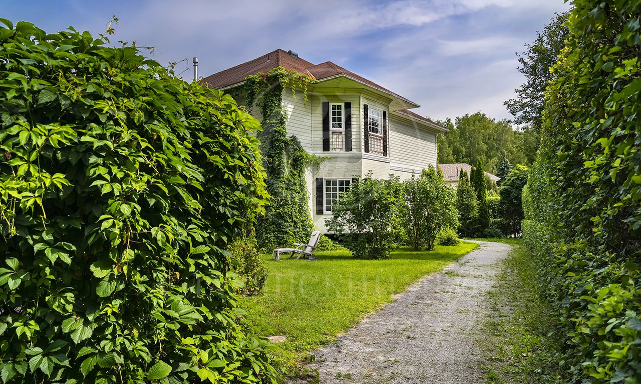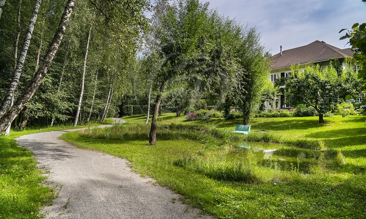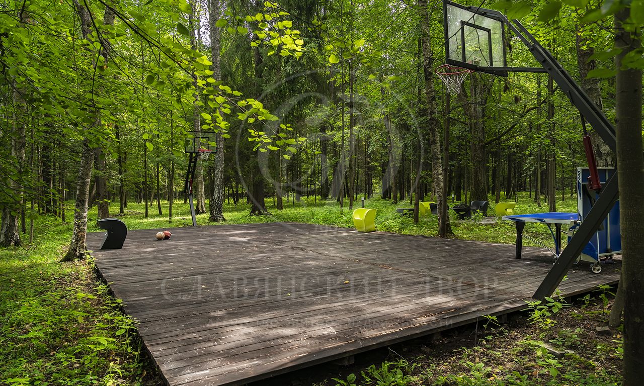 Вид из дома открывается на пруд и лес. Есть собственный выход на огороженный по периметру участок леса с баскетбольной и теннисной площадками, оборудованными освещением и прогулочными дорожками, оснащёнными видеонаблюдением.