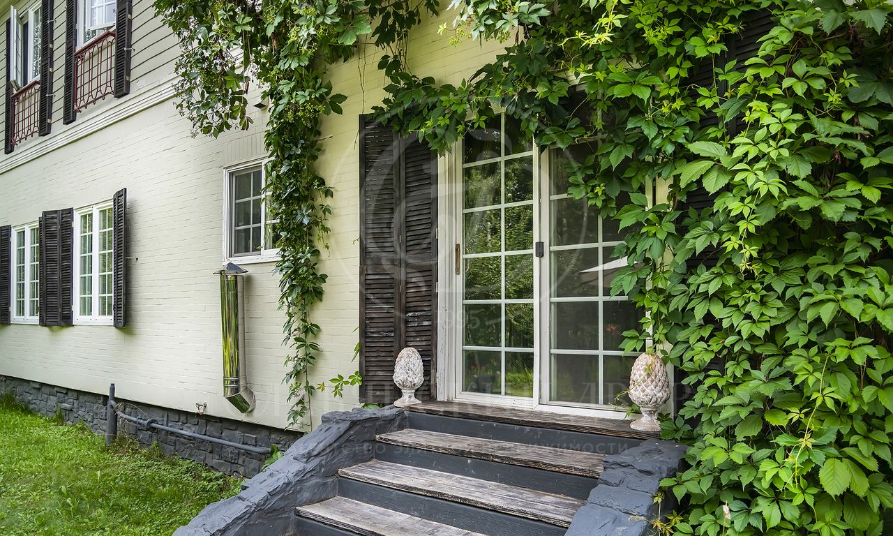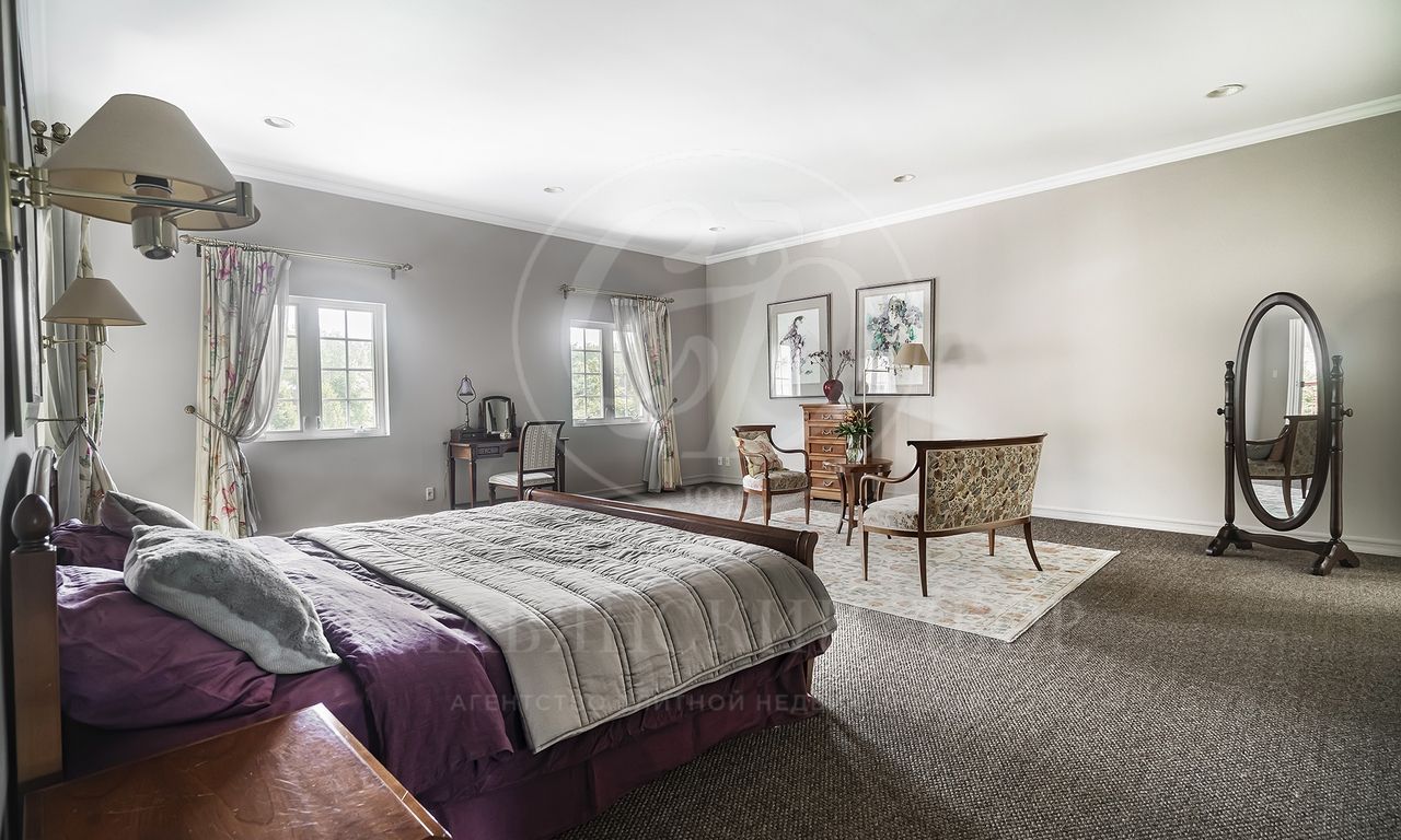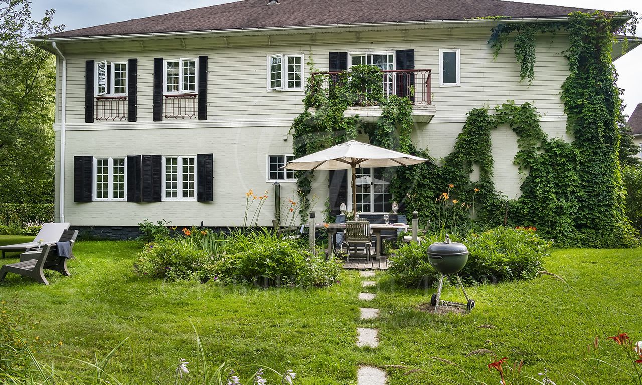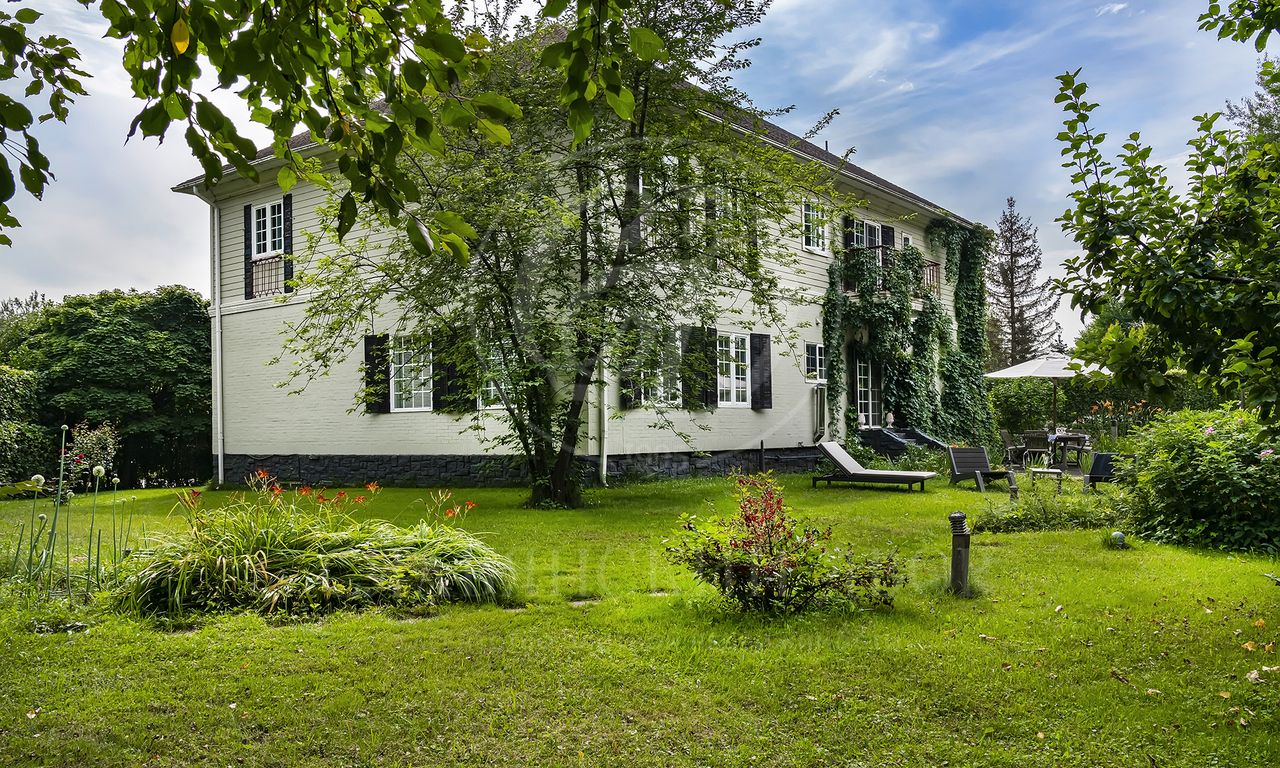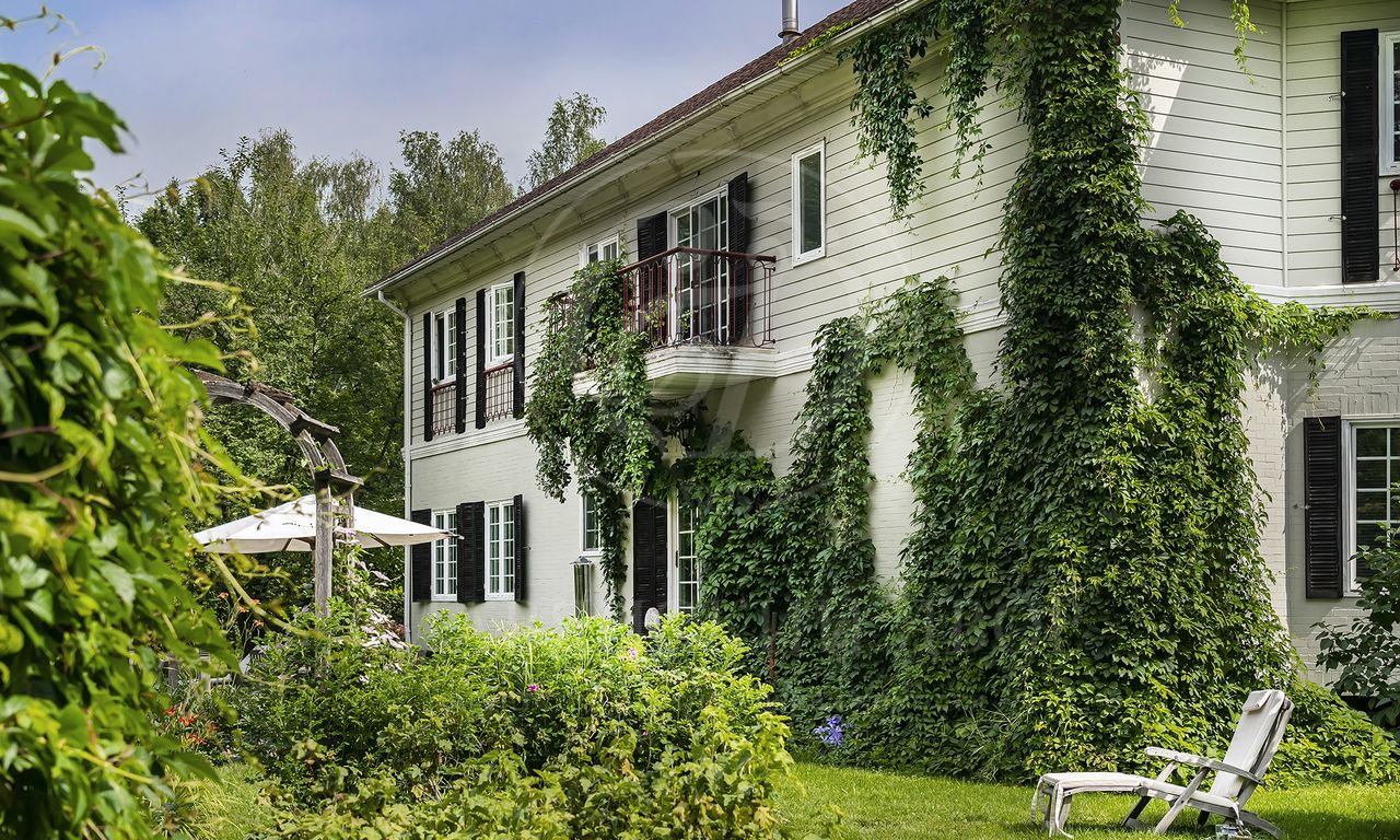 Вид из дома открывается на пруд и лес. Есть собственный выход на огороженный по периметру участок леса с баскетбольной и теннисной площадками, оборудованными освещением и прогулочными дорожками, оснащёнными видеонаблюдением.