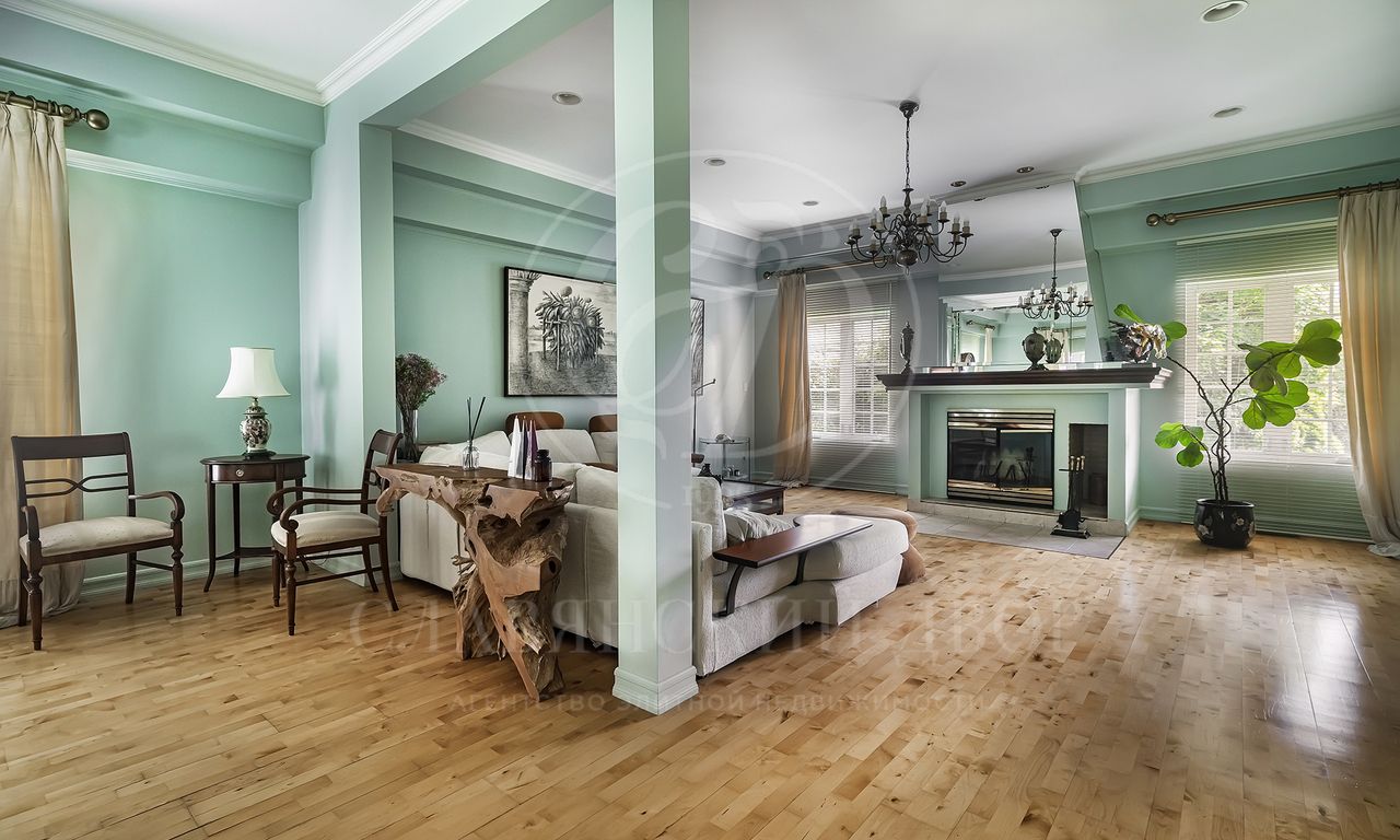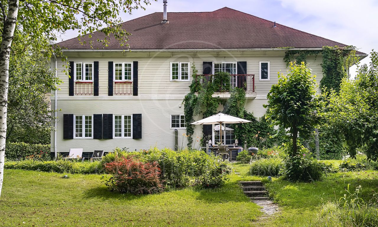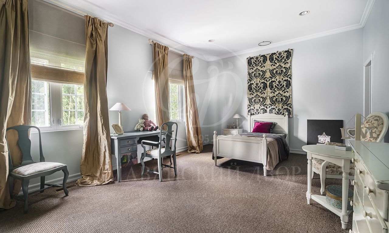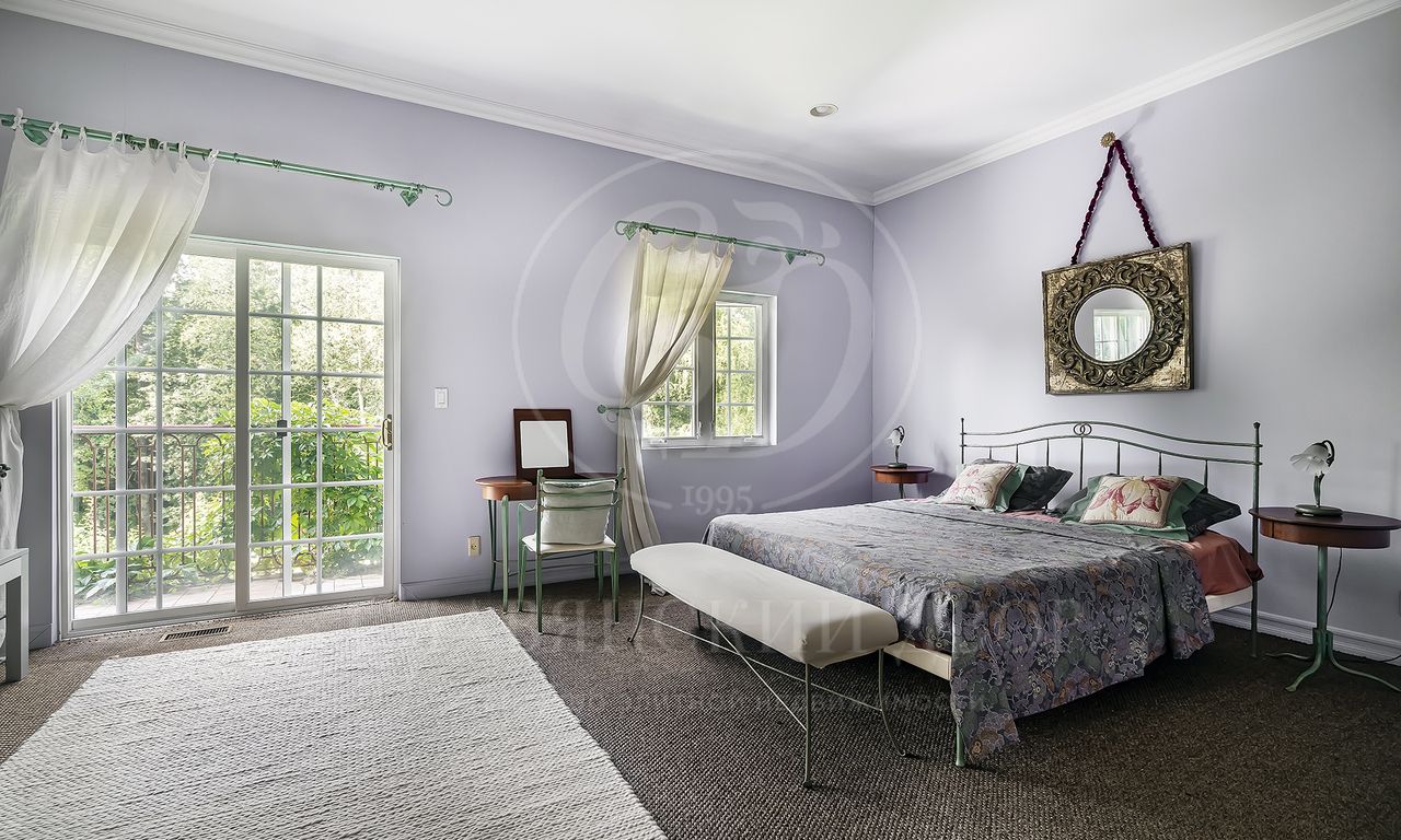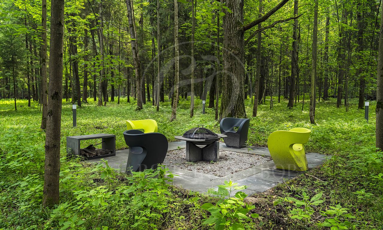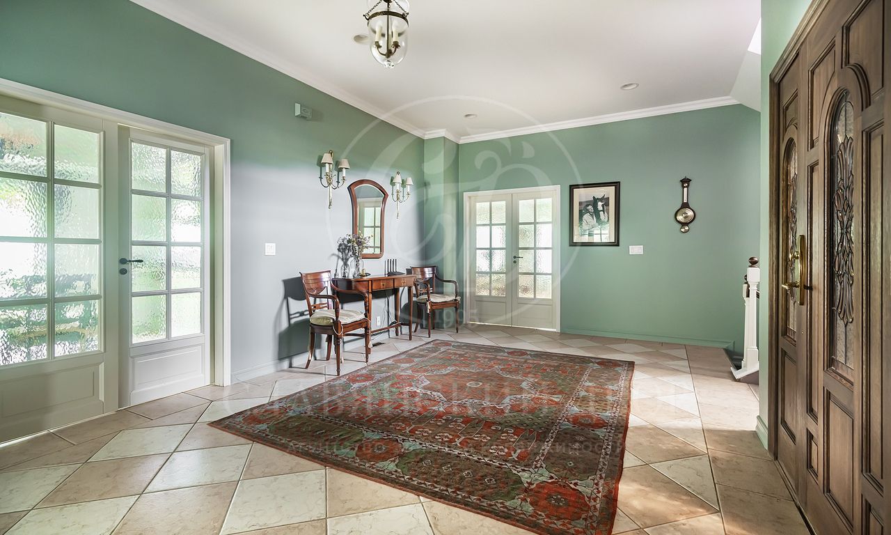 Вид из дома открывается на пруд и лес. Есть собственный выход на огороженный по периметру участок леса с баскетбольной и теннисной площадками, оборудованными освещением и прогулочными дорожками, оснащёнными видеонаблюдением.