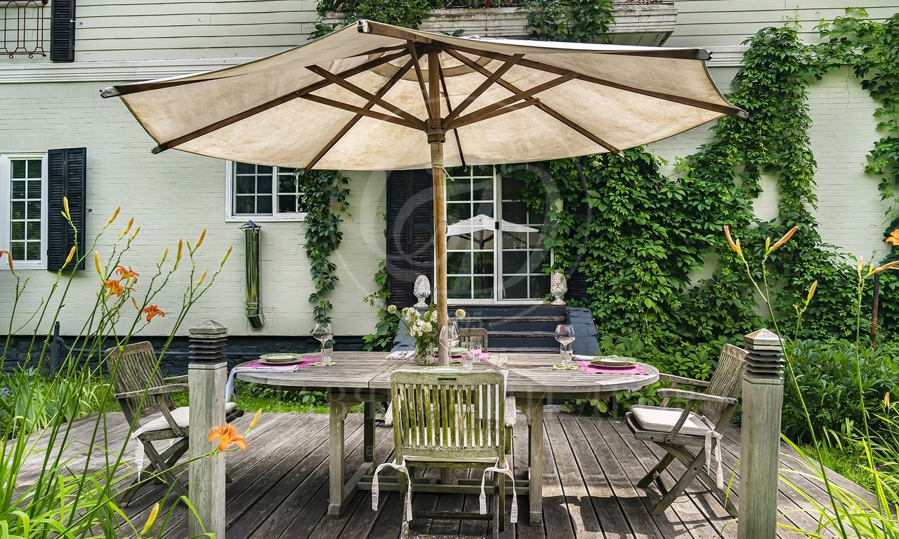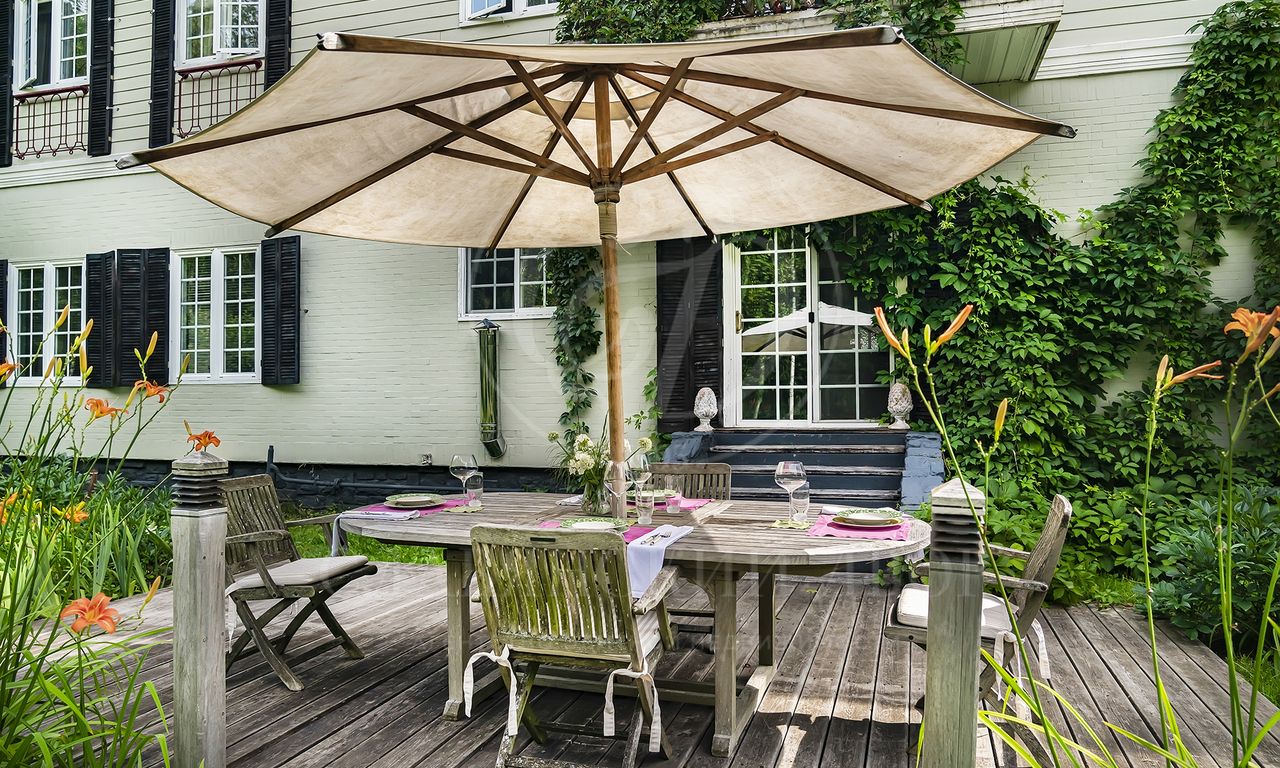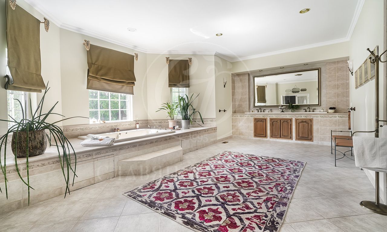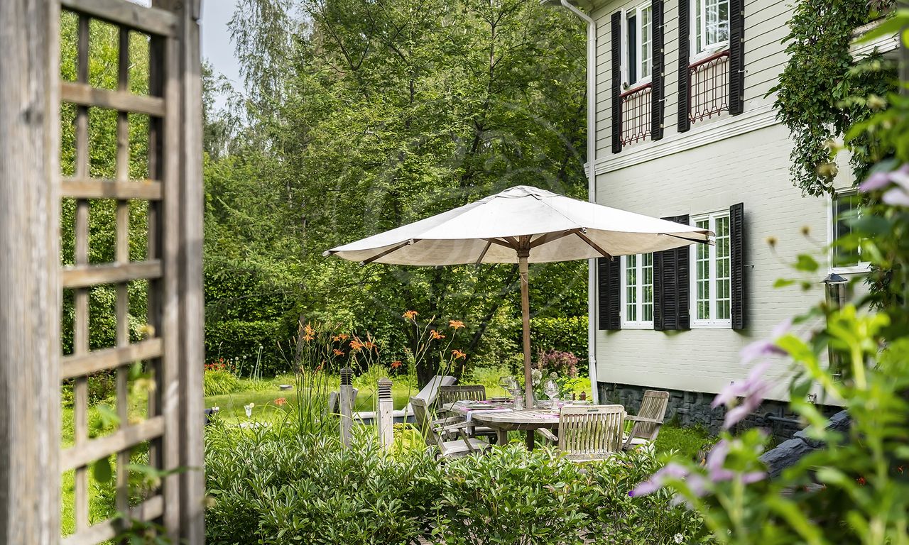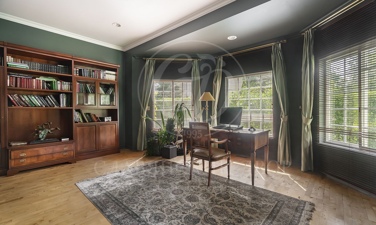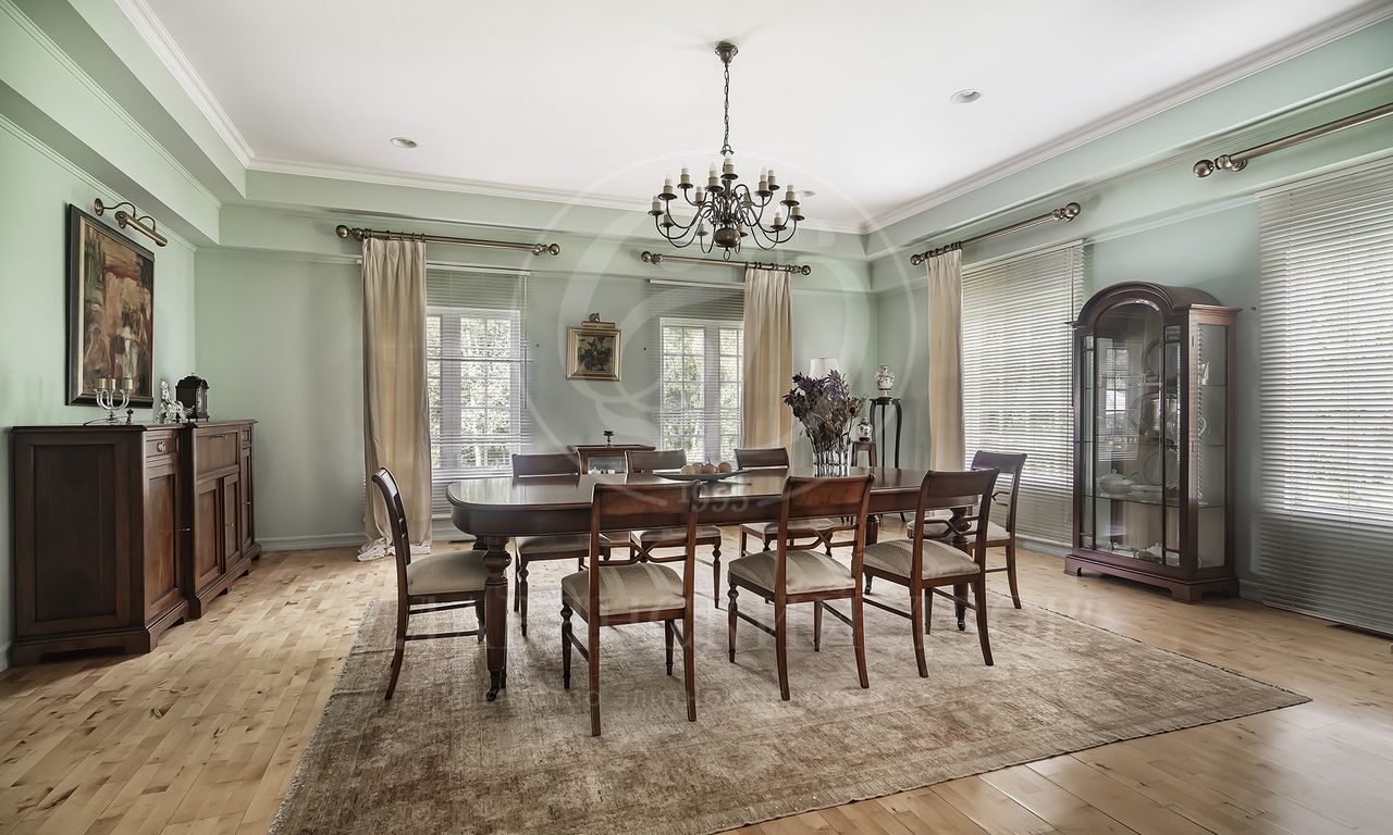 Вид из дома открывается на пруд и лес. Есть собственный выход на огороженный по периметру участок леса с баскетбольной и теннисной площадками, оборудованными освещением и прогулочными дорожками, оснащёнными видеонаблюдением.