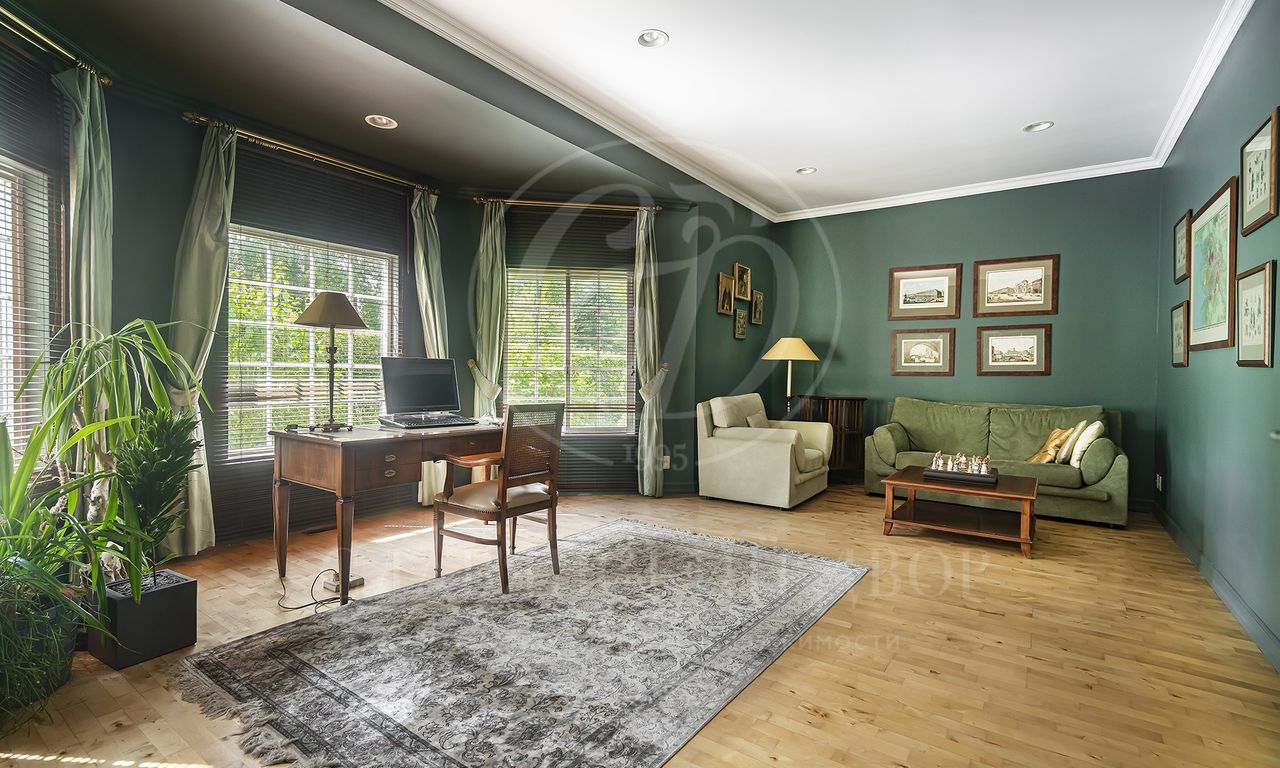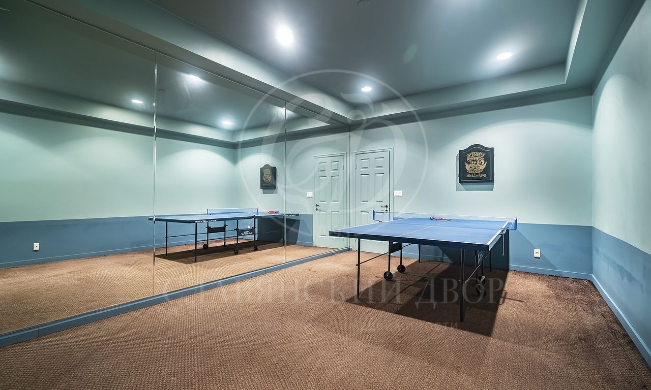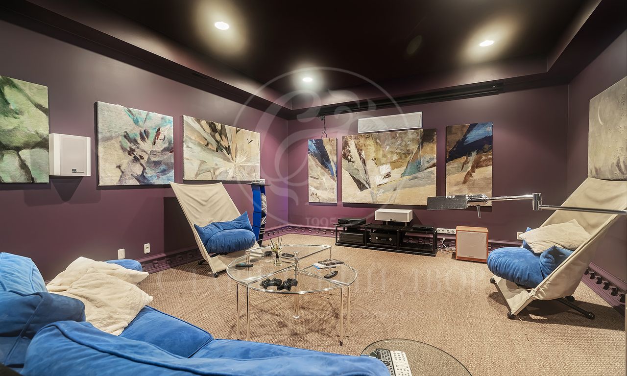 Цокольный этаж: кинозал с качественной шумоизоляцией, сауна, джакузи, зона отдыха, зал для занятий спортом, комната, санузел, постирочная, гладильная.