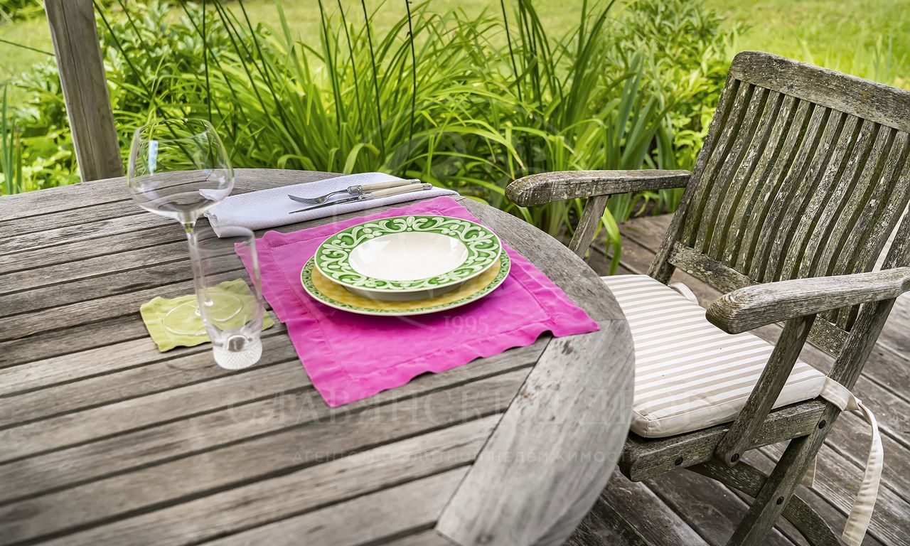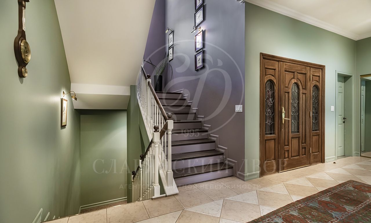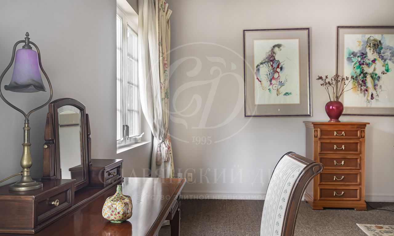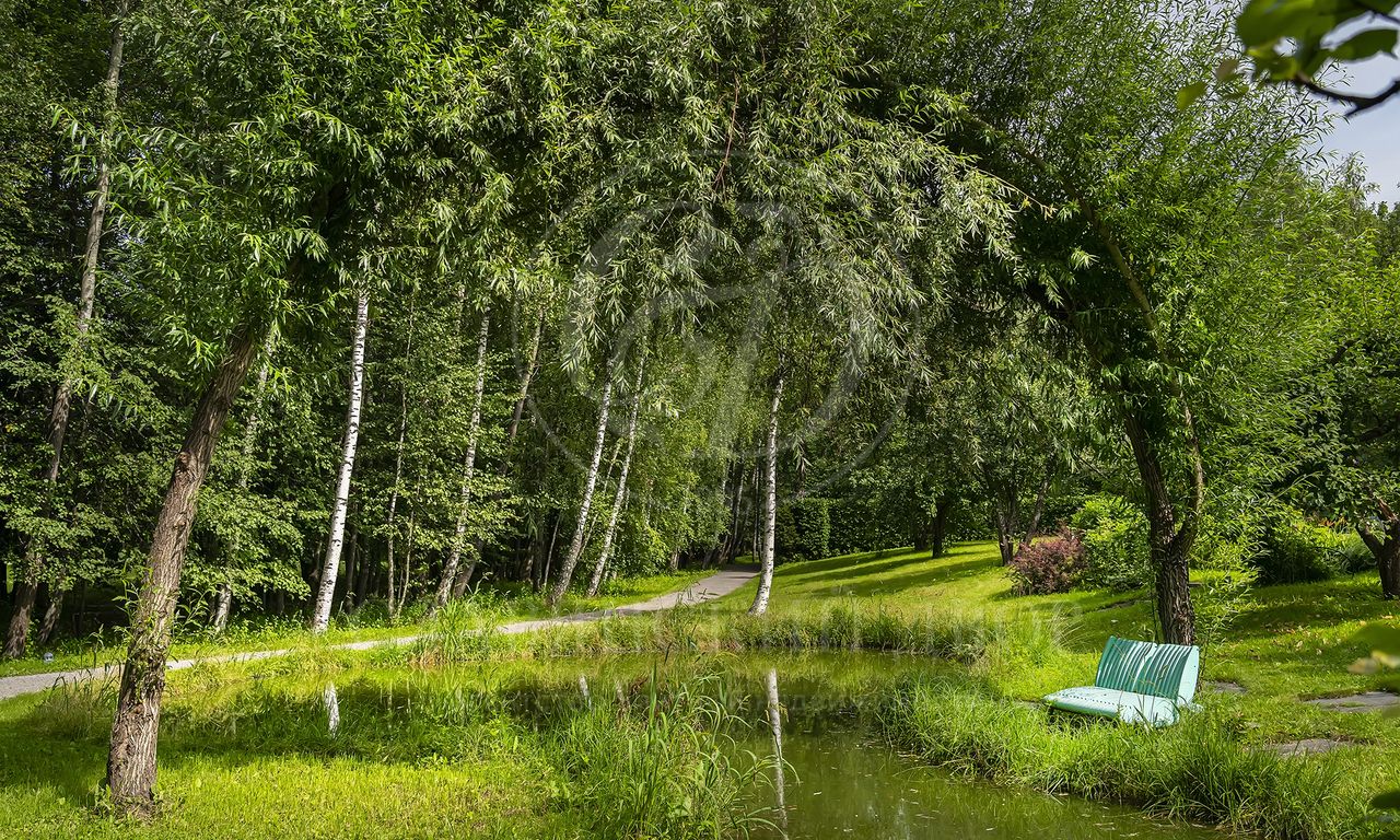 Вокруг дома высажены плодовые деревья и кустарники. Перед домом находится небольшой пруд и зона для барбекю. В шаговой доступности — Первая Московская гимназия.