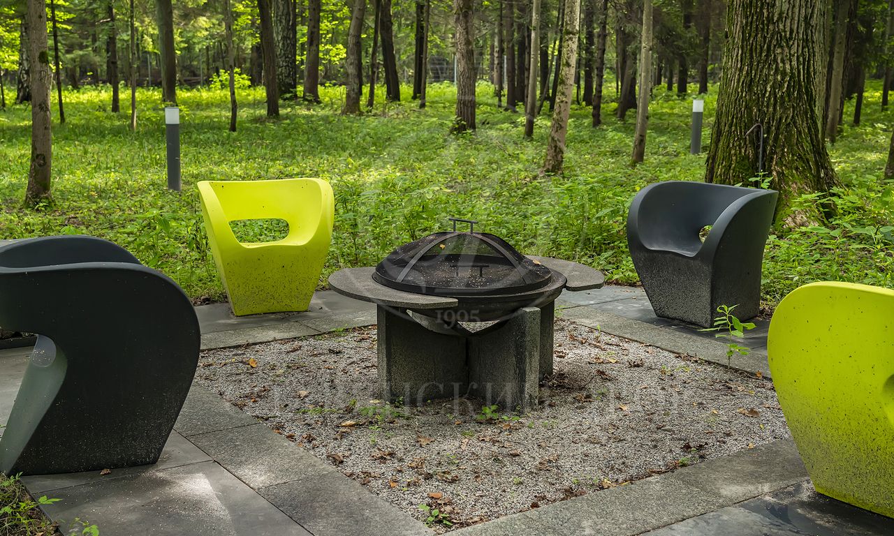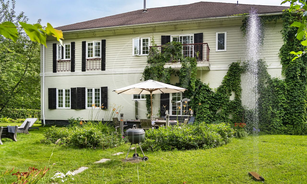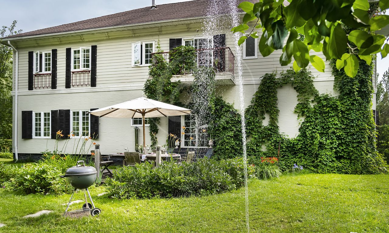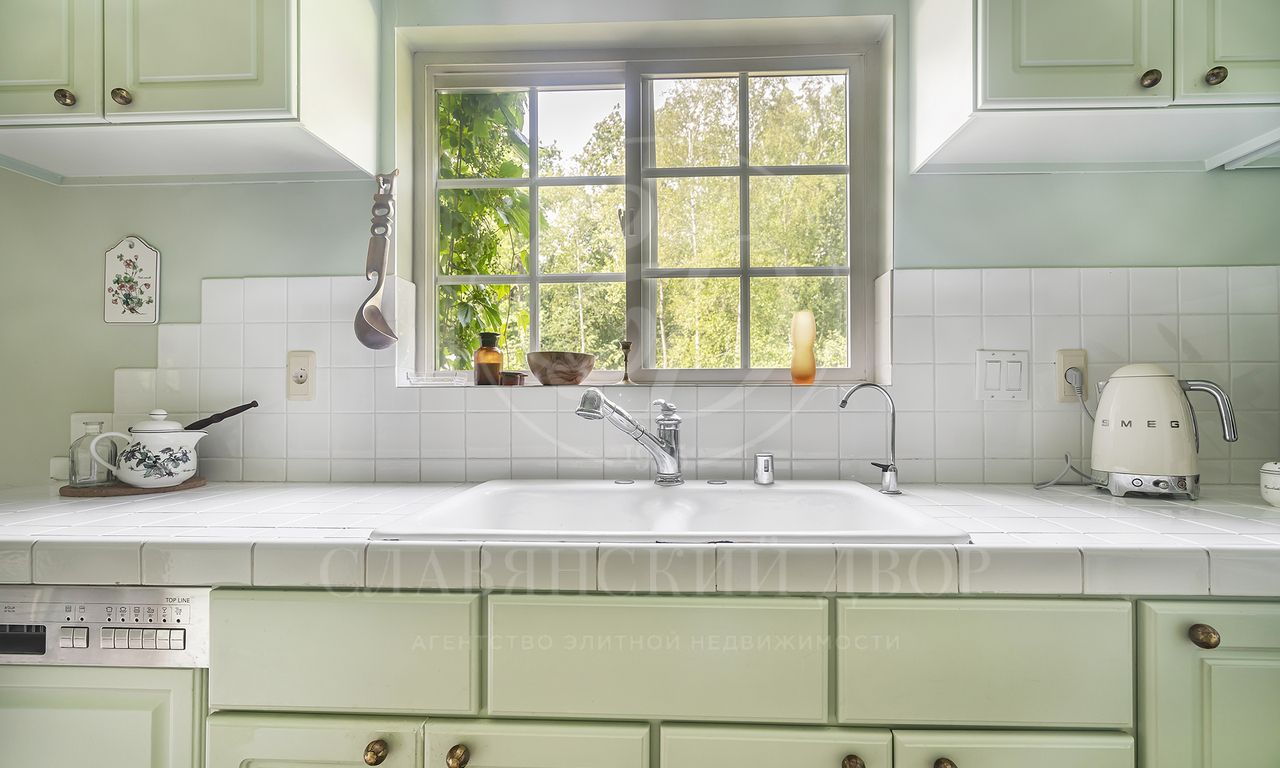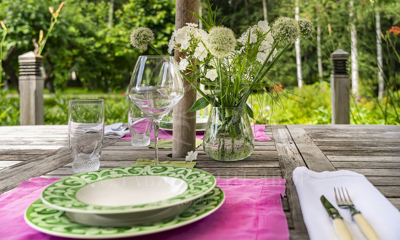 Вокруг дома высажены плодовые деревья и кустарники. Перед домом находится небольшой пруд и зона для барбекю. В шаговой доступности — Первая Московская гимназия.