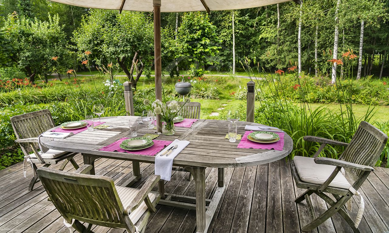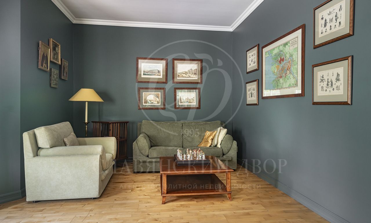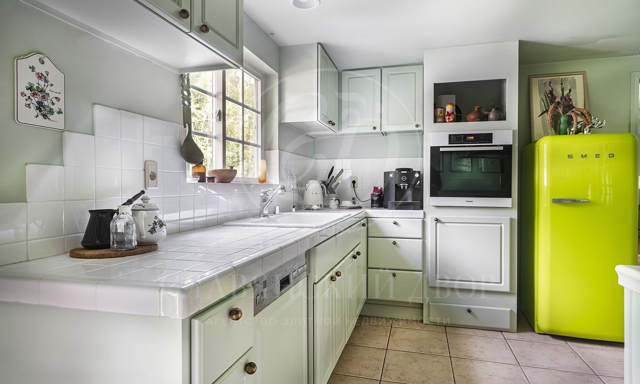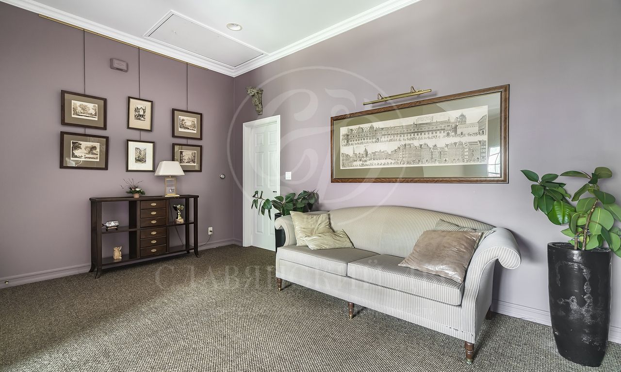 Вокруг дома высажены плодовые деревья и кустарники. Перед домом находится небольшой пруд и зона для барбекю. В шаговой доступности — Первая Московская гимназия.