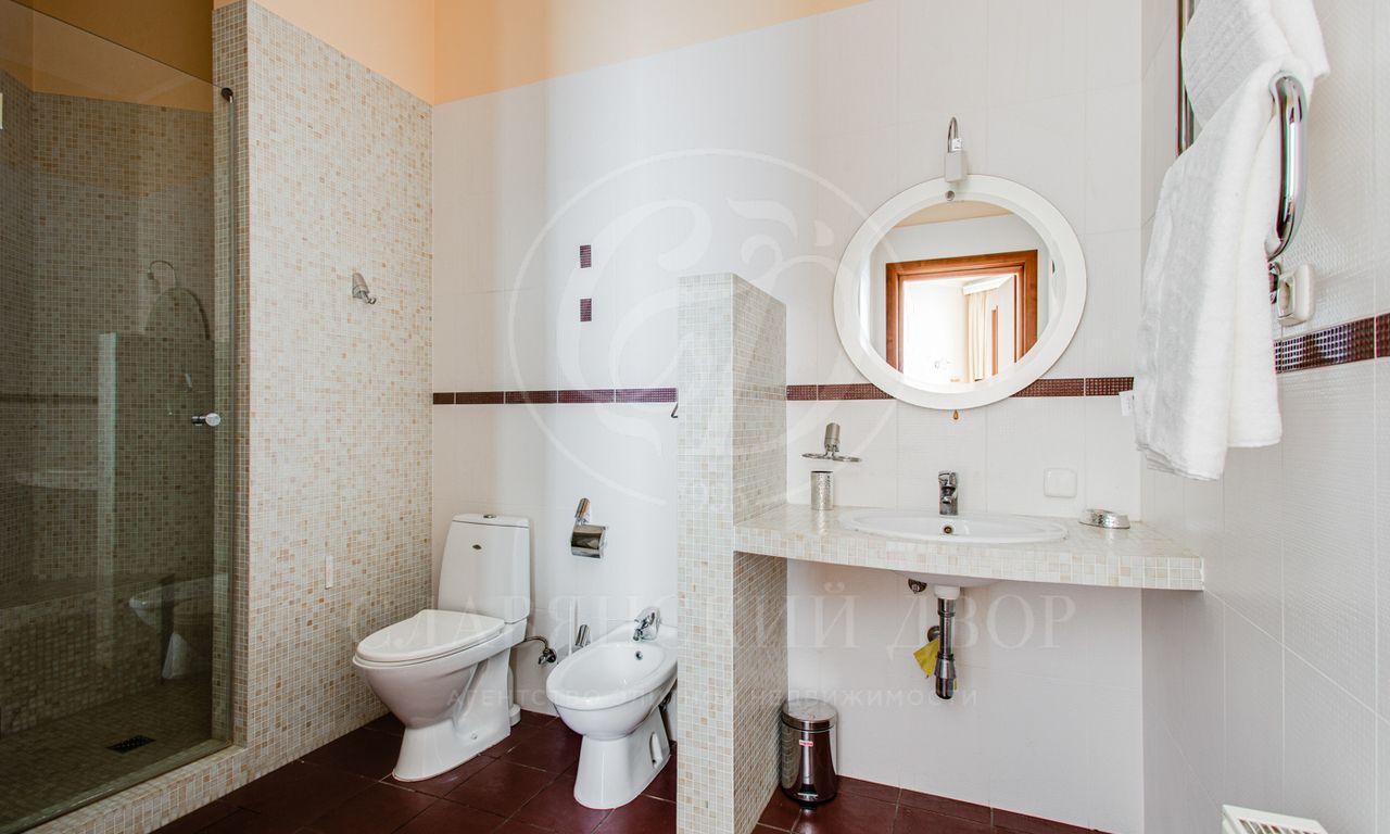 2 этаж: 3 спальни с ванными (джакузи) и гардеробными комнатами.