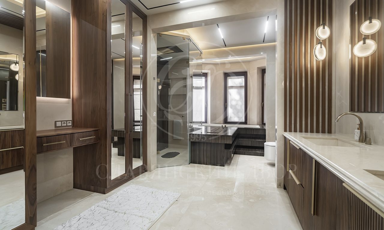 2 этаж: гостиная с лоджией, мастер- спальня с гардеробной и ванной комнатой, 2 спальни с гардеробными, с выходом на балкон и с/у.