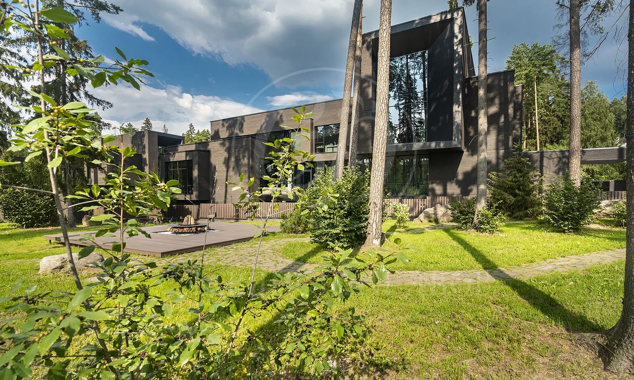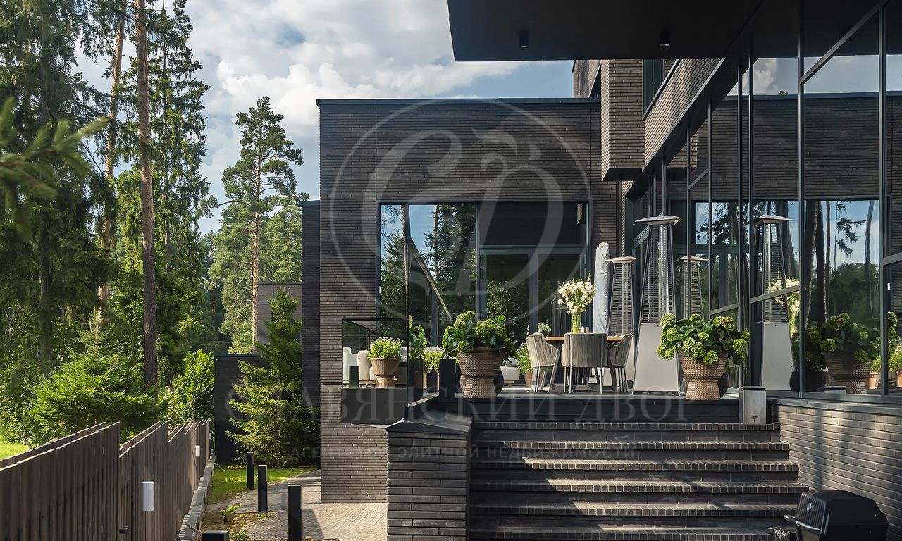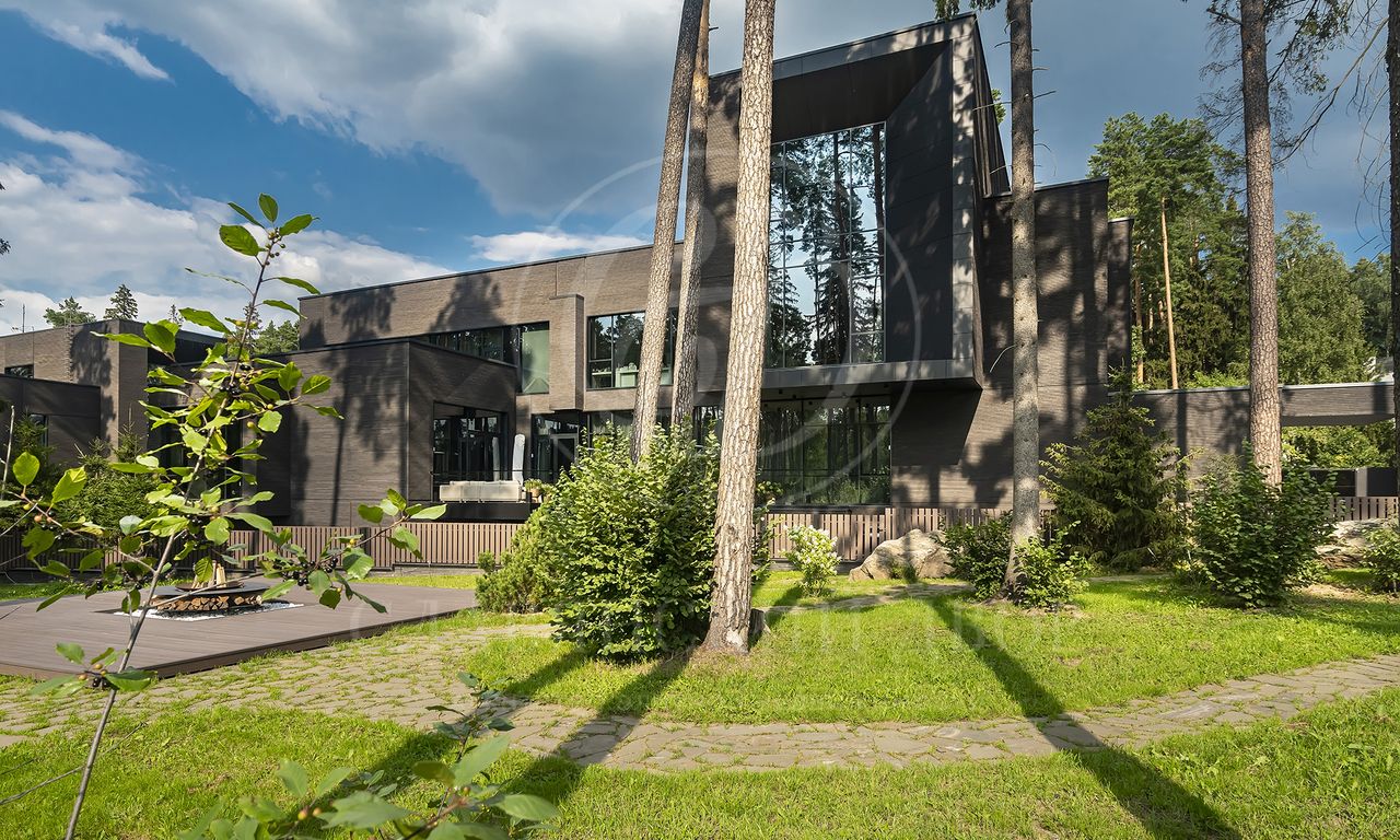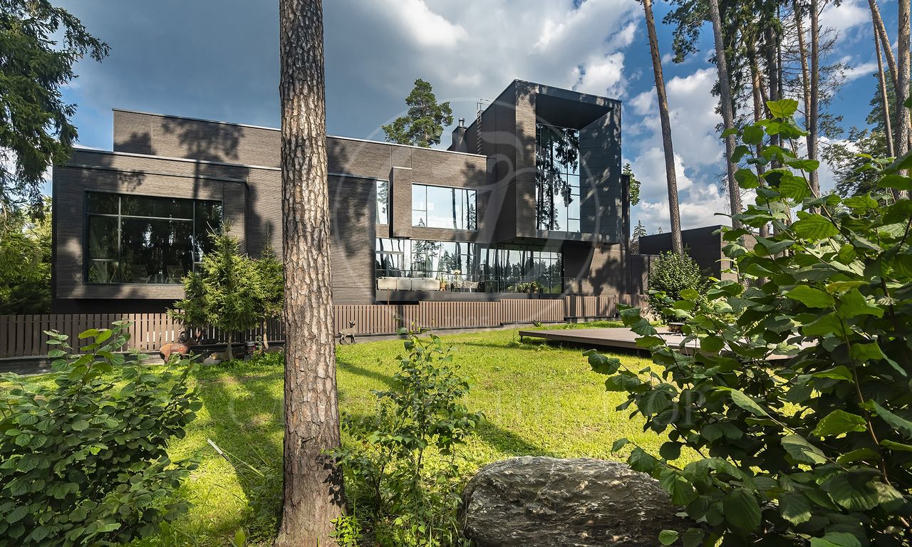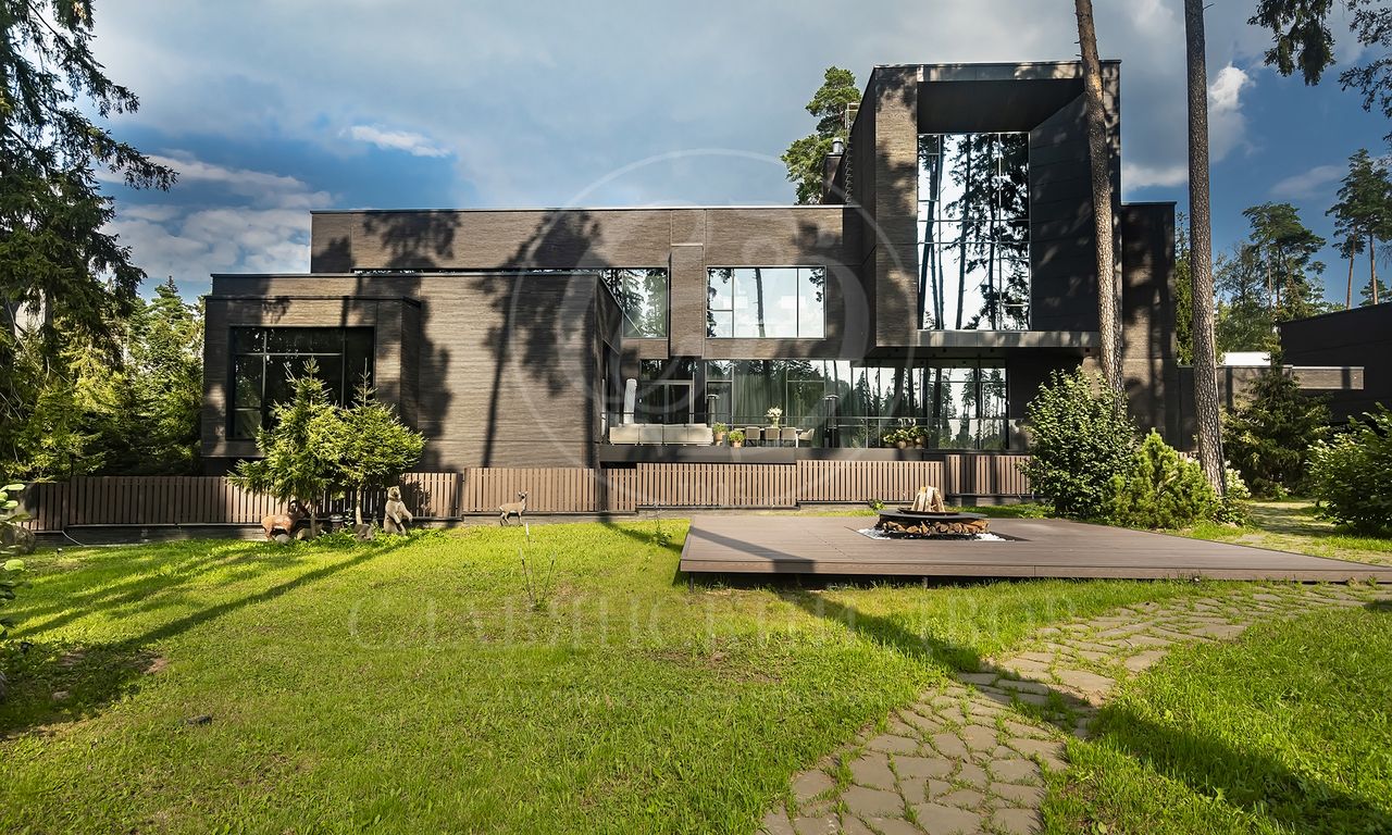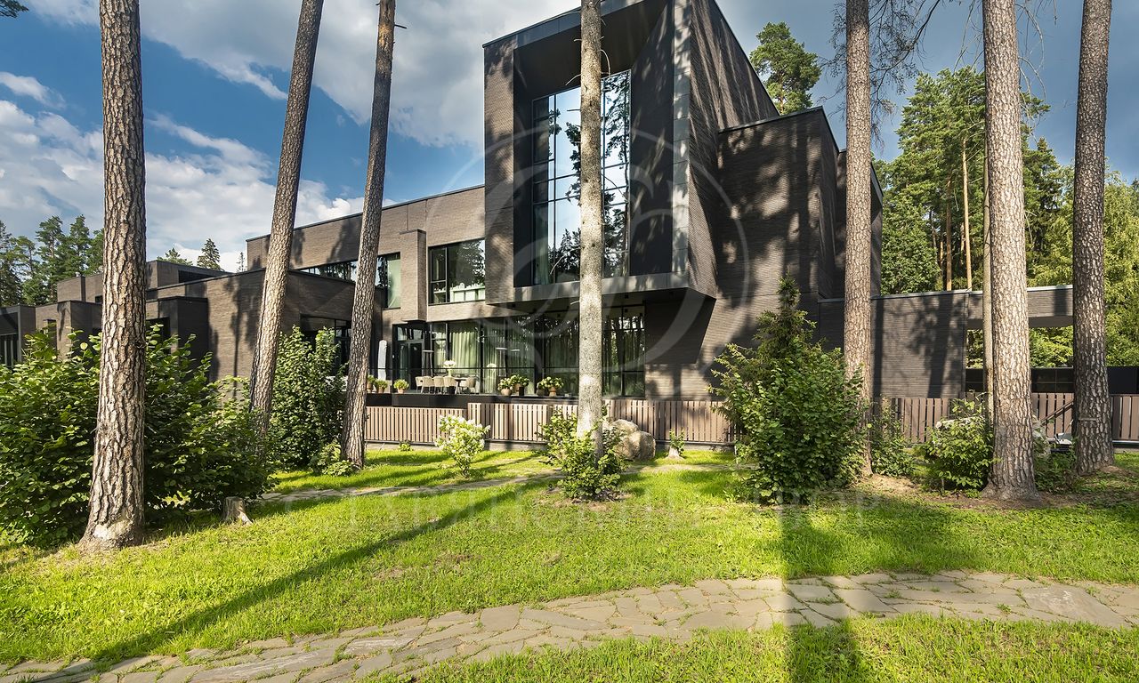 Уникальный особняк площдью 2100 кв.м. выполненный в современном стиле на обширном лесном участке 30 сот с дорожками из клинкерной брусчатки ручной формовки Klinkerwerke Muhr. Дом полностью готов к проживанию, подключен ко всем коммуникациям, обставлен мебелью и аксессуарами ведущих мировых брендов Porada, Minotti, Baxter, Rugiano, Ulivi, Ipe cavalla, Bosa, Fiam, Tom Dixon. Санузлы оборудованы сантехникой Duravit, Fir, Cea Design, Antonio Lupi, кухня Siematic – бытовой техникой GAGGENAU. В доме установлен эффектный стеклянный лифт. В отделке использованы самые лучшие материалы: натуральный мрамор, керамогранит GRANITI FIANDRE, дубовый паркет, оконные системы SCHUCCO, двери RIMADESIO. Фасад облицован клинкером от JANINHOFF.