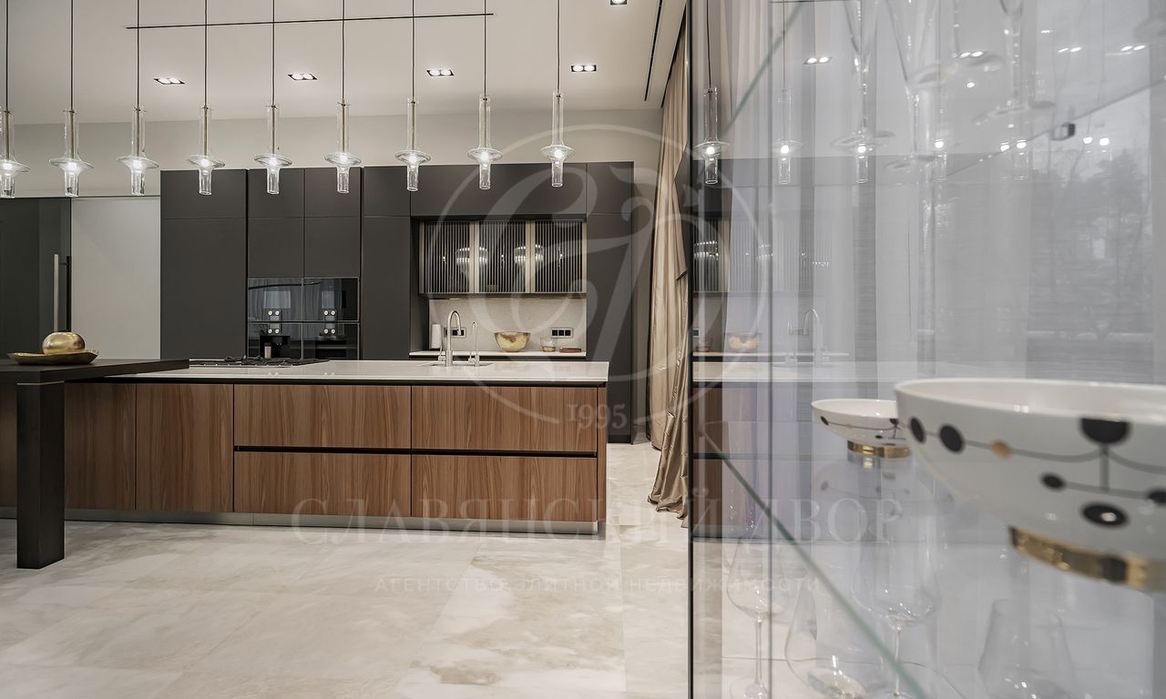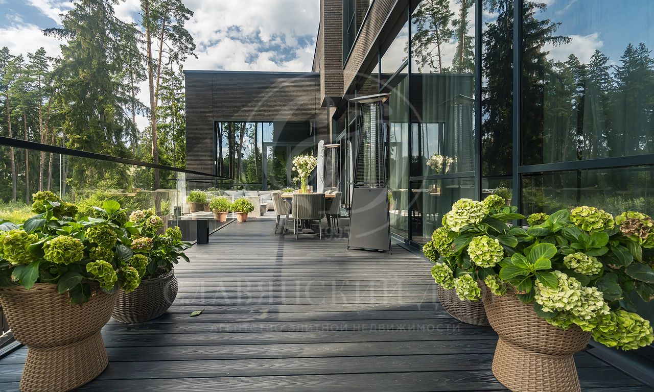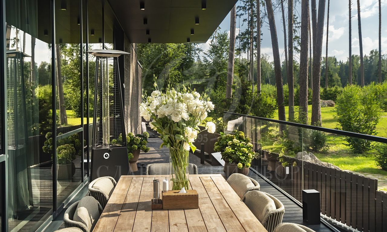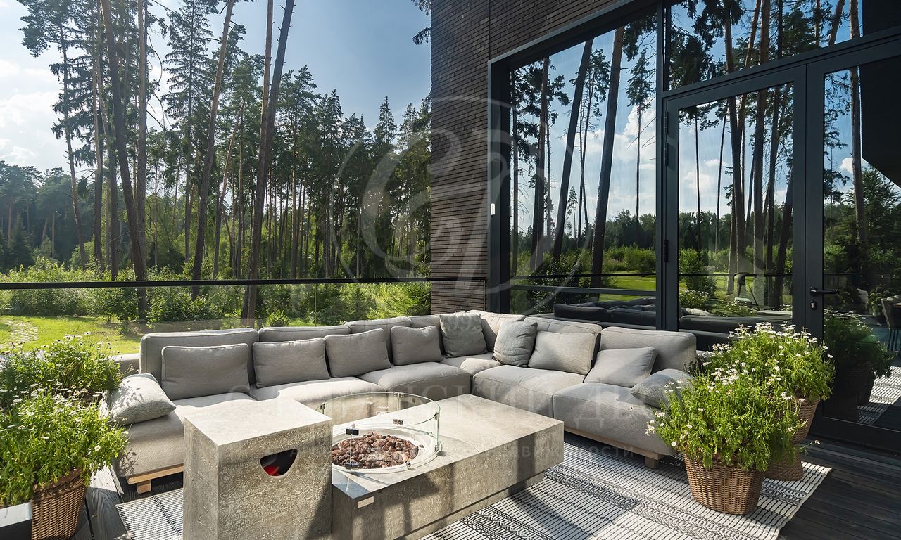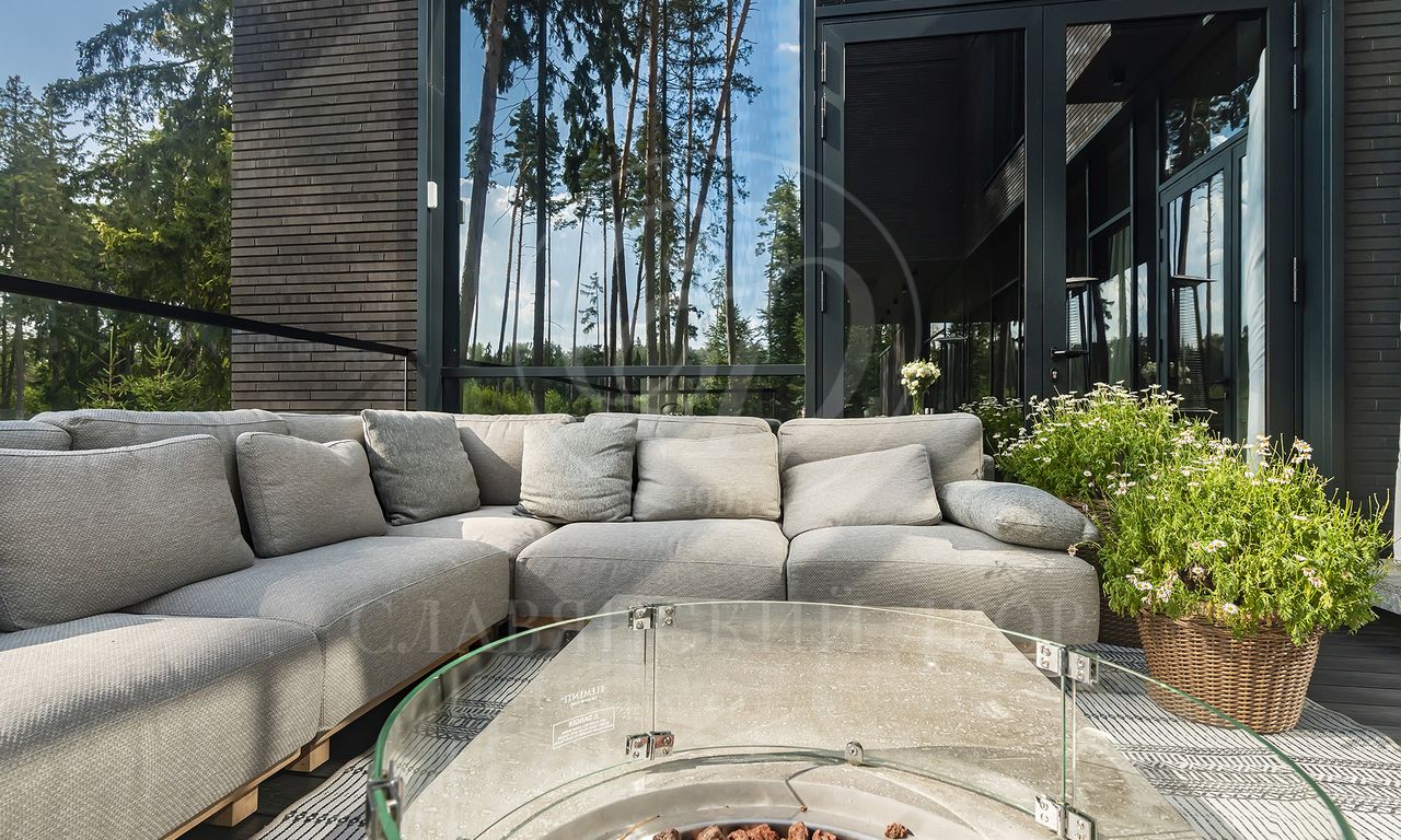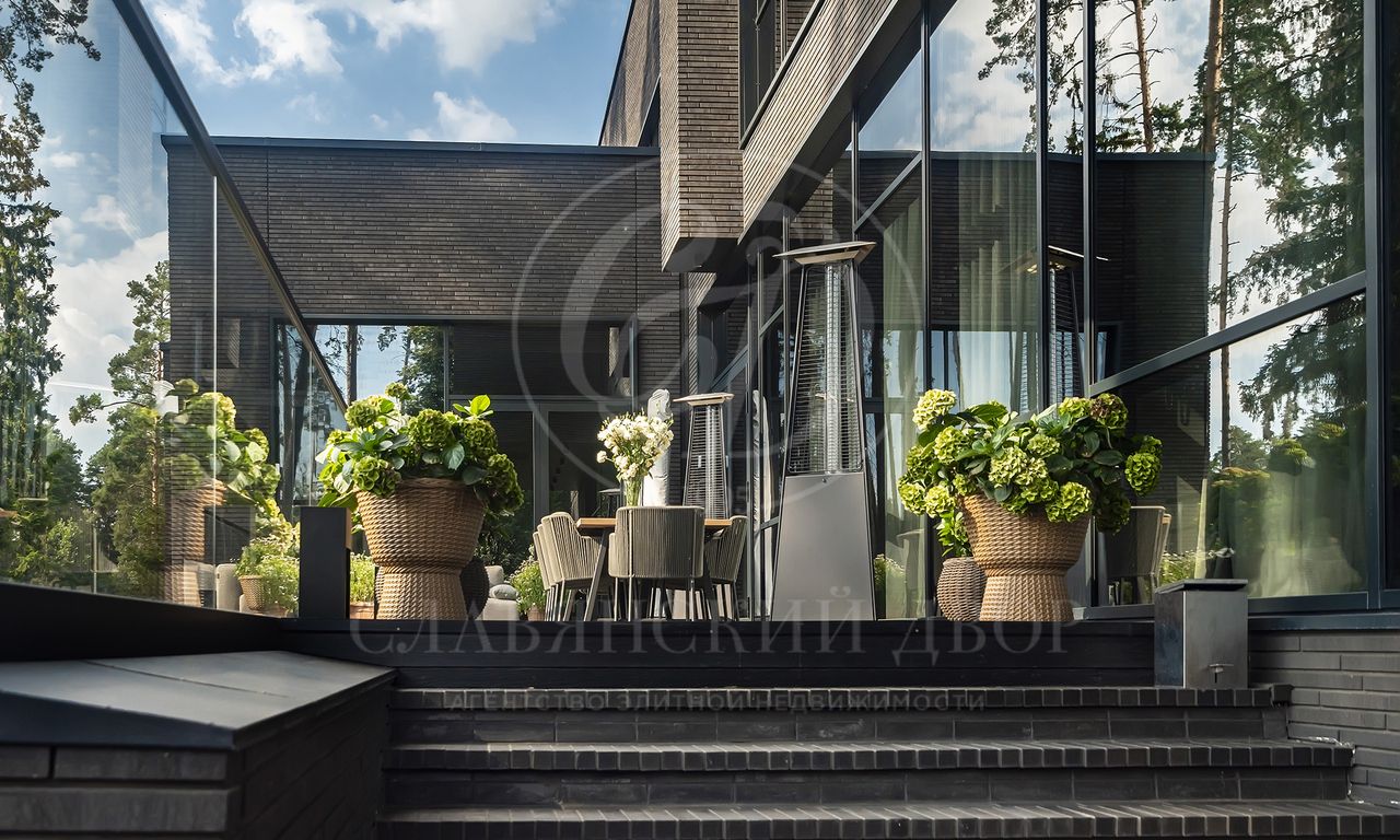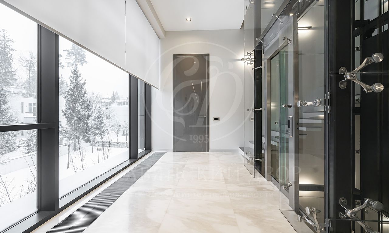Уникальный особняк площдью 2100 кв.м. выполненный в современном стиле на обширном лесном участке 30 сот с дорожками из клинкерной брусчатки ручной формовки Klinkerwerke Muhr. Дом полностью готов к проживанию, подключен ко всем коммуникациям, обставлен мебелью и аксессуарами ведущих мировых брендов Porada, Minotti, Baxter, Rugiano, Ulivi, Ipe cavalla, Bosa, Fiam, Tom Dixon. Санузлы оборудованы сантехникой Duravit, Fir, Cea Design, Antonio Lupi, кухня Siematic – бытовой техникой GAGGENAU. В доме установлен эффектный стеклянный лифт. В отделке использованы самые лучшие материалы: натуральный мрамор, керамогранит GRANITI FIANDRE, дубовый паркет, оконные системы SCHUCCO, двери RIMADESIO. Фасад облицован клинкером от JANINHOFF.