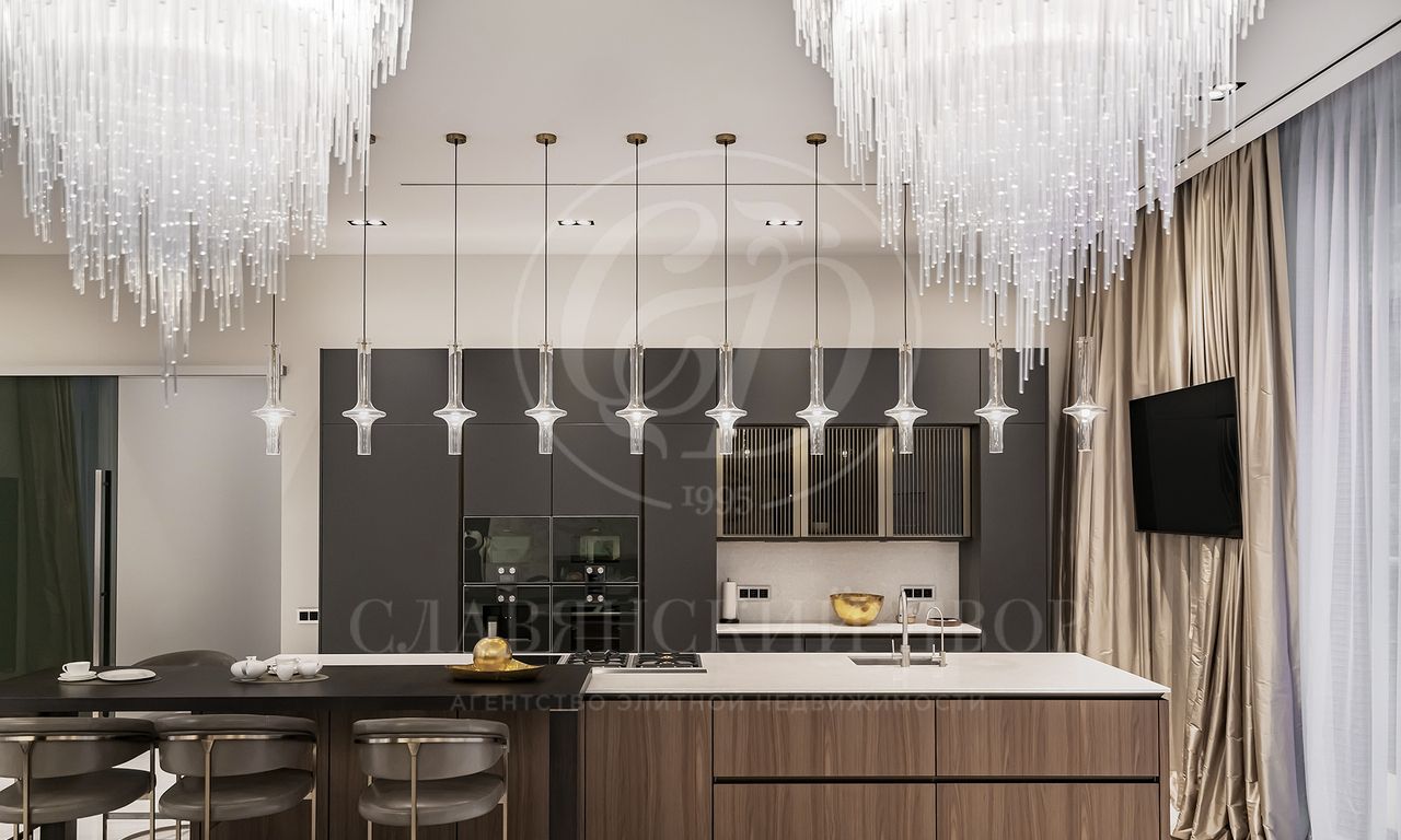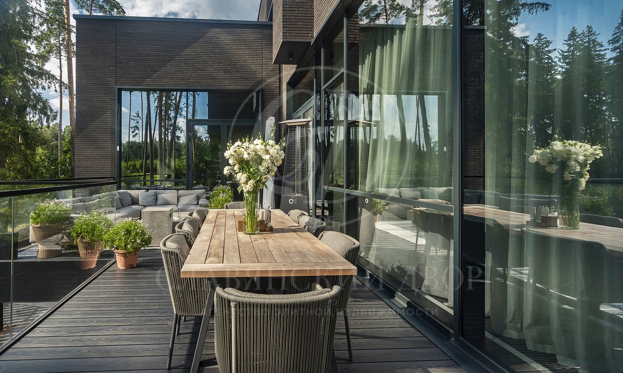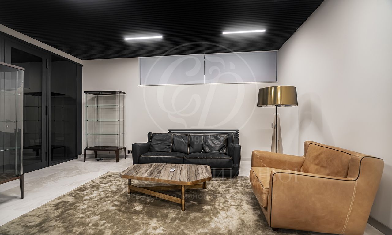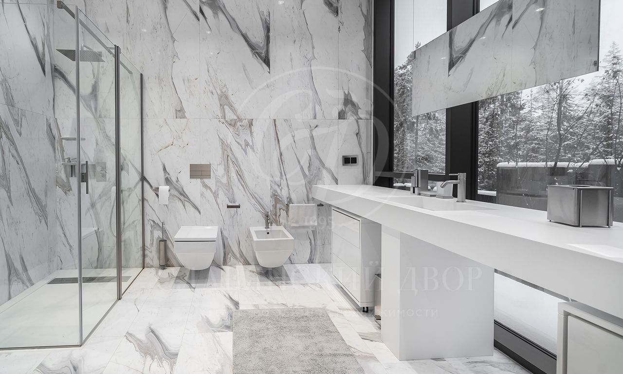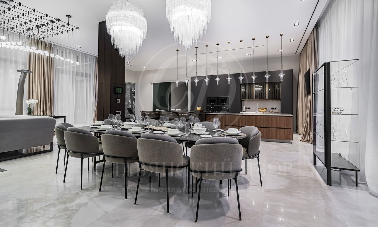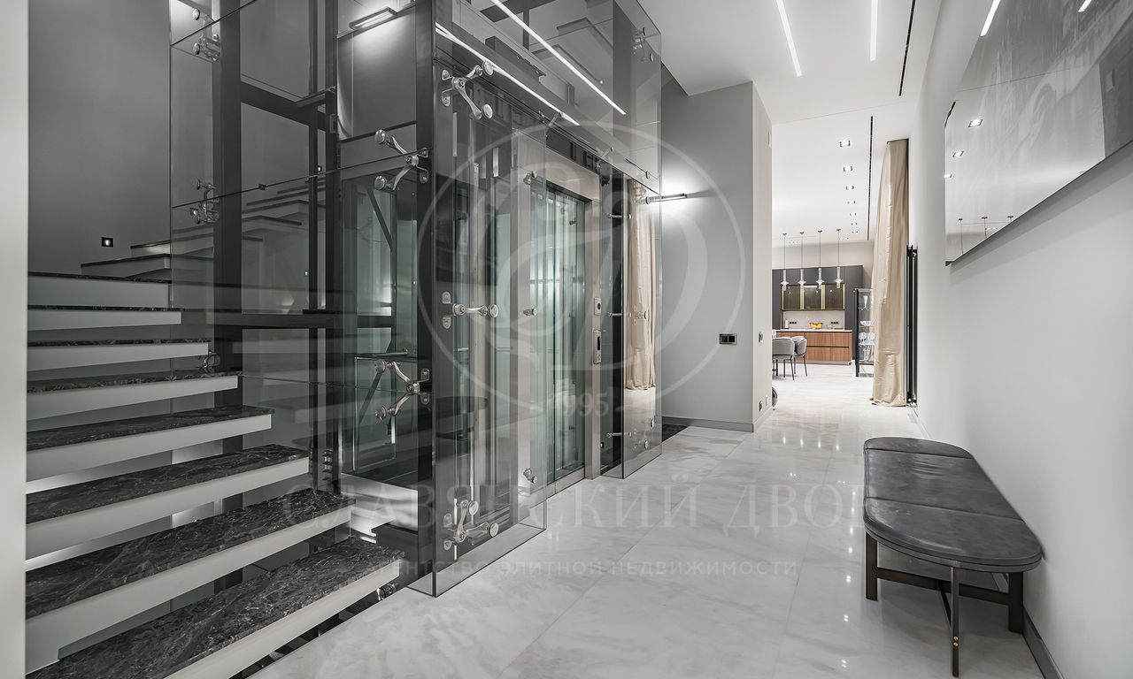 Уникальный особняк площдью 2100 кв.м. выполненный в современном стиле на обширном лесном участке 30 сот с дорожками из клинкерной брусчатки ручной формовки Klinkerwerke Muhr. Дом полностью готов к проживанию, подключен ко всем коммуникациям, обставлен мебелью и аксессуарами ведущих мировых брендов Porada, Minotti, Baxter, Rugiano, Ulivi, Ipe cavalla, Bosa, Fiam, Tom Dixon. Санузлы оборудованы сантехникой Duravit, Fir, Cea Design, Antonio Lupi, кухня Siematic – бытовой техникой GAGGENAU. В доме установлен эффектный стеклянный лифт. В отделке использованы самые лучшие материалы: натуральный мрамор, керамогранит GRANITI FIANDRE, дубовый паркет, оконные системы SCHUCCO, двери RIMADESIO. Фасад облицован клинкером от JANINHOFF.