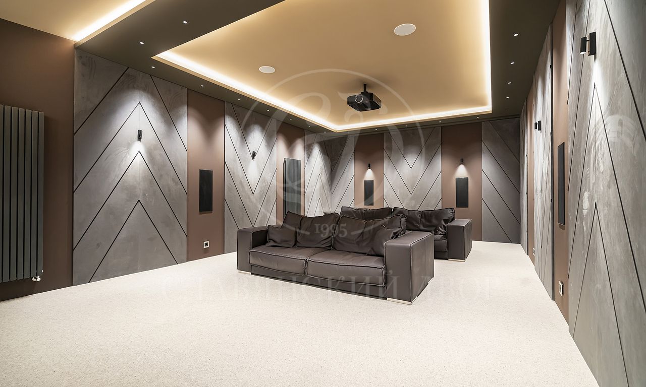 Цоколь: хозяйская зона: кинотеатр, винная комната, небольшая гостиная с камином, баром и