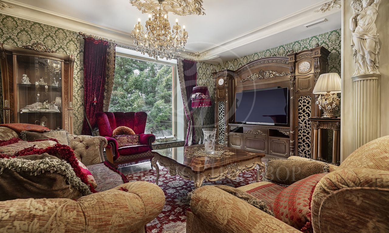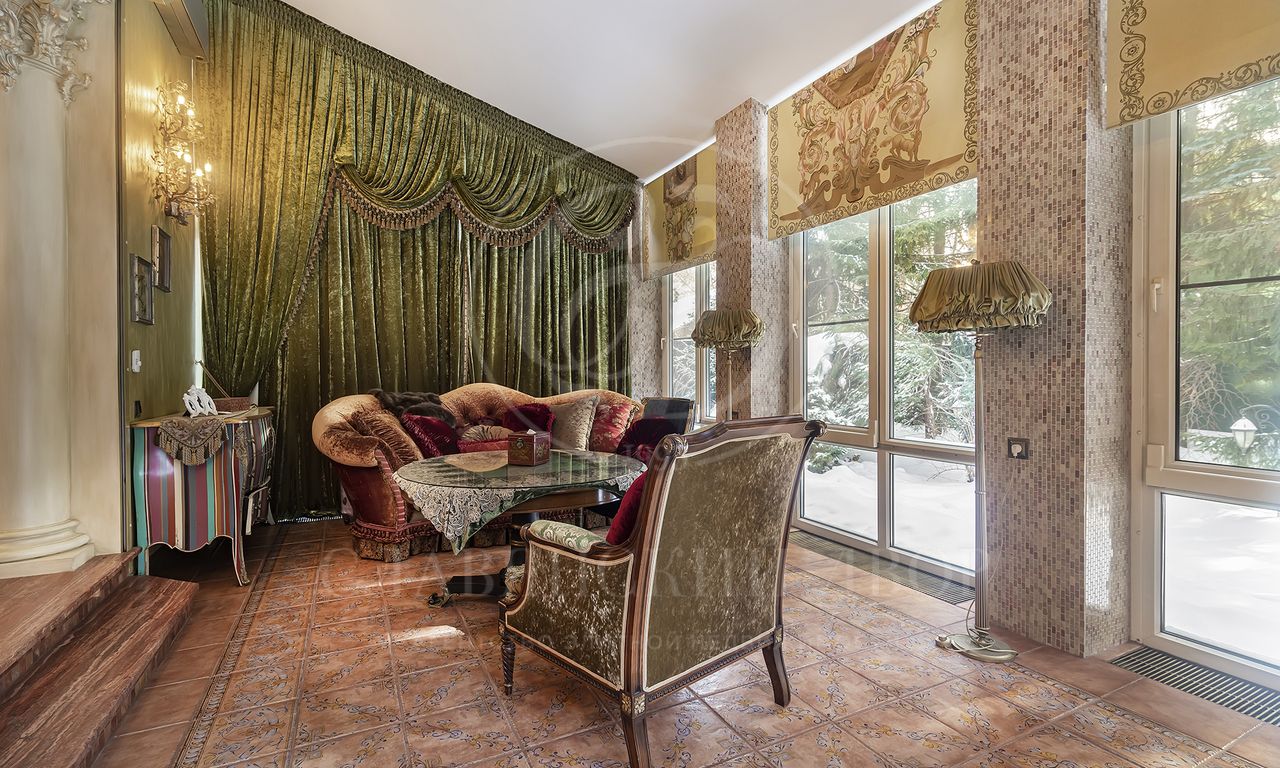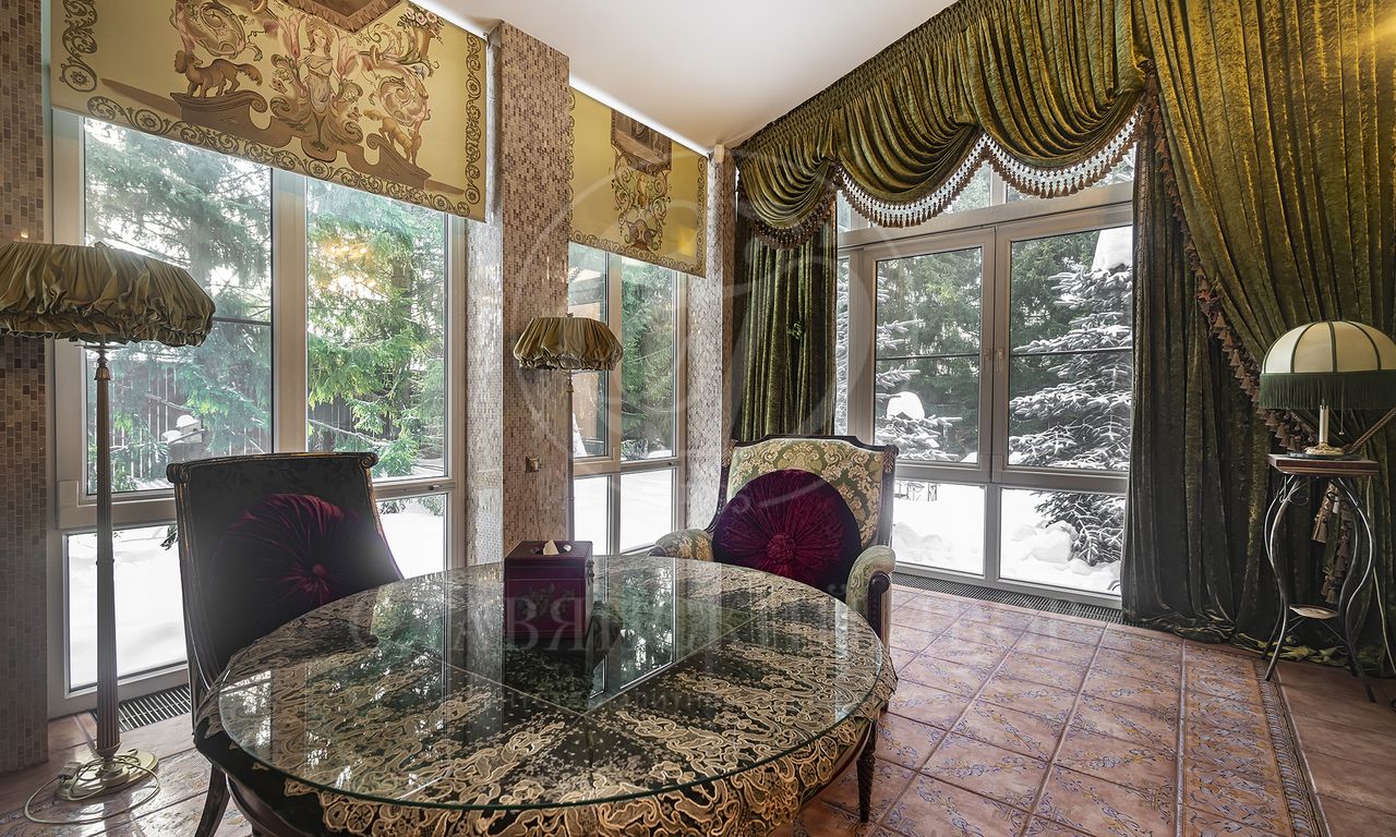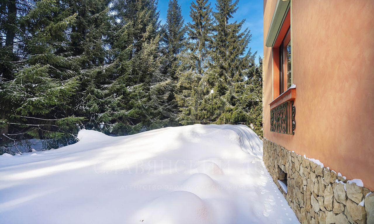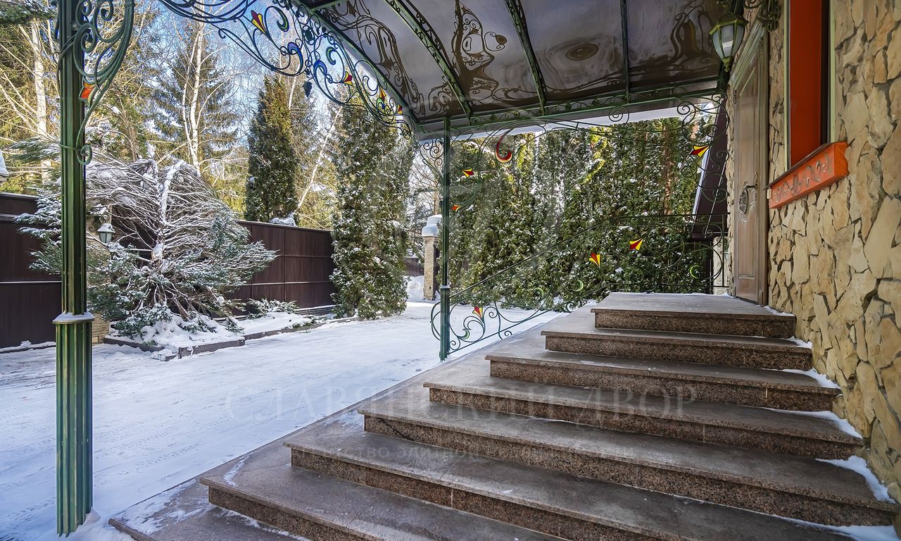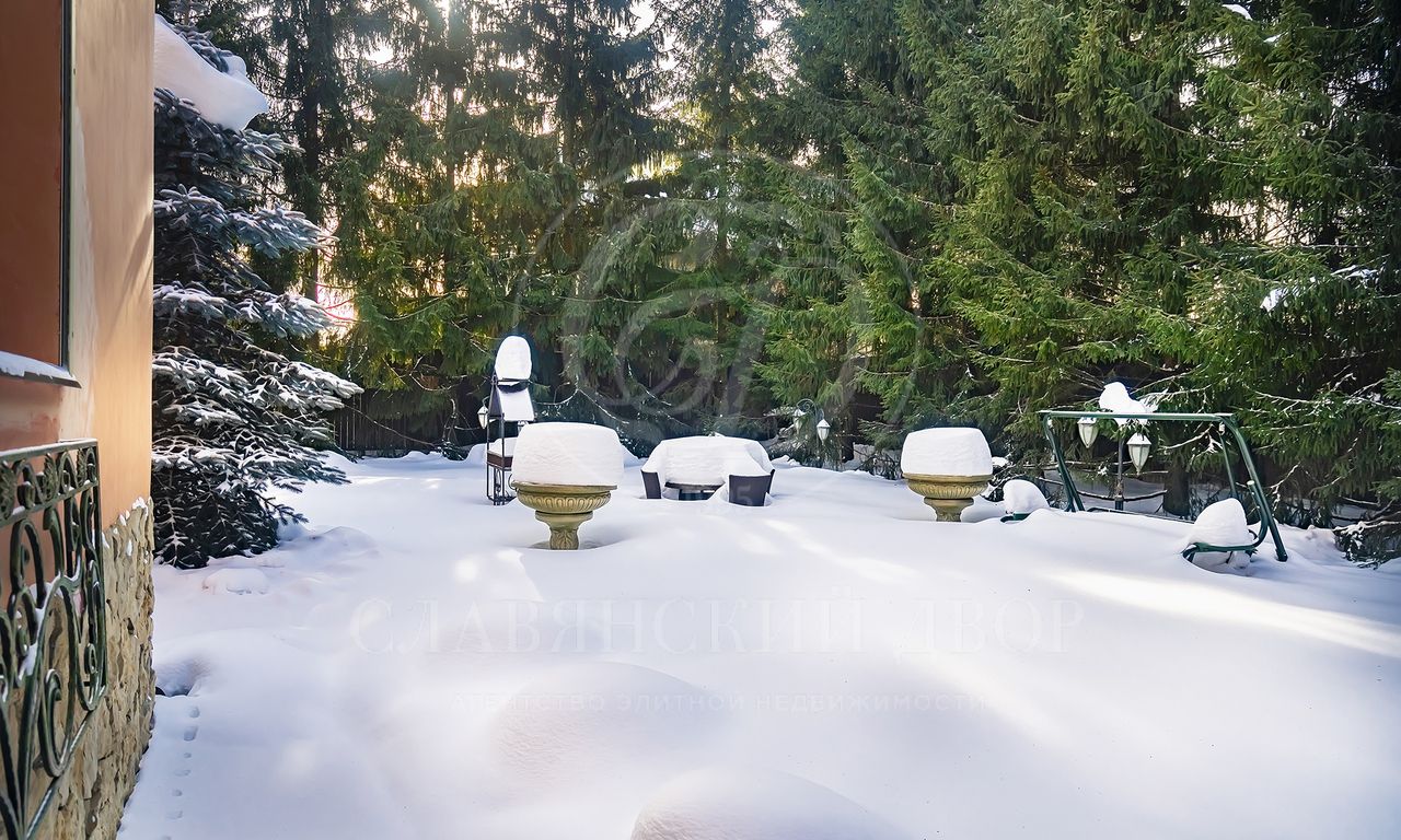 Участок утопает в зелени: ели и туи высотой до 12 метров создают эффект собственного леса и полную приватность. Дорожки и терраса выложены итальянским гранитом. На участке — зона отдыха с профессиональным мангалом и тандыром, садовая мебель, навес на 2 автомобиля и парковка ещё на 2. Территория ухожена и приватна.