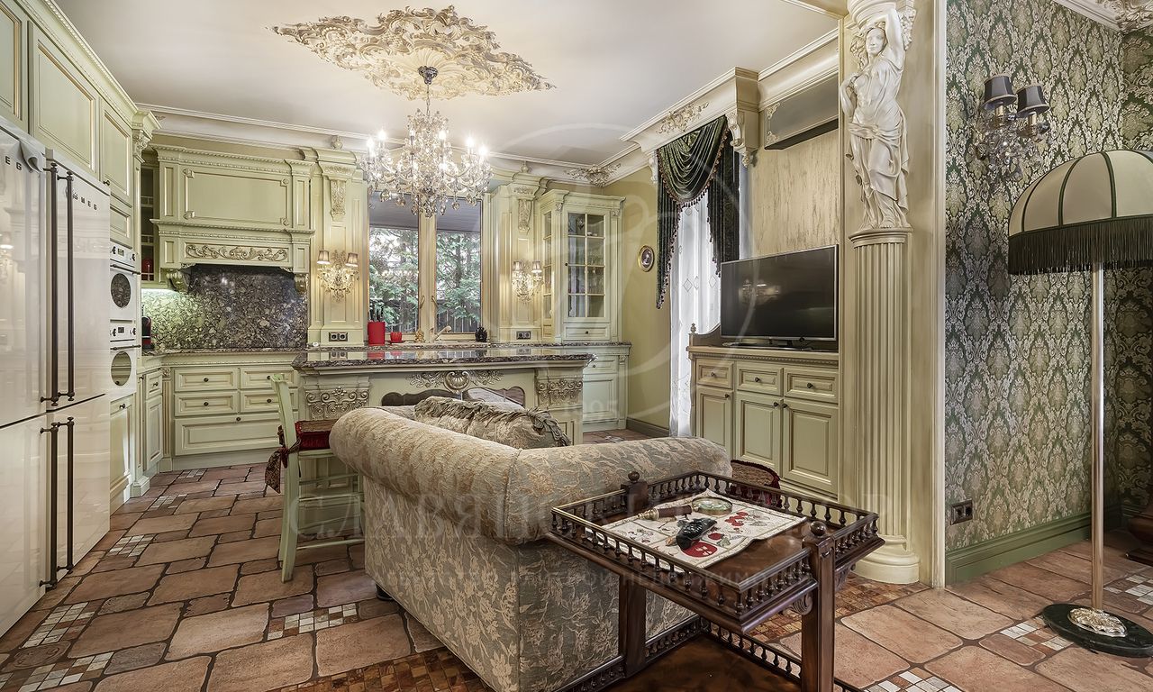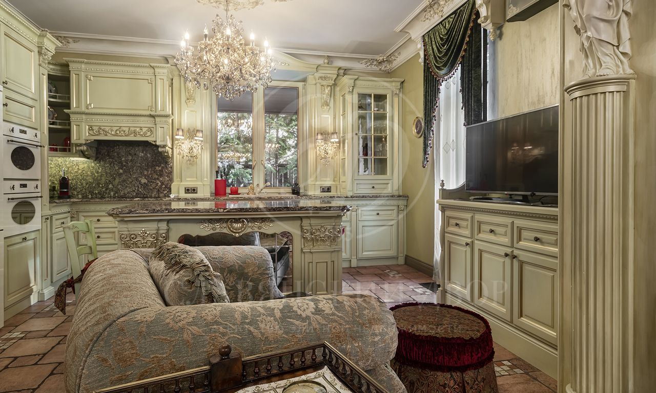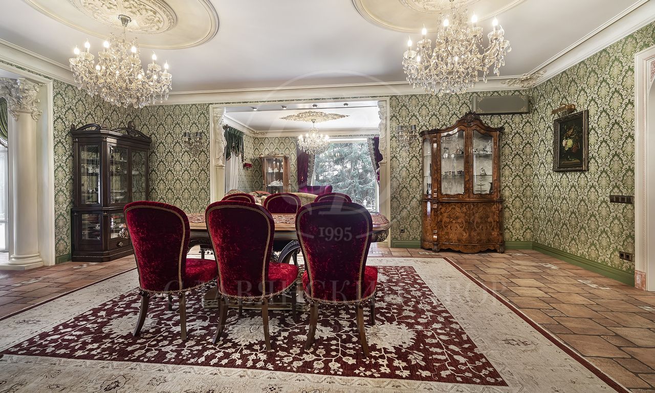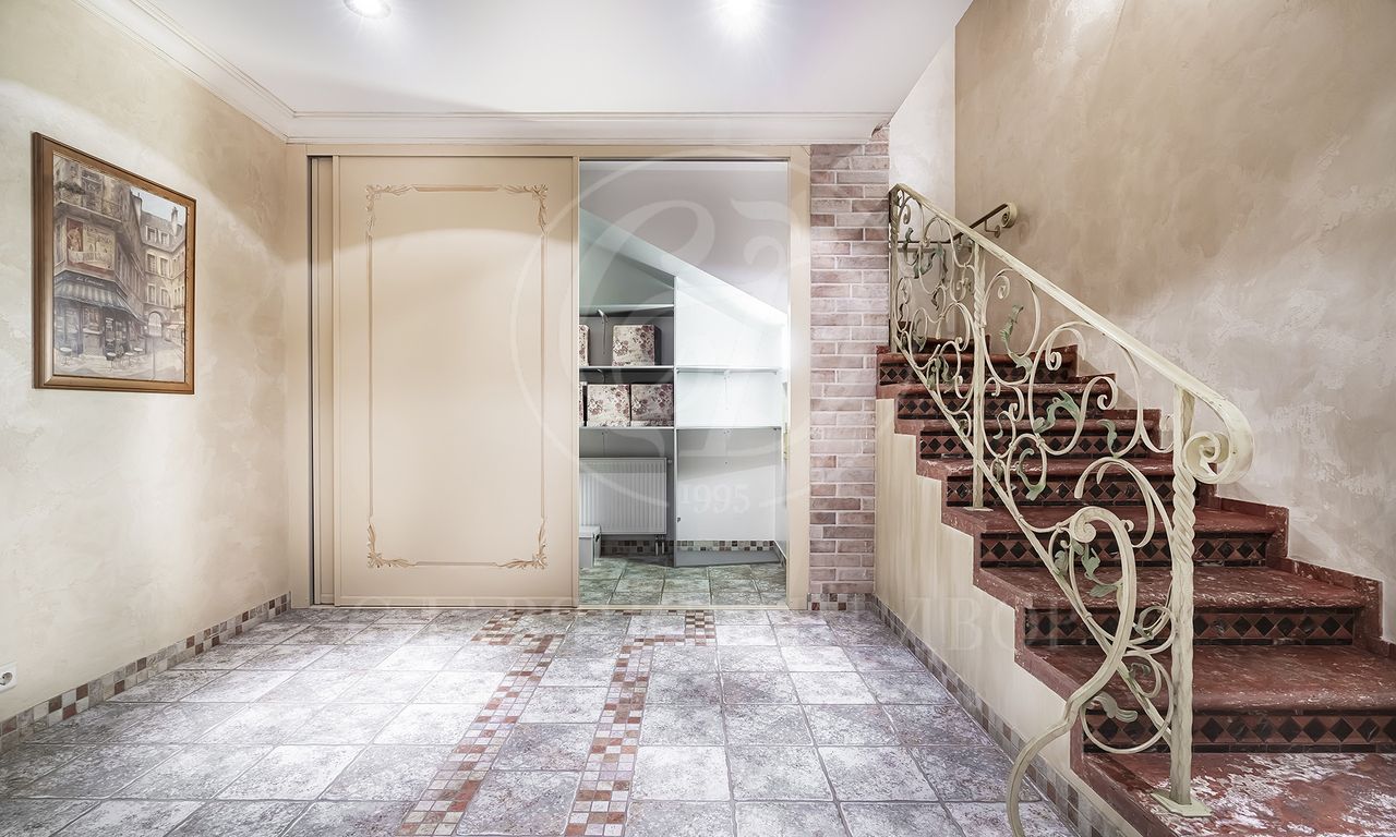 Цокольный этаж: вторая кухня, гардеробная для сезонных вещей, кладовка, 1 спальня, большой зал, кухня, с\у, отдельный вход для персонала.