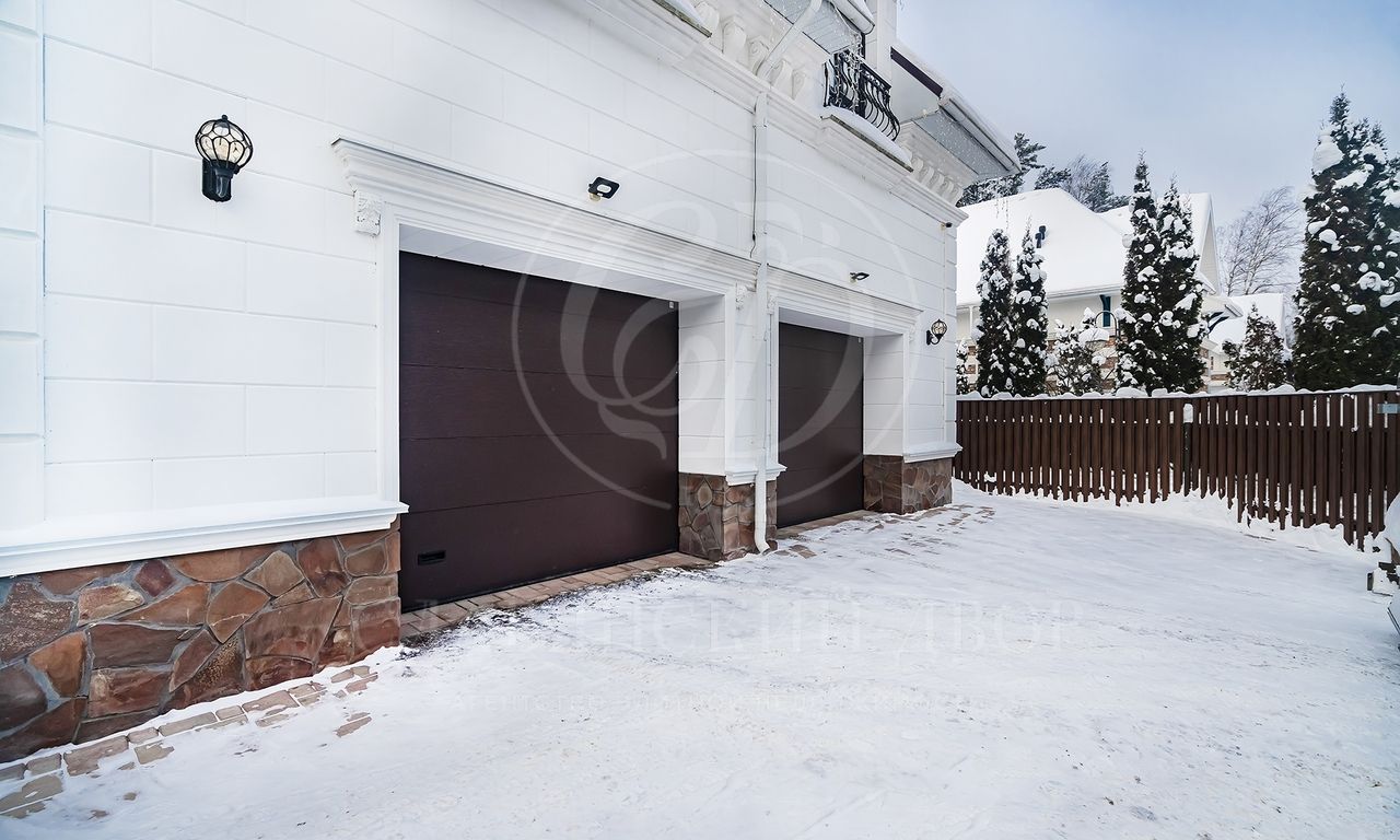 Гараж на 2-3 м/м с зарядкой для автомобиля, помещение для ранения вещей. Над гаражом квартира для персонала 120 кв.м. (две спальни, с/у, кухня-гостиная, прихожая, гардеробная)