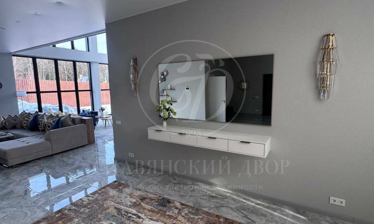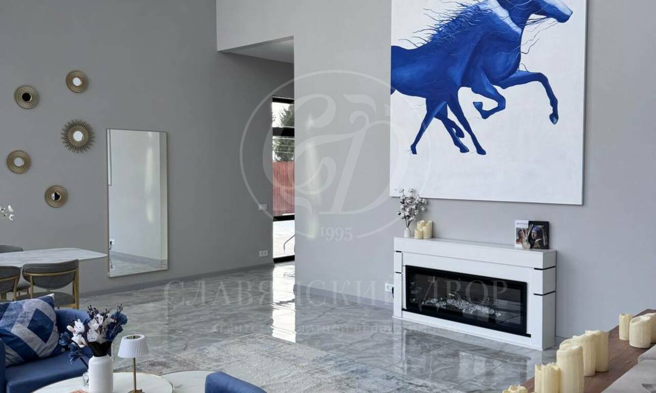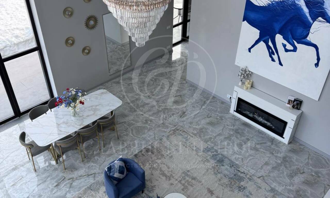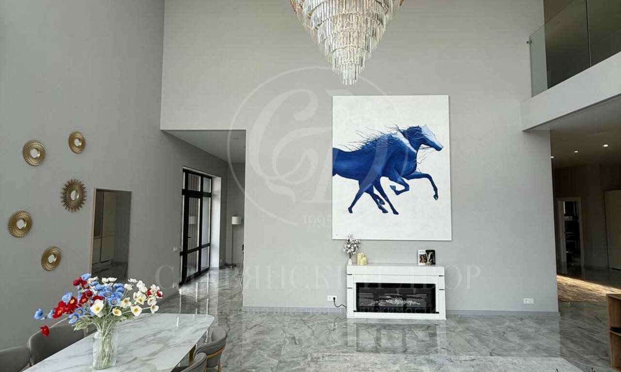 Планировка: 6 спален (у каждой — выход на балкон), 4 санузла, просторная гостиная с большим электрическим камином, кухонная зона полностью оборудована: посудомоечная машина, духовой шкаф, микроволновая печь. Обеденный стол на 8 персон. 4 гардеробные комнаты. Большой холл на втором этаже (зона отдыха / игровая зона), котельная с постирочной, просторные коридоры с системами хранения