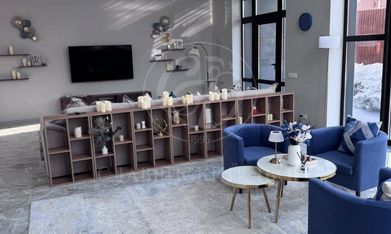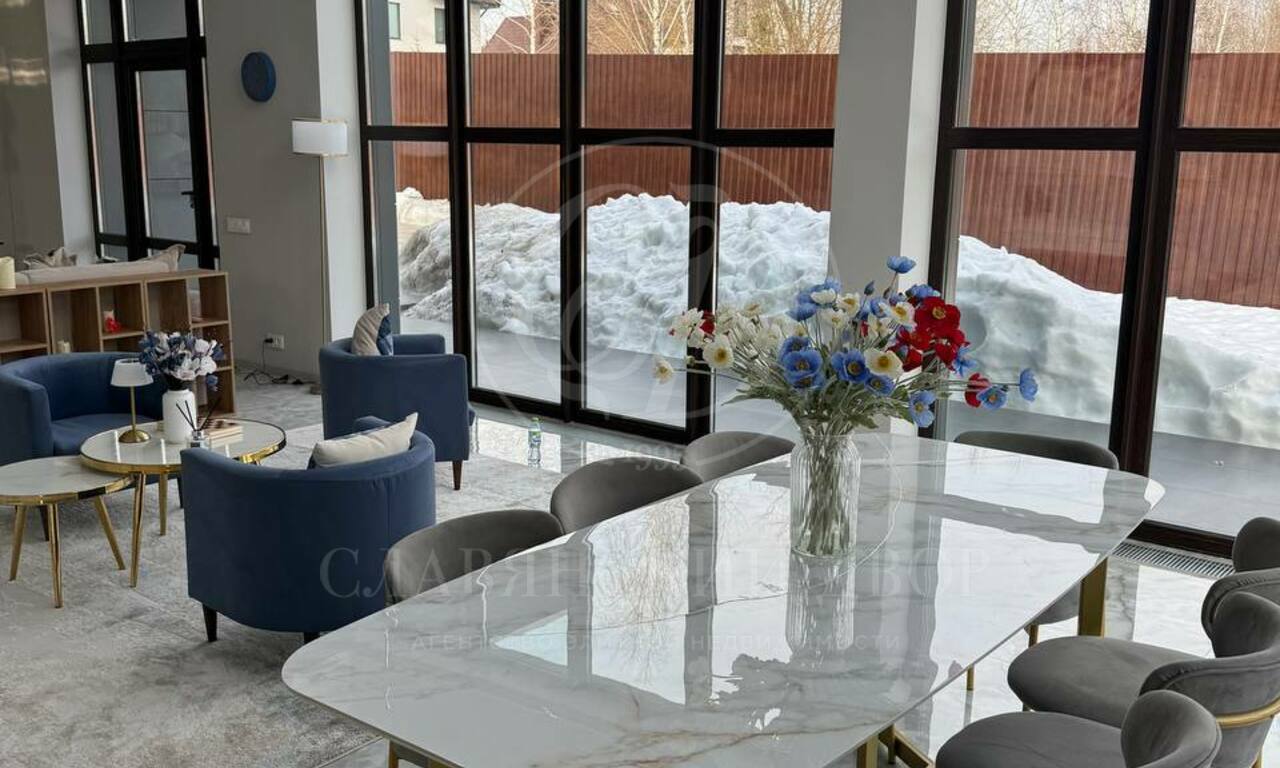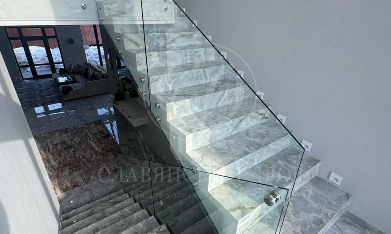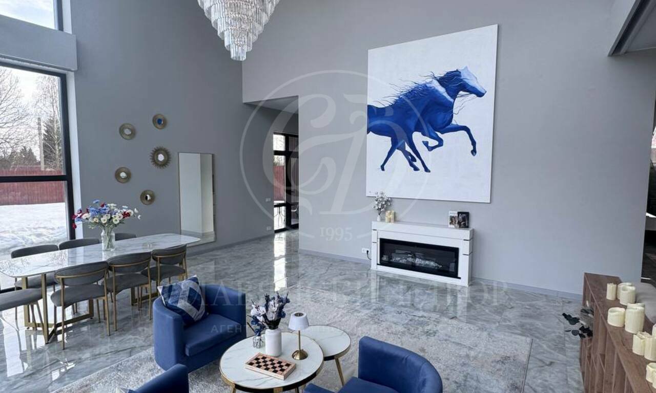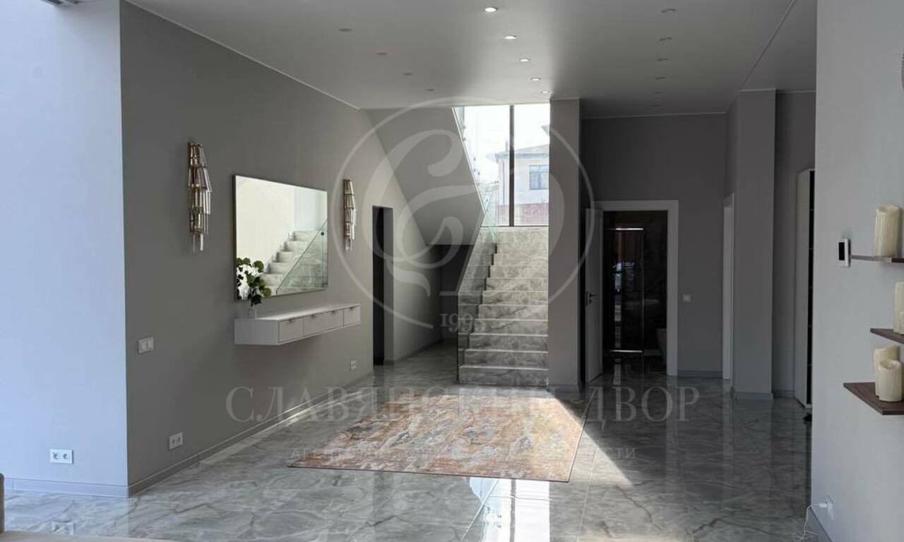 Планировка: 6 спален (у каждой — выход на балкон), 4 санузла, просторная гостиная с большим электрическим камином, кухонная зона полностью оборудована: посудомоечная машина, духовой шкаф, микроволновая печь. Обеденный стол на 8 персон. 4 гардеробные комнаты. Большой холл на втором этаже (зона отдыха / игровая зона), котельная с постирочной, просторные коридоры с системами хранения
